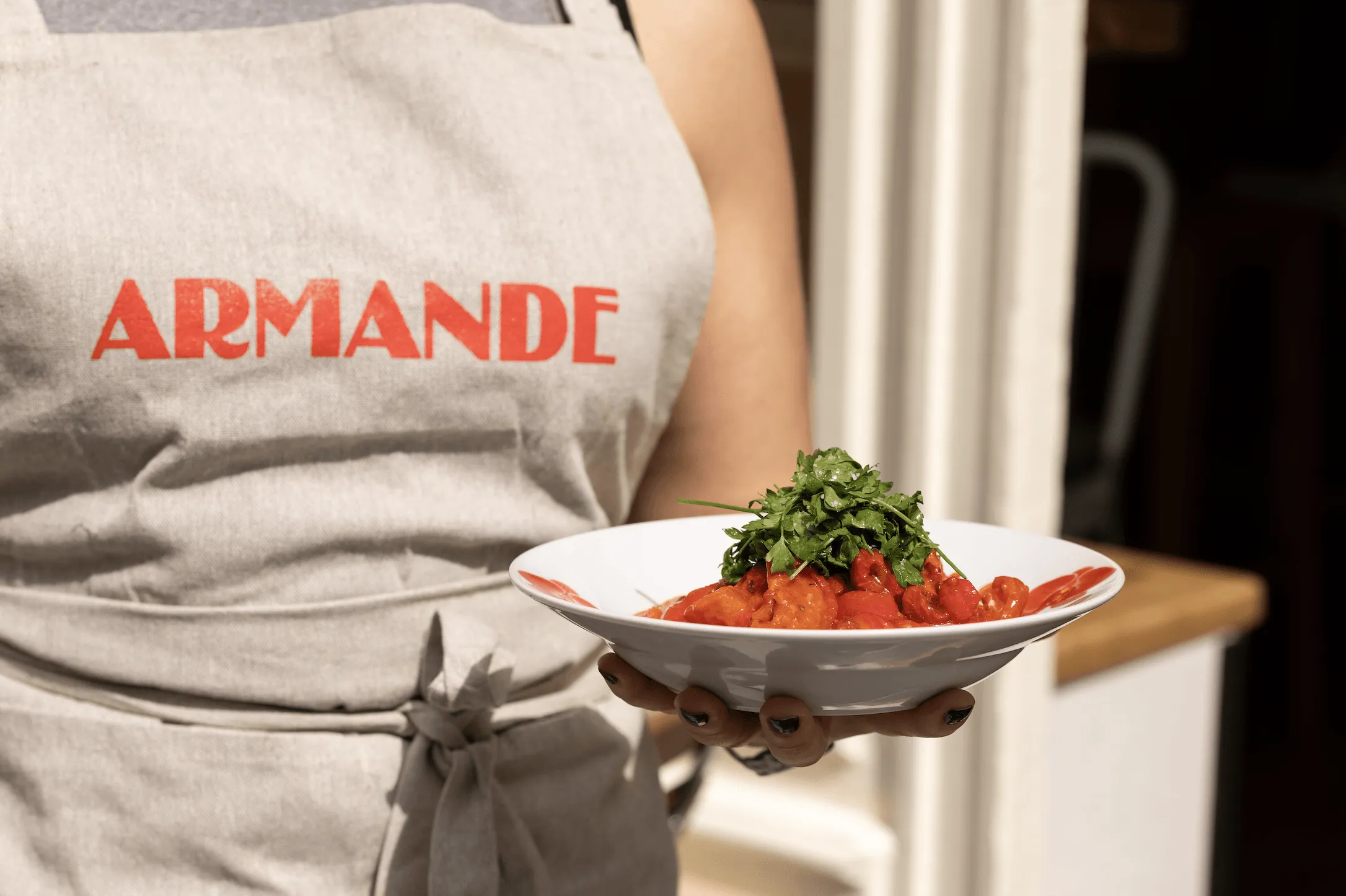 Le choix du nom de l’établissement n’est pas anodin, Armande est un clin d’œil de la Cheffe du film Le Chocolat (2000). Ancienne pâtissière et Cheffe à domicile, Margaux Bellorgey puise dans ses connaissances pour créer des mets gourmands et authentiques. Elle emprunte également dans les cuisines étrangères de pays anciennement visités comme le Liban. La cuisine méditerranéenne reste sa principale inspiration. Armande suit une ligne directive responsable en privilégiant des produits locaux et de saisons provenant de petits producteurs. Tous les matins, la Cheffe et son équipe préparent les plats après l’arrivage des marchandises. La carte varie chaque semaine en fonction des produits et envies du moment. Certains essentiels, sandwichs et pâtisseries, demeurent dans le menu.
