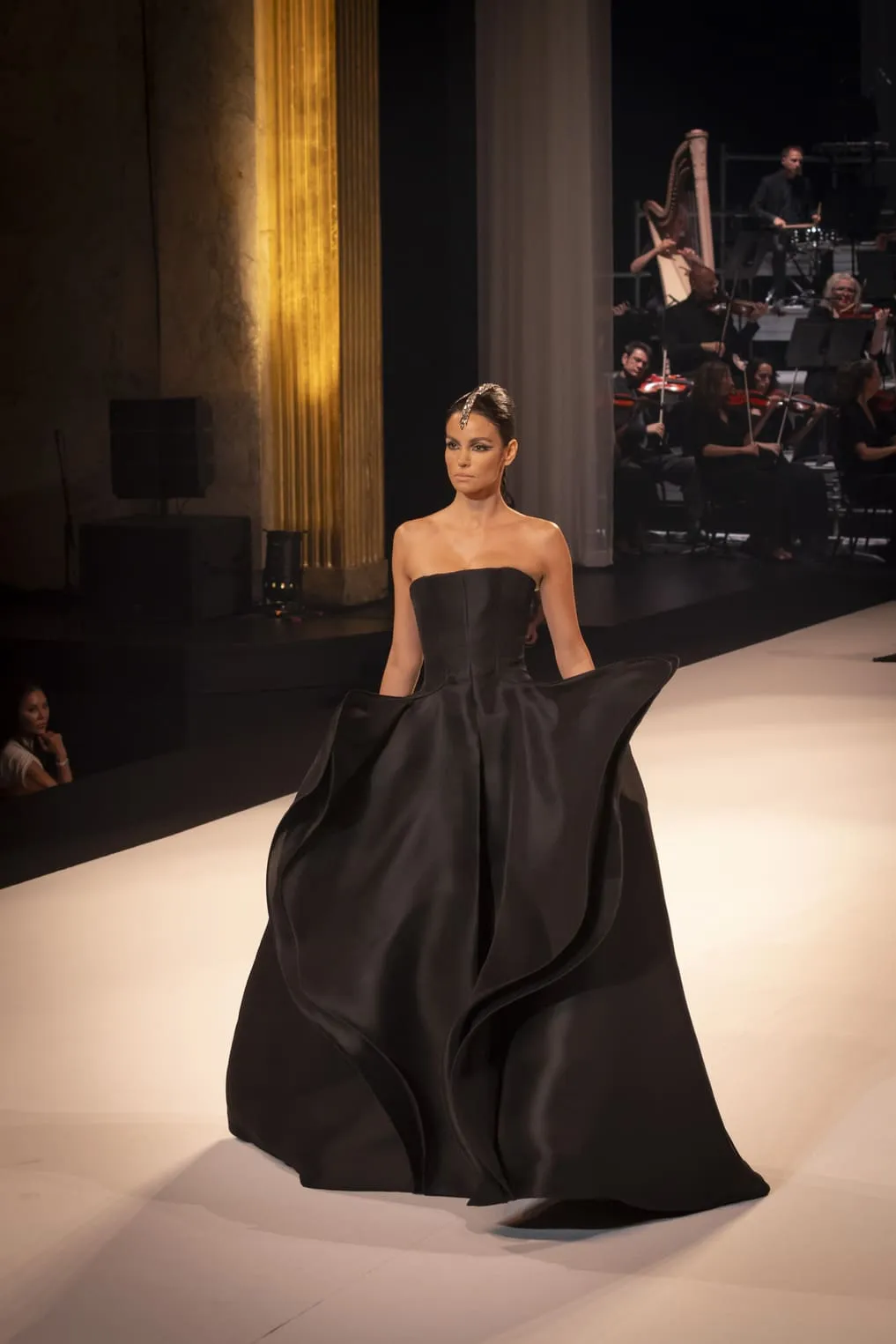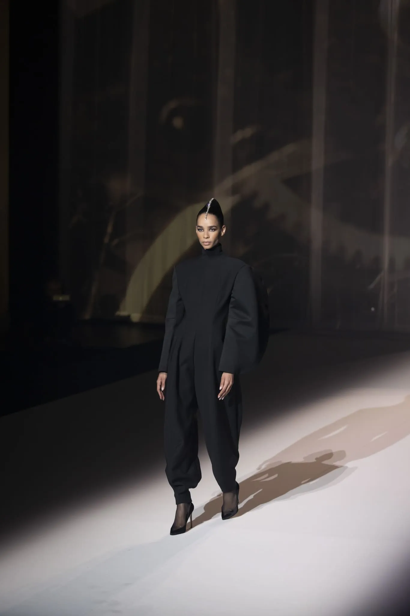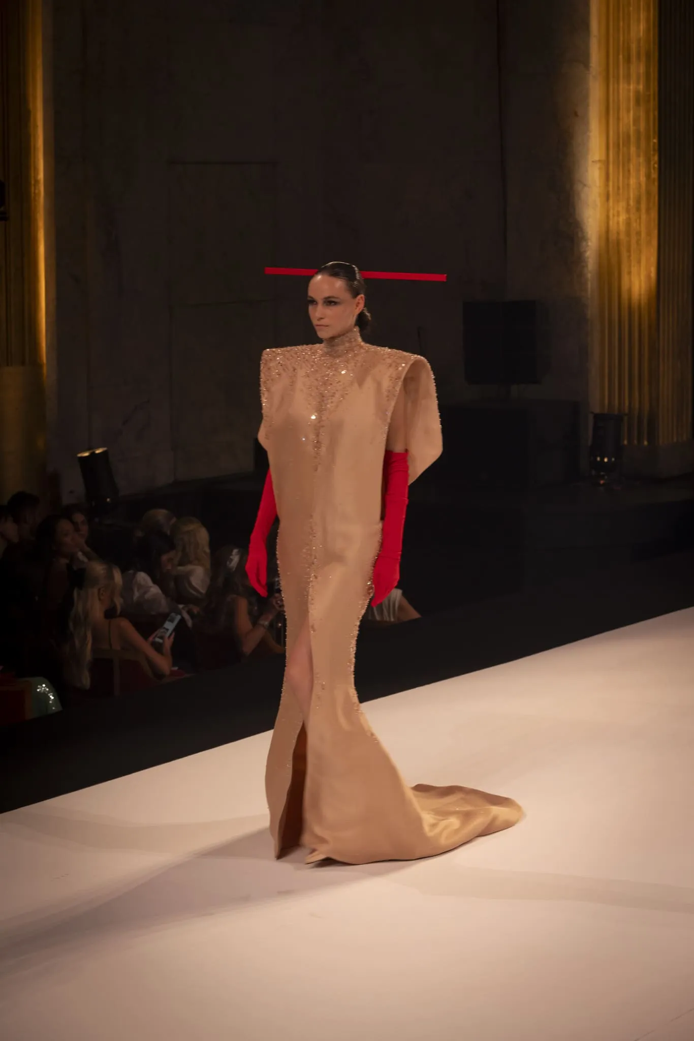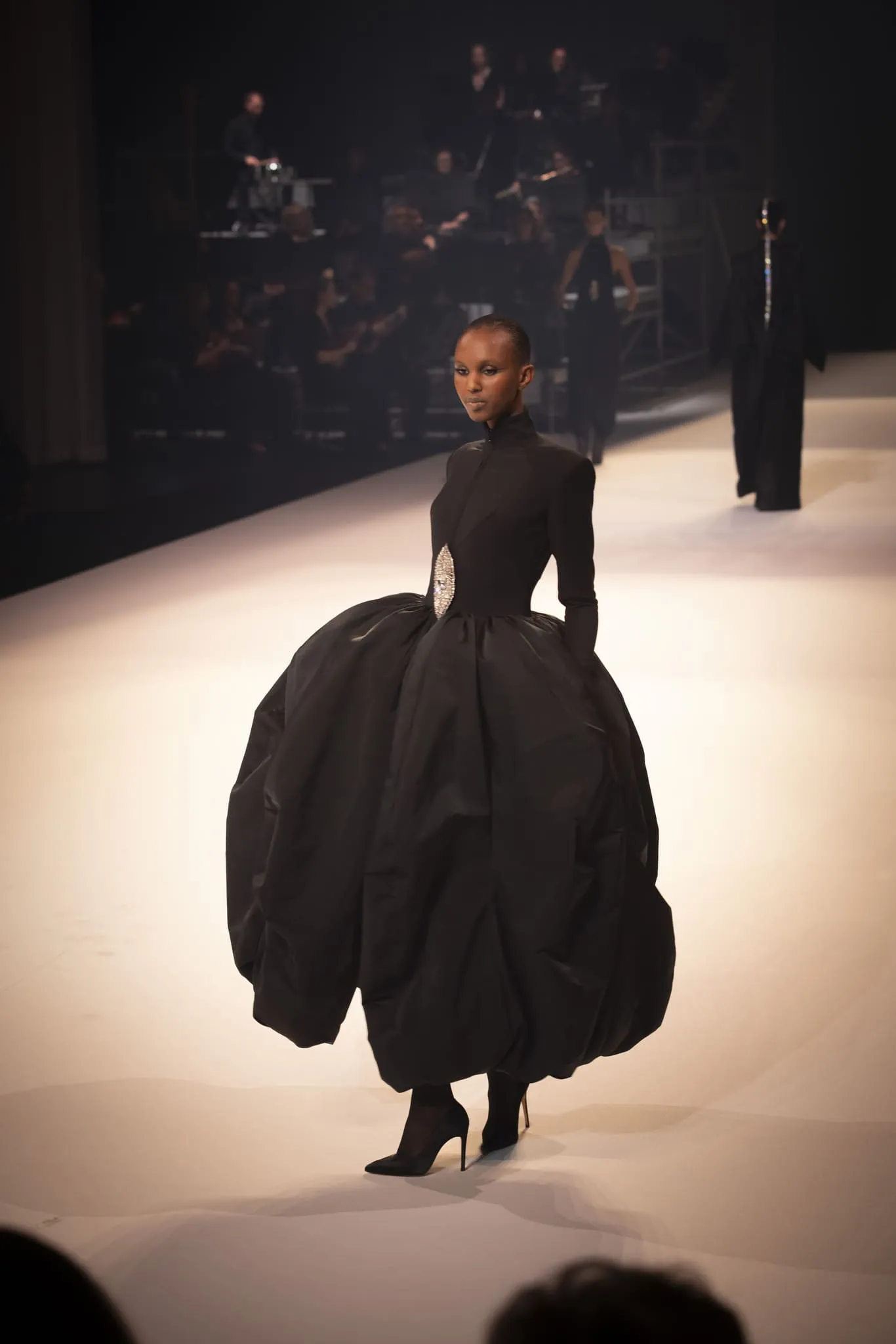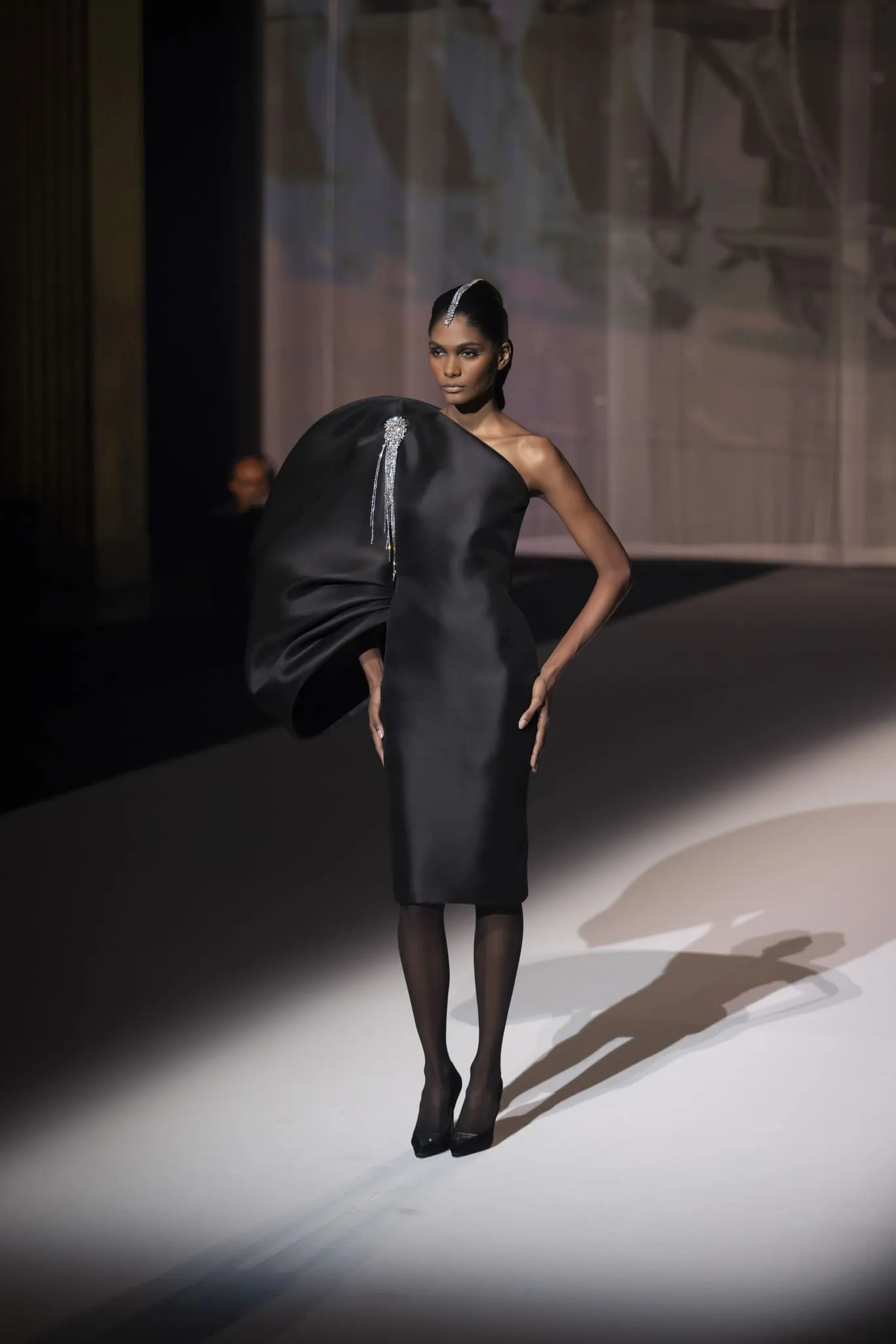 Stéphane Rolland a présenté sa collection haute couture automne-hiver 2025-2026 baptisée "Le Boléro" au théâtre des Champs Elysées, ponctué de tonalités rougeâtres et plus sombres. Une ligne qui puise son essence dans une rencontre fascinante entre deux imaginaires : celui de Maurice Ravel, architecte du rythme mécanique et abstrait, et celui d’Ida Rubinstein, muse en quête d’un rêve ibérique, sensuel et spectral. Des silhouettes sculpturales ont déambulé avec grâce sur le thème du Boléro de Ravel, magnifié par une musique d’orchestre.