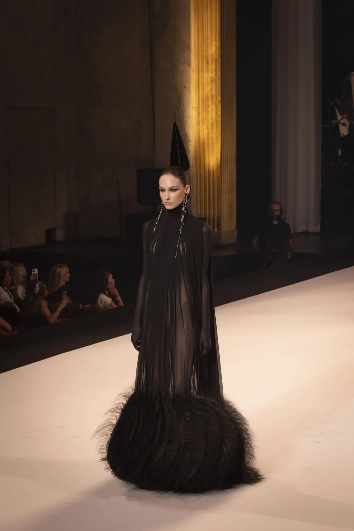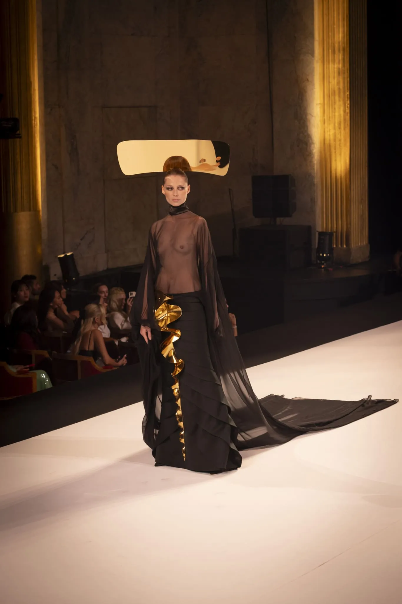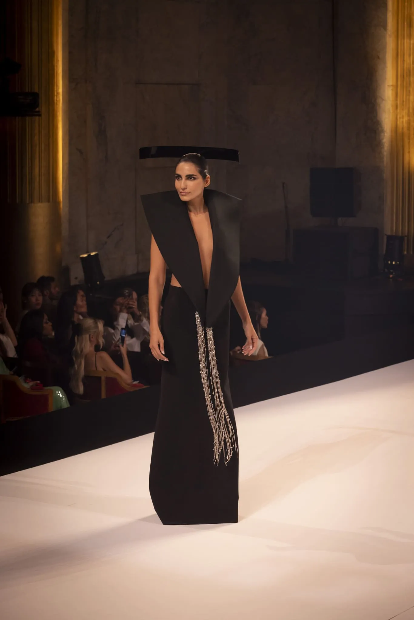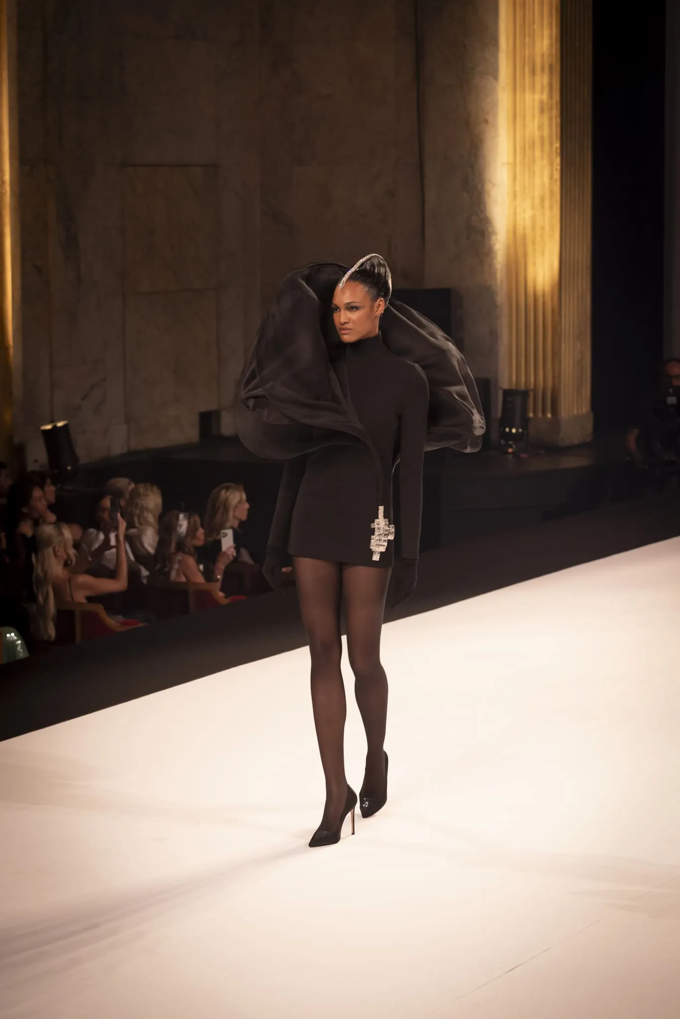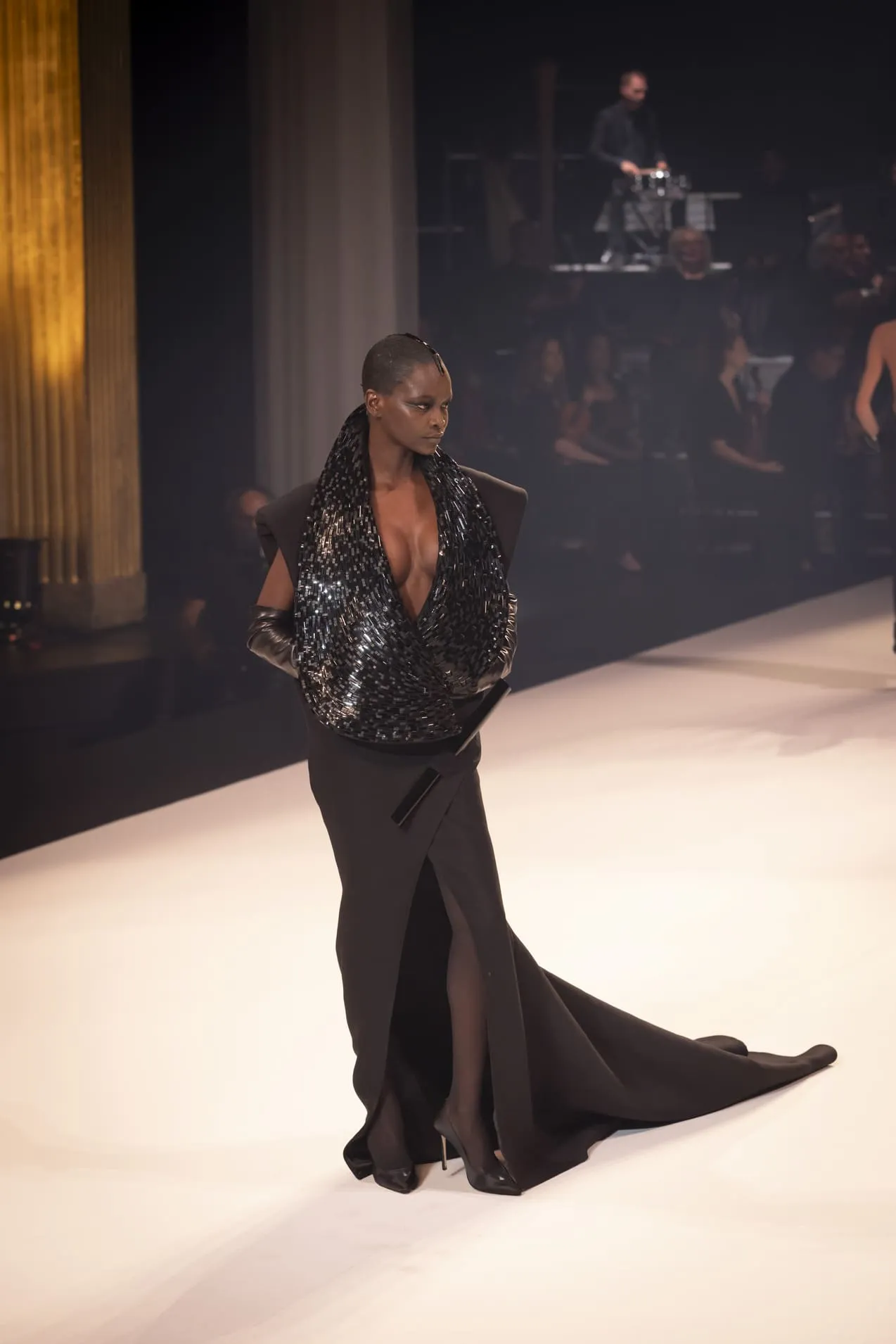 Stéphane Rolland a présenté sa collection haute couture automne-hiver 2025-2026 baptisée "Le Boléro" au théâtre des Champs Elysées, ponctué de tonalités rougeâtres et plus sombres. Une ligne qui puise son essence dans une rencontre fascinante entre deux imaginaires : celui de Maurice Ravel, architecte du rythme mécanique et abstrait, et celui d’Ida Rubinstein, muse en quête d’un rêve ibérique, sensuel et spectral. Des silhouettes sculpturales ont déambulé avec grâce sur le thème du Boléro de Ravel, magnifié par une musique d’orchestre.