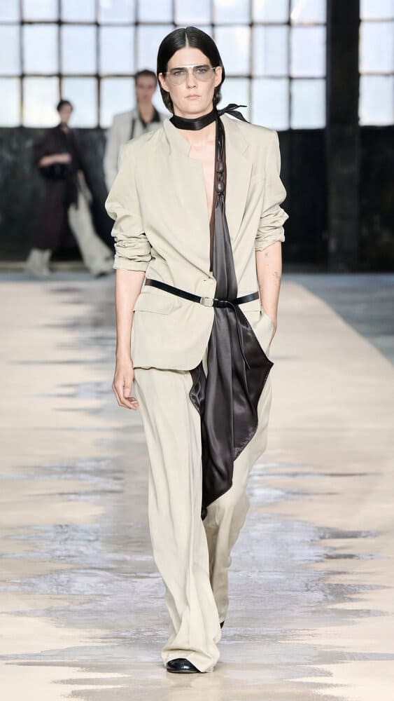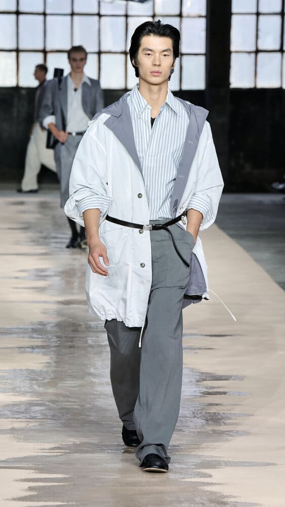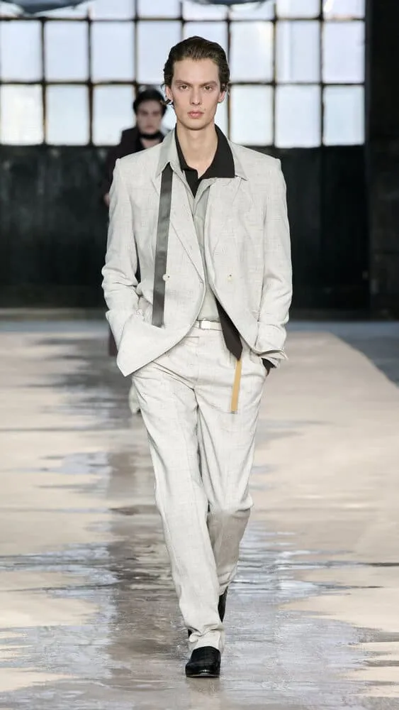 Pour le printemps-été 2026, BOSS dévoile une collection audacieuse qui explore les tensions entre rigueur et désordre. Présenté à la Fonderia Macchi de Milan, le défilé BOSS Paradox met en scène des silhouettes épurées, inspirées du design allemand des années 1960, contrebalancées par des touches de fluidité et de mouvement empruntées à la danse contemporaine. L'installation immersive de l'artiste Boris Acket, "Aesthetics of Decay", incarne cette dualité en se froissant et se décomposant au rythme des modèles, projetant des reflets changeants sur les tenues et le podium. Chaque passage devient une chorégraphie où le tissu, la lumière et le corps dialoguent. La collection s'étend au-delà du podium grâce à une collaboration inédite avec quatre artistes qui réinterprètent le paradoxe Boss à travers l'intelligence artificielle. Mode, architecture, poésie et imagination fusionnent dans des œuvres numériques qui prolongent l'expérience créative. Devant plus de 600 invités, dont David Beckham, S.Coups et Amelia Gray, le défilé a célébré la diversité des talents et l'engagement de BOSS envers l'art sous toutes ses formes. Entre esthétique industrielle et envolées poétiques, Boss affirme une vision du style où les contraires s'attirent et se subliment.