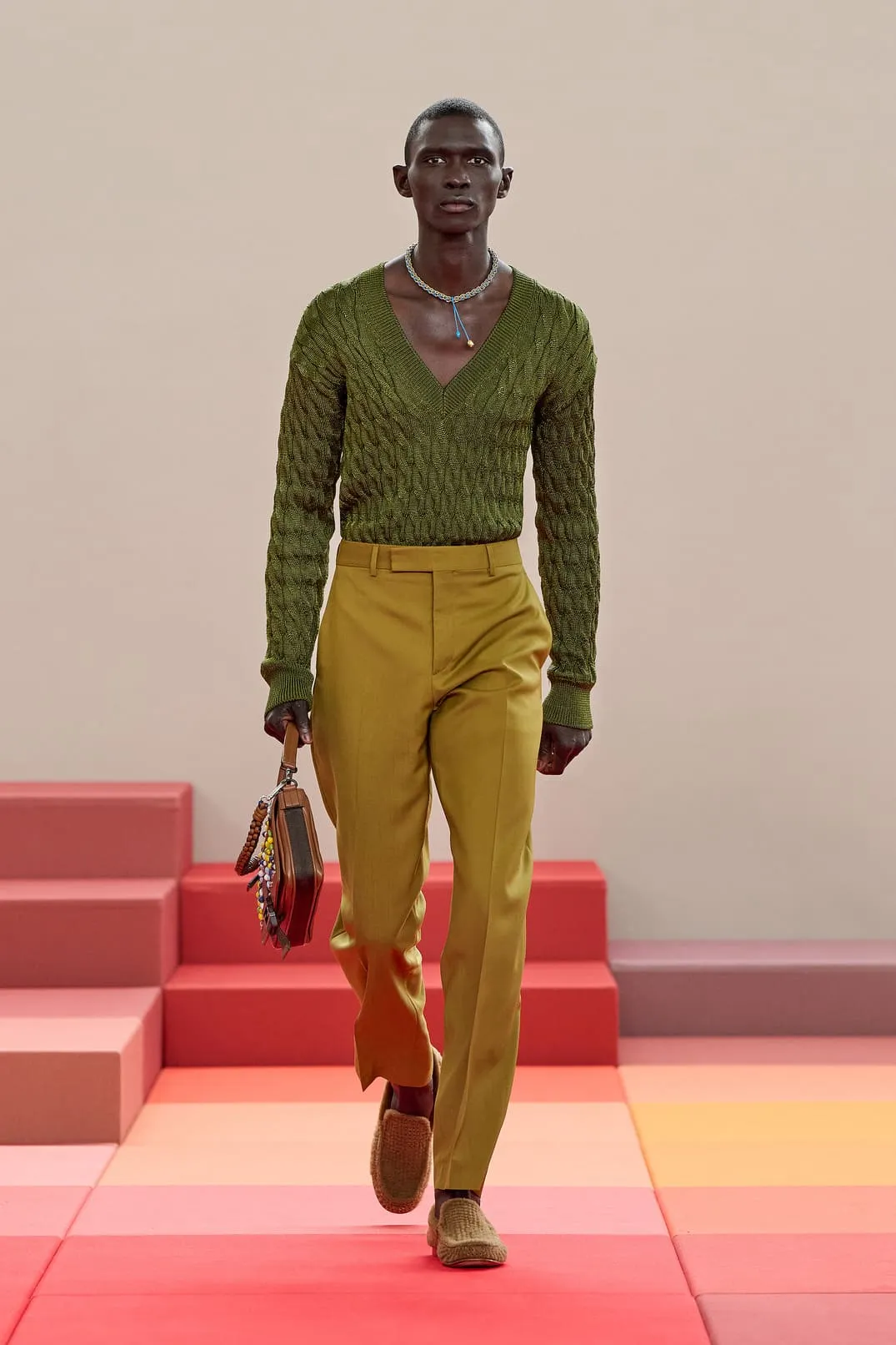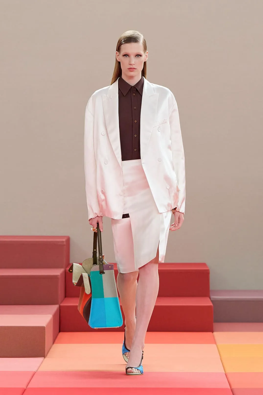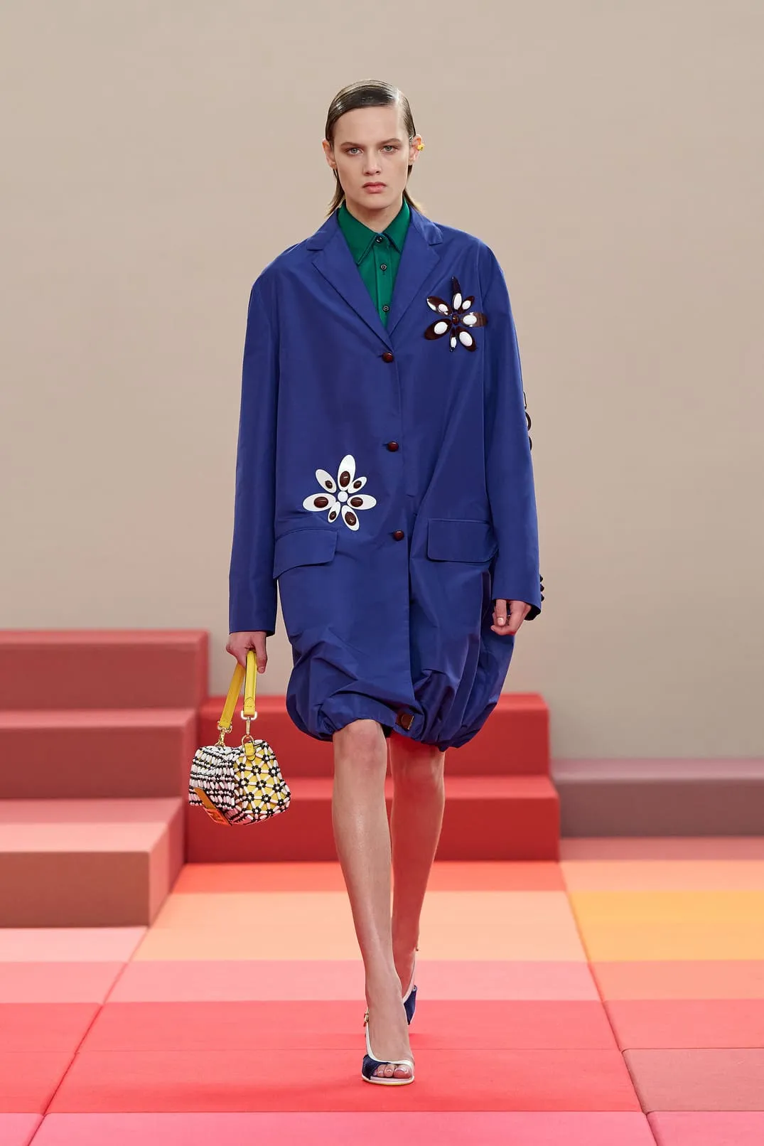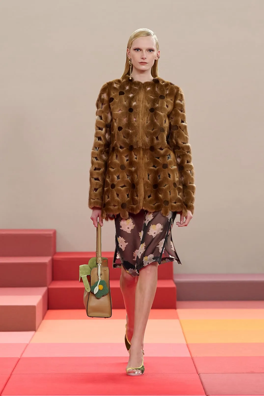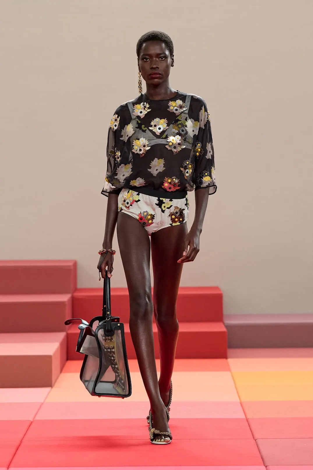 Dans la lumière éclatante d'un jour romain, Silvia Venturini Fendi dévoile une collection printemps-été 2026 où la couleur devient langage, mémoire et mouvement. Le décor, conçu par Marc Newson, s'inspire d'un motif floral Fendi pour se transformer en une mosaïque digitale, un quilt contemporain vibrant de teintes saturées. Chaque pixel, agrandi jusqu'à devenir une unité de lumière et de texture, évoque l'évolution de la couleur à l'écran et célèbre l'artisanat intergénérationnel. Ce paysage tactile et immersif efface les frontières entre spectateurs et spectacle, invitant à une expérience sensorielle sans hiérarchie. Les silhouettes, fluides et essentielles, dansent entre les espaces positifs et négatifs, entre le familier et l'inattendu. Les matières - organza, crochet, soie torsadée - célèbrent une opulence discrète, tandis que les broderies et motifs floraux insufflent une nostalgie graphique. La dualité chère à Fendi - tradition et innovation, artisanat et technologie - s'incarne dans chaque couture, chaque volume, chaque nuance. Comme le dit Silvia : "Innover tout en préservant la vision Fendi... avec une touche de fantaisie". Et cette fantaisie prend ici la forme d'un kaléidoscope vivant, où chaque vêtement devient une émotion à porter.