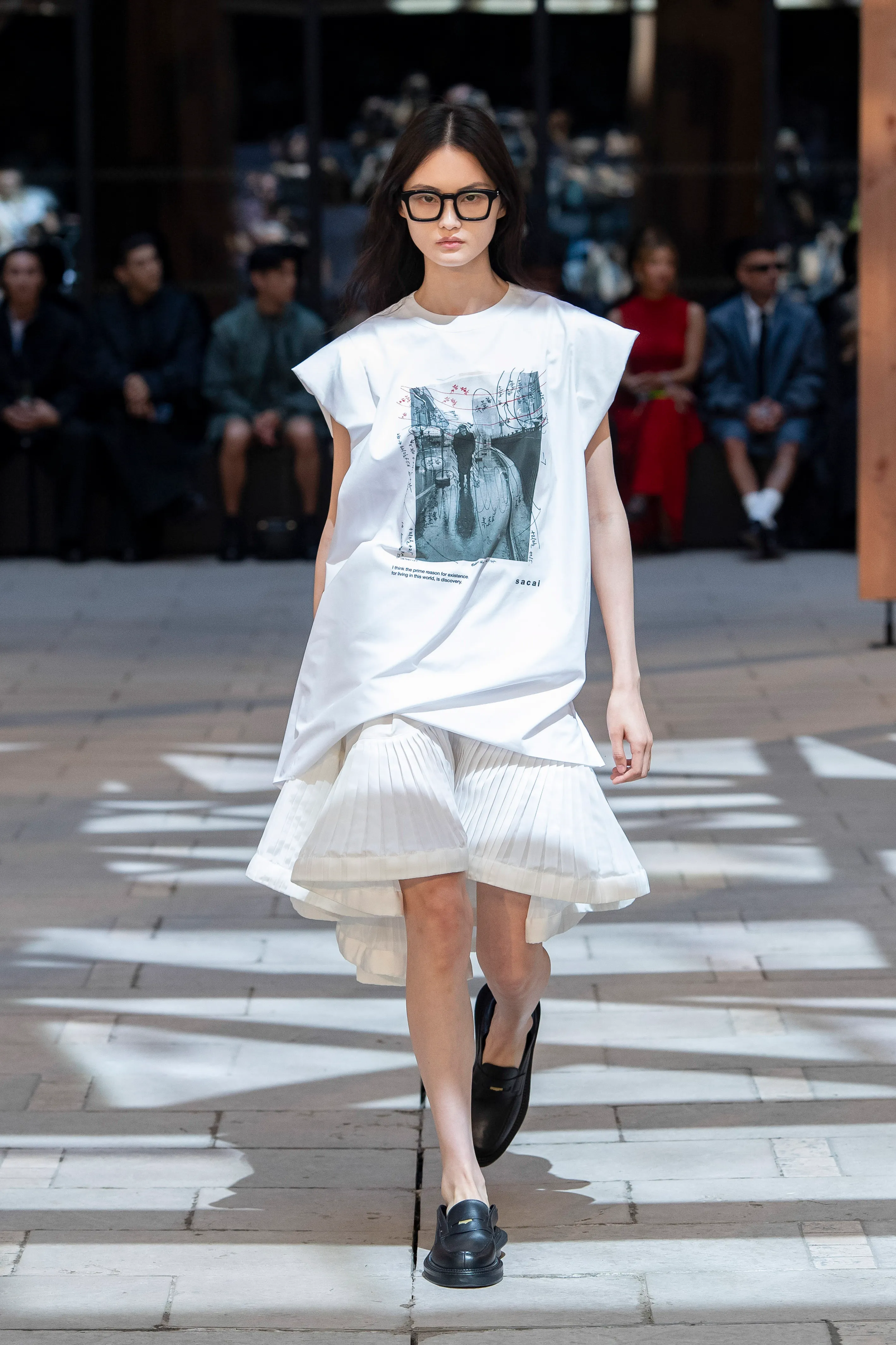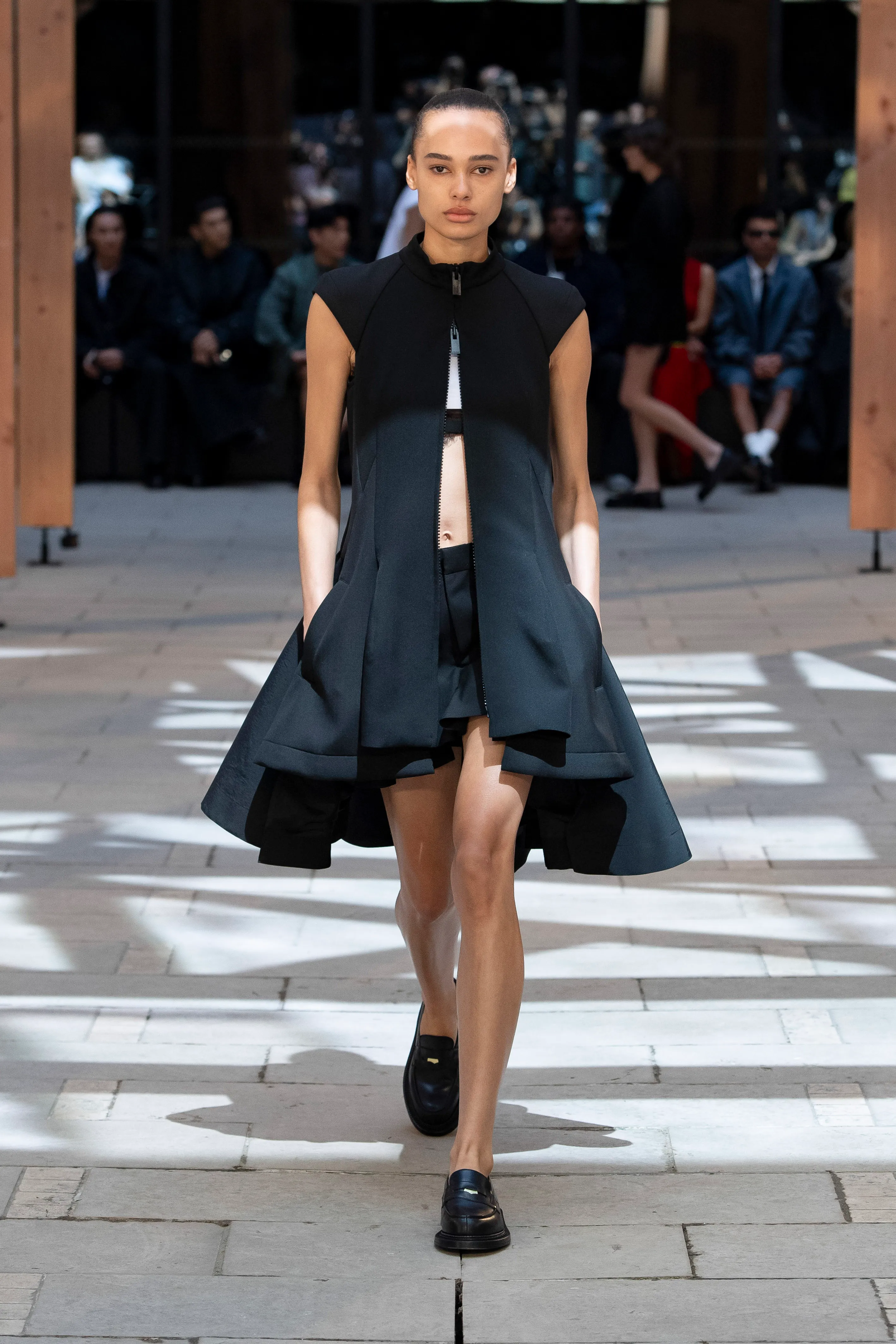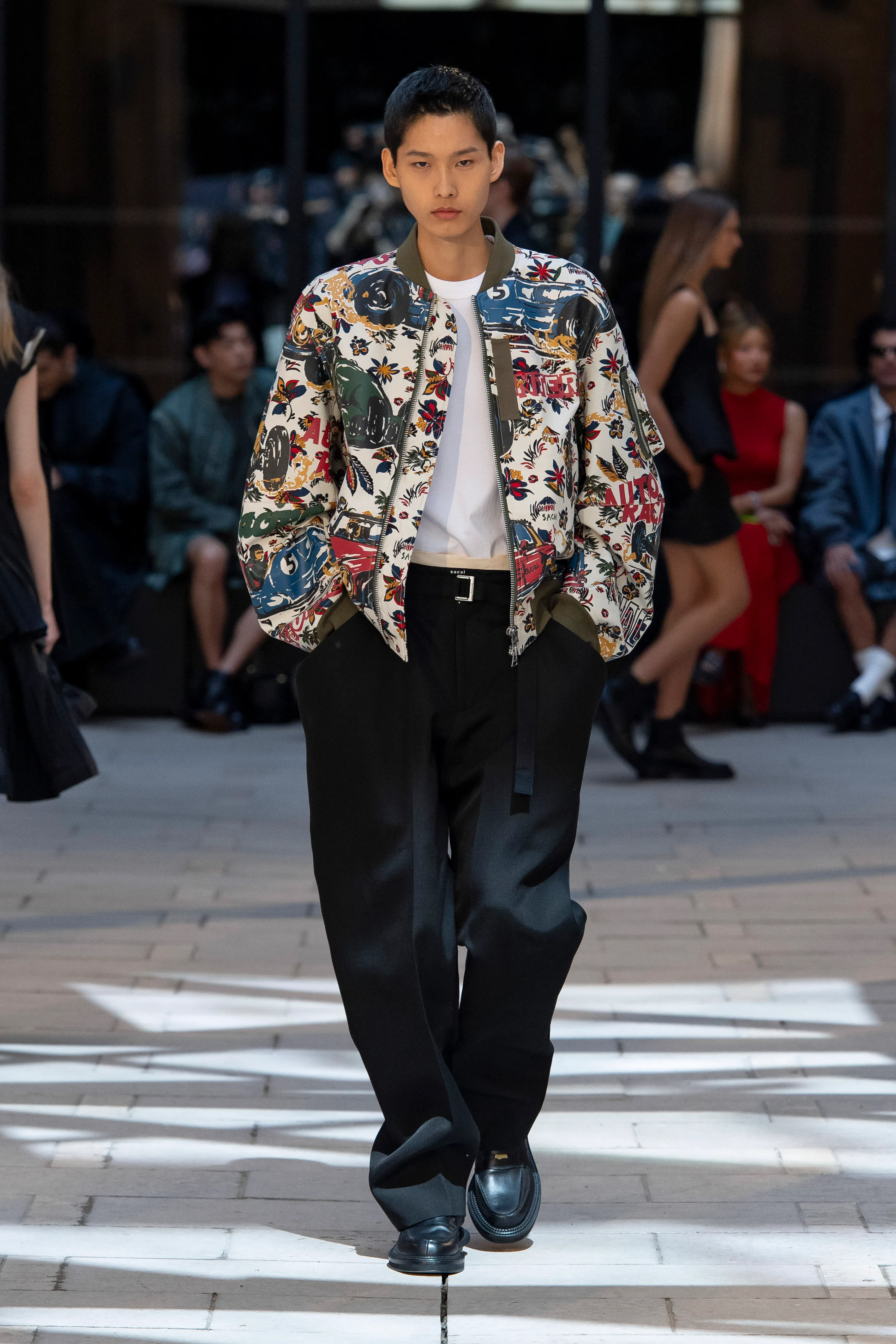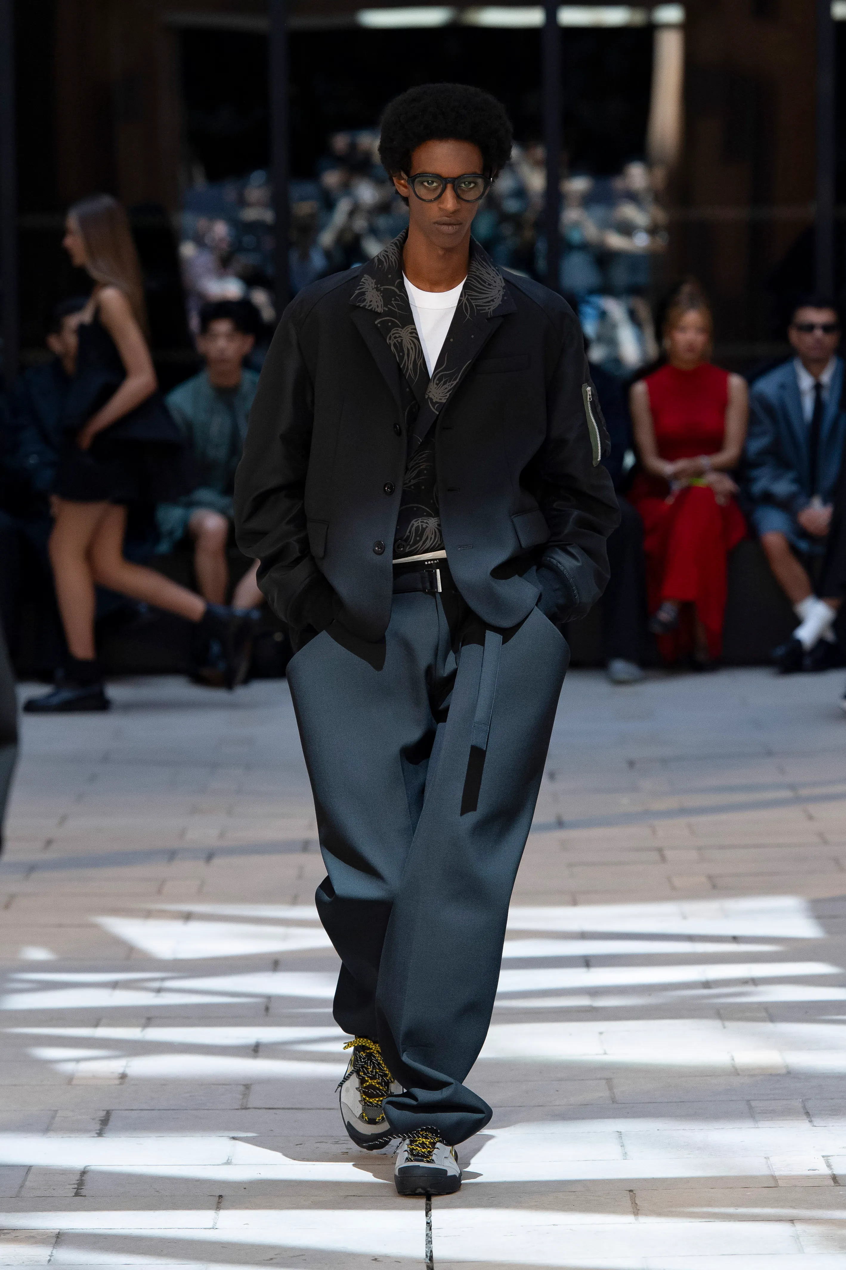 "Je pense que la principale raison d'exister, de vivre dans ce monde, est la découverte", soulignait l’acteur iconique James Dean. Cette saison, Chitose Abe prend le sentiment de l'acteur emblématique - ainsi que son esprit de curiosité, d'honnêteté, de liberté et de naïveté innocente - comme point de départ de sa signature remixant et réinventant des silhouettes et des proportions familières. Pour les femmes, cette saison prend la forme d’épaules fortes et architecturales, de pantalons au volume exagéré, appliqués à des archétypes vestimentaires familiers. Pour les hommes, Chitose Abe s'inspire de la veste Harrington de Dean et l'associe à des formes sacai, entrecoupées du charme des imprimés de voitures anciennes et de fleurs. Les mannequins portent des livres et des lunettes, suggérant les éphémères du monde universitaire et de la jeunesse, la découverte en mouvement. Une nouvelle collaboration avec Levi's® réinvente les hybrides des vestes Type I, II et III, sculptées, cintrées et collées à un pantalon en denim, pour en faire une seule pièce. Le jean original prend un nouveau volume, façon sacai. Le plus admiré du Japon, WTAPS, introduit son style d'inspiration militaire dans l'hybridation de sacai. Les mocassins traditionnels J.M. Weston se transforment en quelque chose de nouveau. Nike et sacai présentent la sneaker Zegamadome. La scénographie, inspirée de la photo emblématique de Dennis Stock de James Dean devant la maison de son enfance, reflète l'attitude juvénile de la collection. Les modèles incarnent l’esprit de la majorité alors qu’ils quittent un à un la maison déconstruite, racontant une histoire de croissance et de découverte de soi.