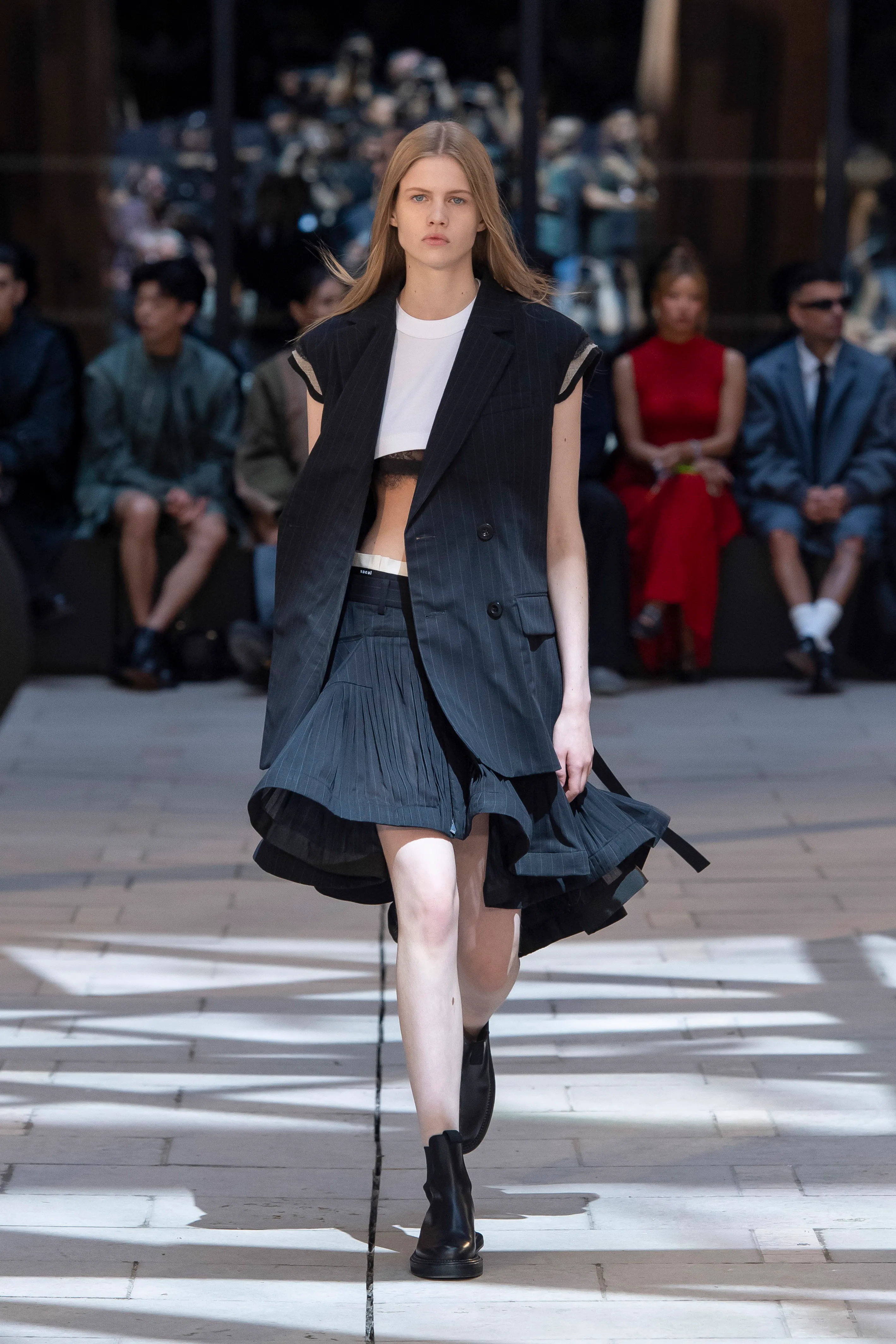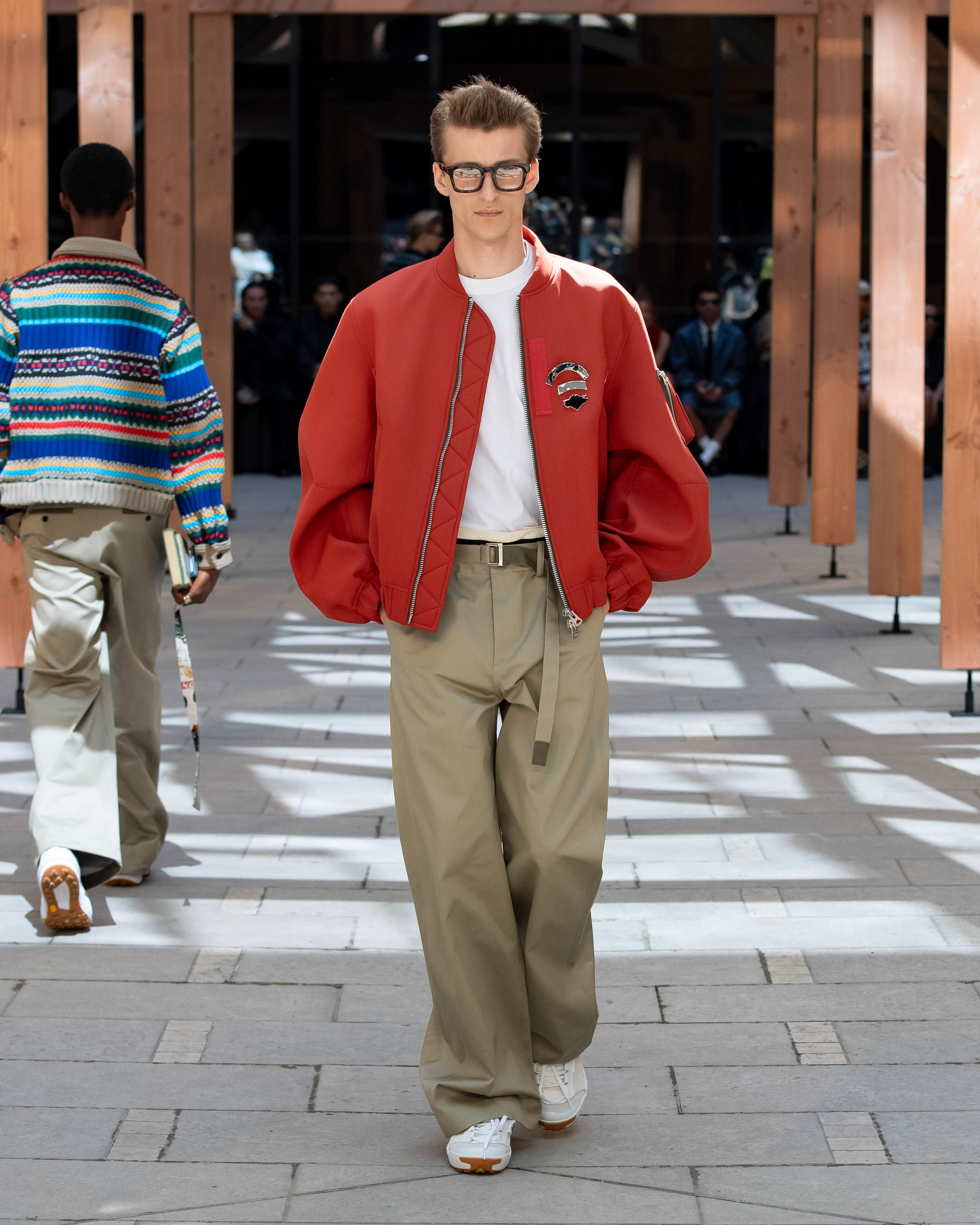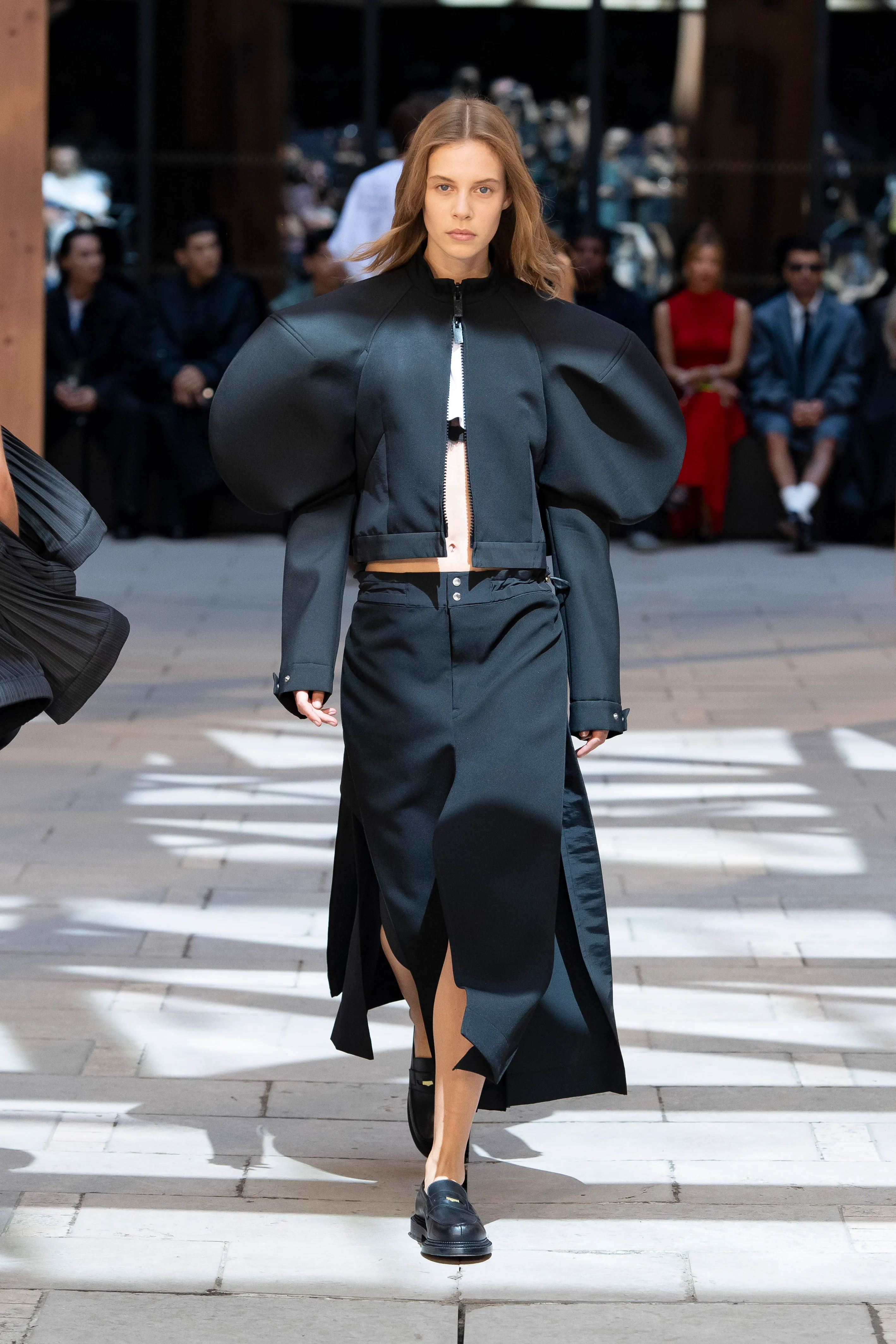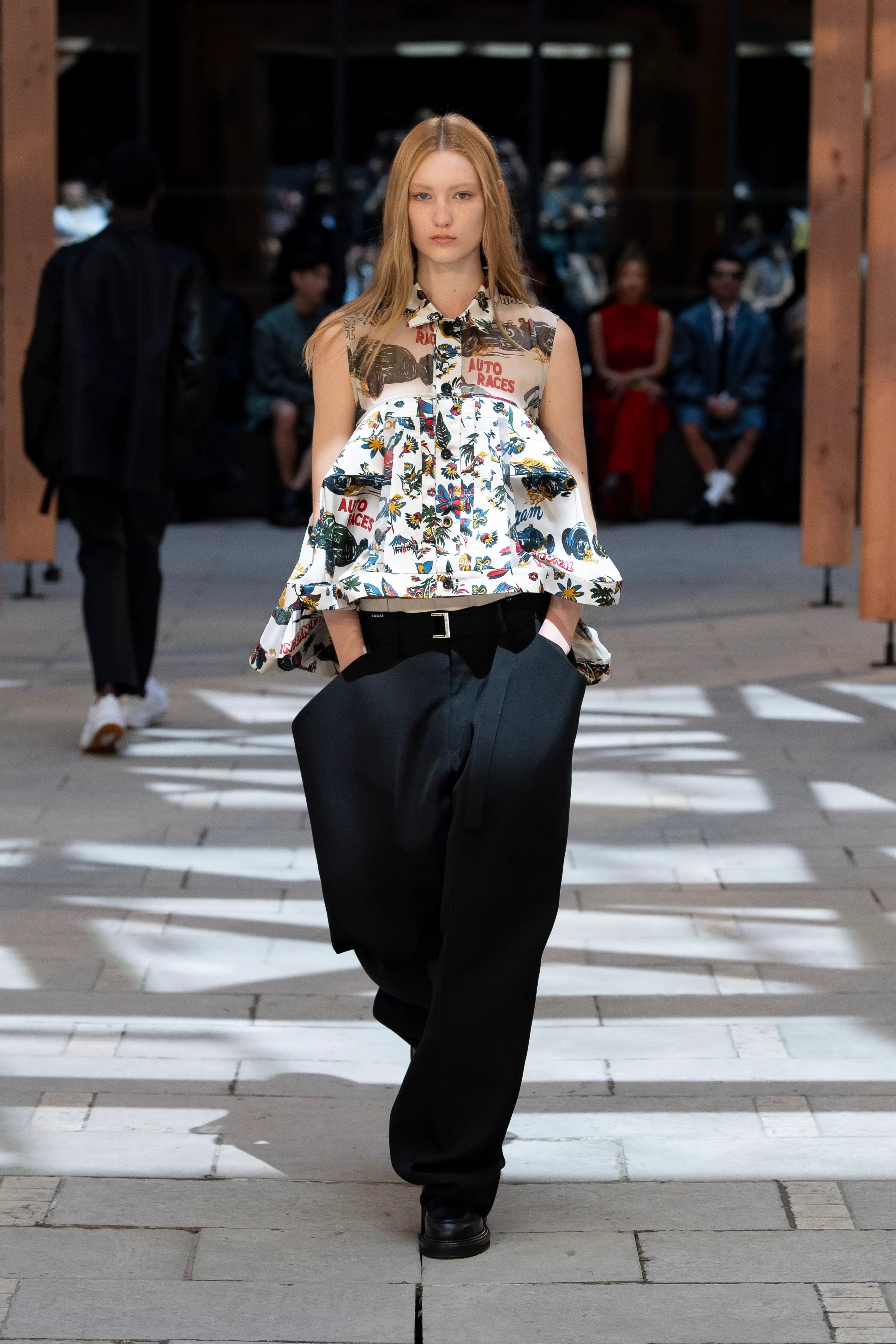 "Je pense que la principale raison d'exister, de vivre dans ce monde, est la découverte", soulignait l’acteur iconique James Dean. Cette saison, Chitose Abe prend le sentiment de l'acteur emblématique - ainsi que son esprit de curiosité, d'honnêteté, de liberté et de naïveté innocente - comme point de départ de sa signature remixant et réinventant des silhouettes et des proportions familières. Pour les femmes, cette saison prend la forme d’épaules fortes et architecturales, de pantalons au volume exagéré, appliqués à des archétypes vestimentaires familiers. Pour les hommes, Chitose Abe s'inspire de la veste Harrington de Dean et l'associe à des formes sacai, entrecoupées du charme des imprimés de voitures anciennes et de fleurs. Les mannequins portent des livres et des lunettes, suggérant les éphémères du monde universitaire et de la jeunesse, la découverte en mouvement. Une nouvelle collaboration avec Levi's® réinvente les hybrides des vestes Type I, II et III, sculptées, cintrées et collées à un pantalon en denim, pour en faire une seule pièce. Le jean original prend un nouveau volume, façon sacai. Le plus admiré du Japon, WTAPS, introduit son style d'inspiration militaire dans l'hybridation de sacai. Les mocassins traditionnels J.M. Weston se transforment en quelque chose de nouveau. Nike et sacai présentent la sneaker Zegamadome. La scénographie, inspirée de la photo emblématique de Dennis Stock de James Dean devant la maison de son enfance, reflète l'attitude juvénile de la collection. Les modèles incarnent l’esprit de la majorité alors qu’ils quittent un à un la maison déconstruite, racontant une histoire de croissance et de découverte de soi.