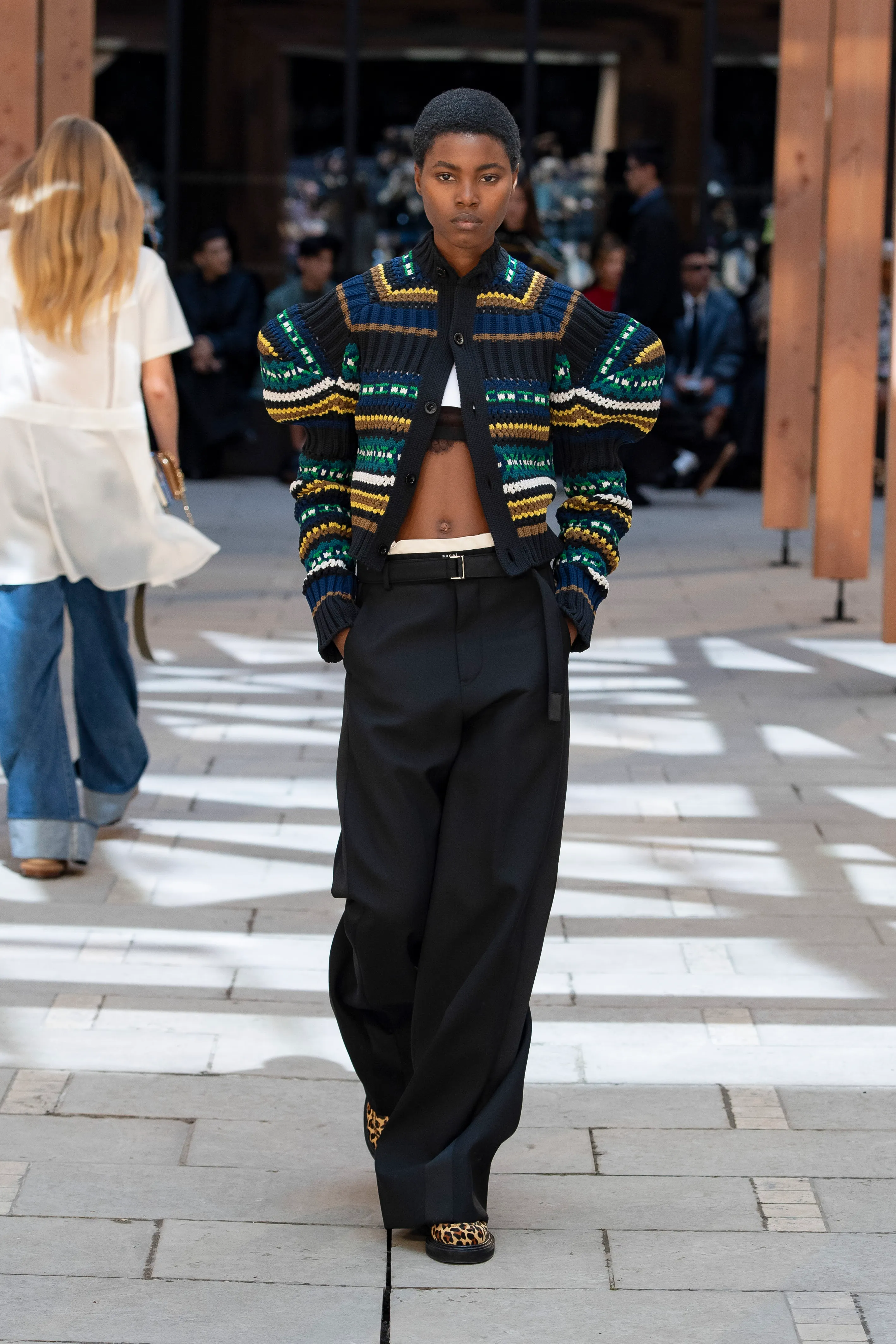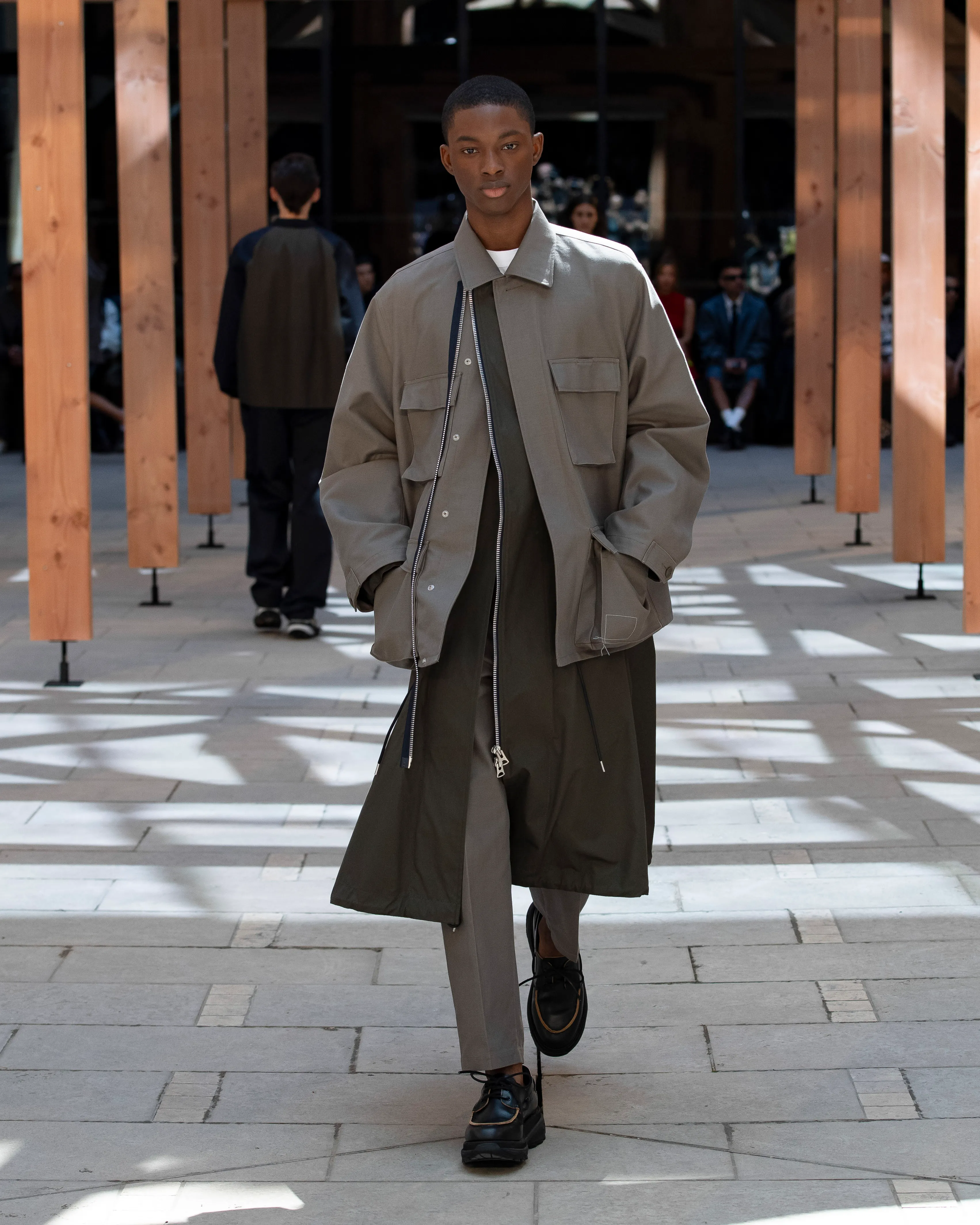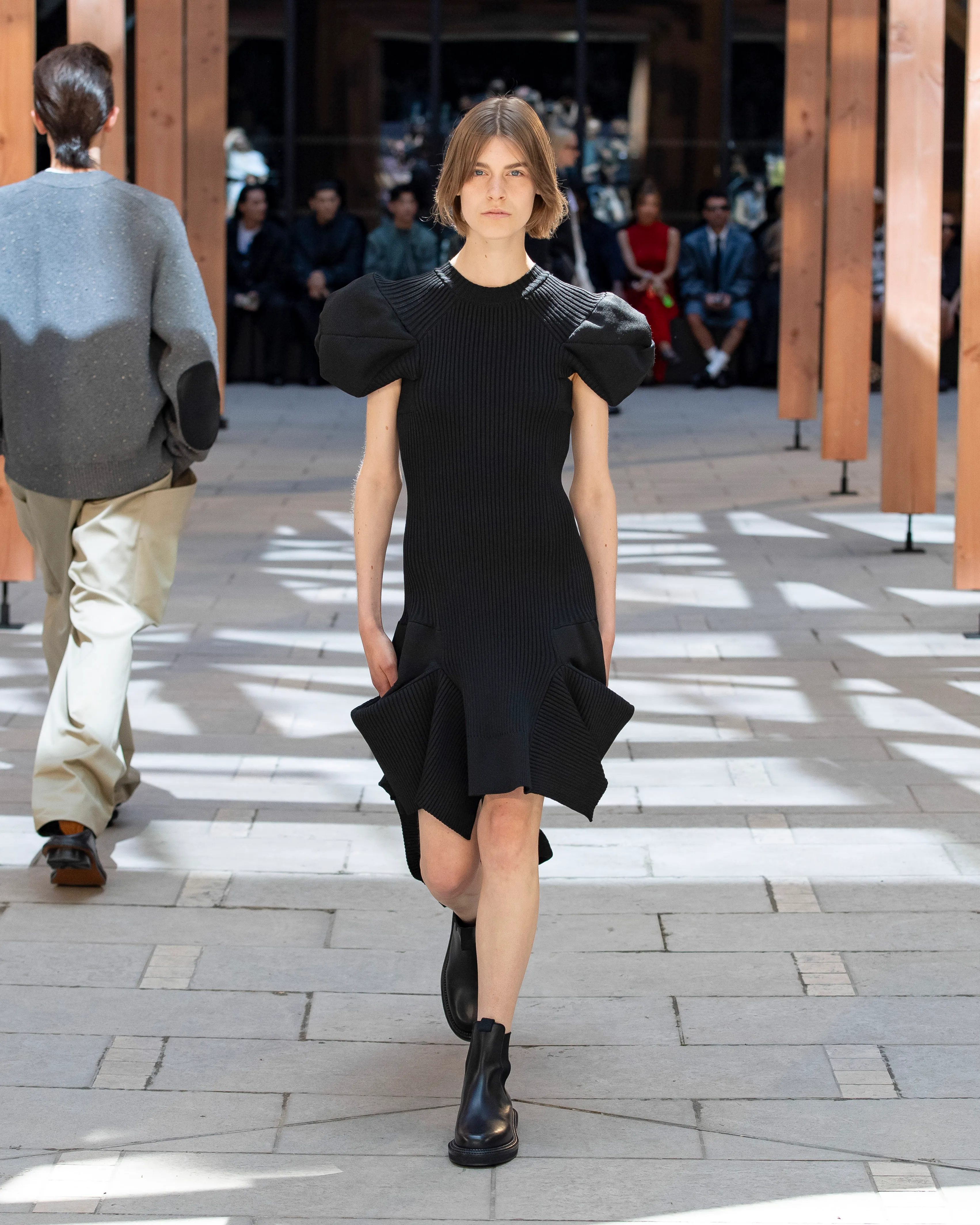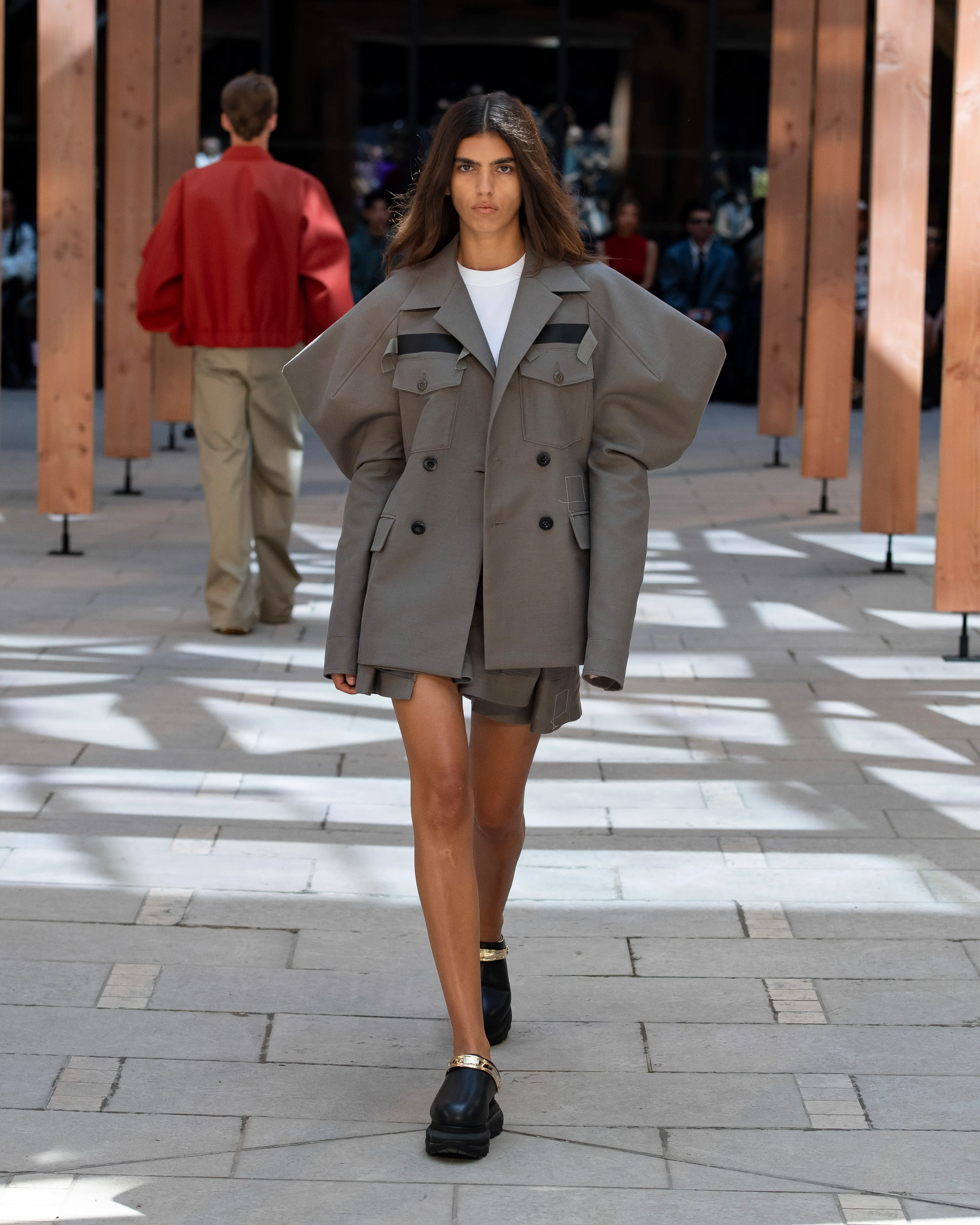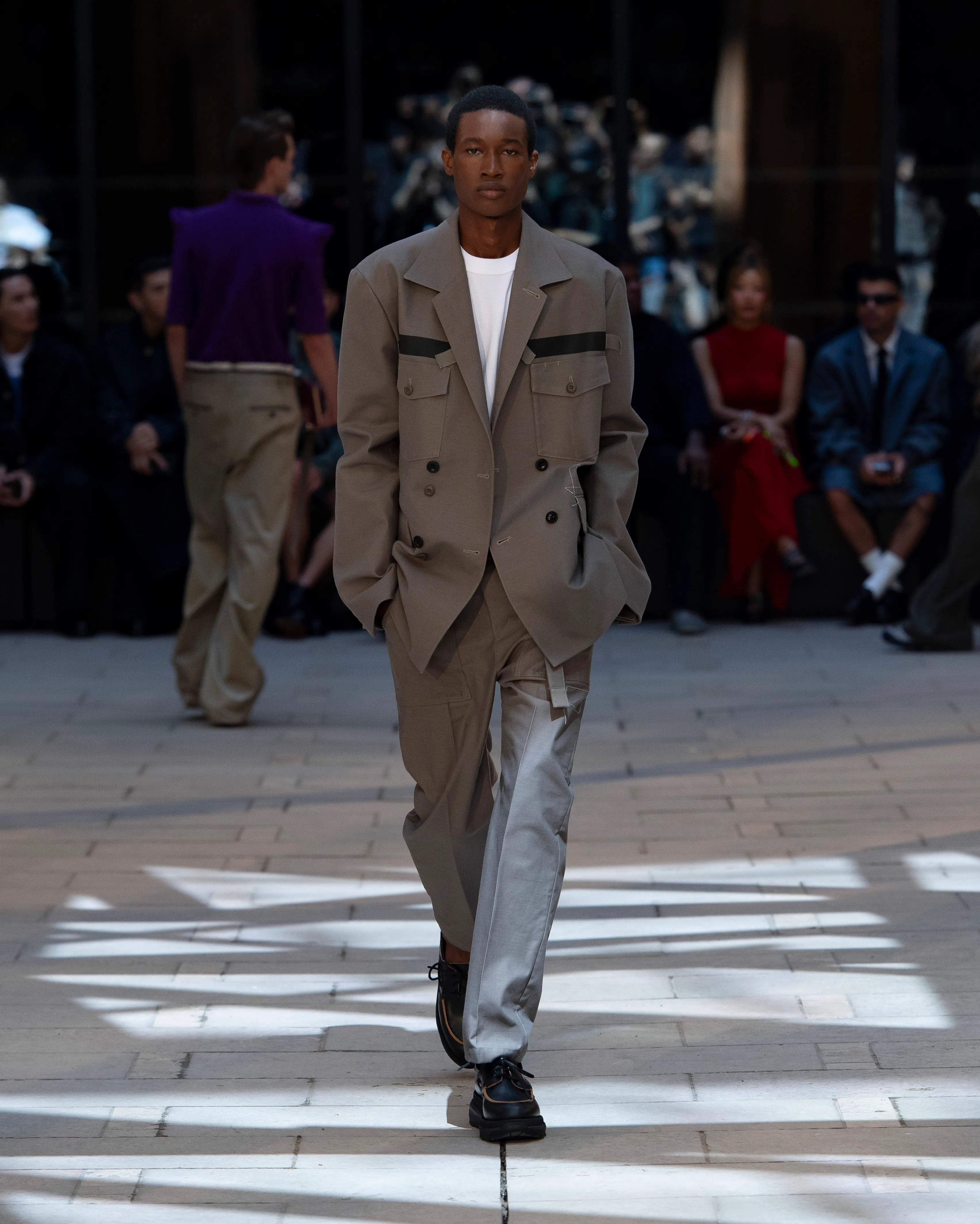 "Je pense que la principale raison d'exister, de vivre dans ce monde, est la découverte", soulignait l’acteur iconique James Dean. Cette saison, Chitose Abe prend le sentiment de l'acteur emblématique - ainsi que son esprit de curiosité, d'honnêteté, de liberté et de naïveté innocente - comme point de départ de sa signature remixant et réinventant des silhouettes et des proportions familières. Pour les femmes, cette saison prend la forme d’épaules fortes et architecturales, de pantalons au volume exagéré, appliqués à des archétypes vestimentaires familiers. Pour les hommes, Chitose Abe s'inspire de la veste Harrington de Dean et l'associe à des formes sacai, entrecoupées du charme des imprimés de voitures anciennes et de fleurs. Les mannequins portent des livres et des lunettes, suggérant les éphémères du monde universitaire et de la jeunesse, la découverte en mouvement. Une nouvelle collaboration avec Levi's® réinvente les hybrides des vestes Type I, II et III, sculptées, cintrées et collées à un pantalon en denim, pour en faire une seule pièce. Le jean original prend un nouveau volume, façon sacai. Le plus admiré du Japon, WTAPS, introduit son style d'inspiration militaire dans l'hybridation de sacai. Les mocassins traditionnels J.M. Weston se transforment en quelque chose de nouveau. Nike et sacai présentent la sneaker Zegamadome. La scénographie, inspirée de la photo emblématique de Dennis Stock de James Dean devant la maison de son enfance, reflète l'attitude juvénile de la collection. Les modèles incarnent l’esprit de la majorité alors qu’ils quittent un à un la maison déconstruite, racontant une histoire de croissance et de découverte de soi.