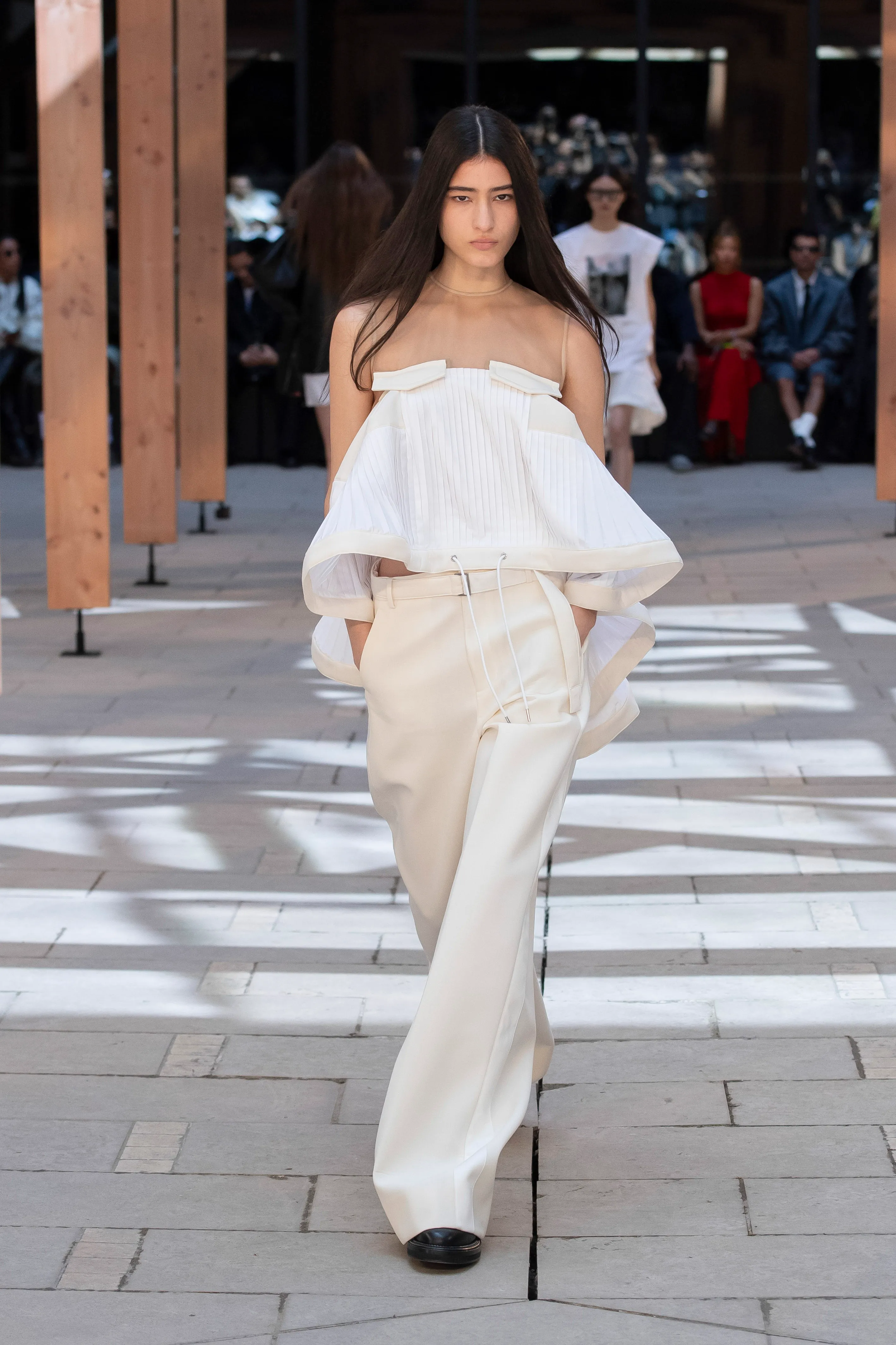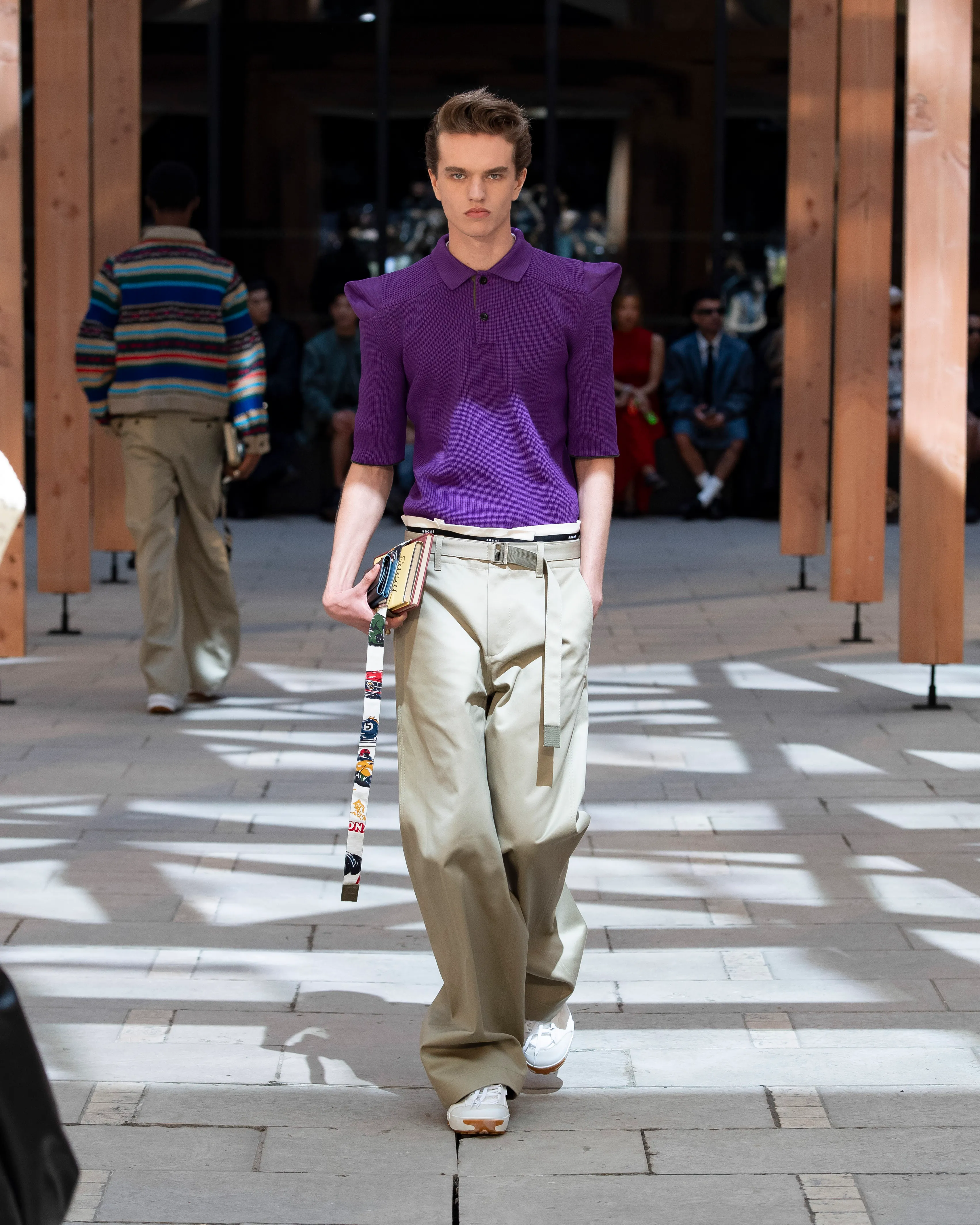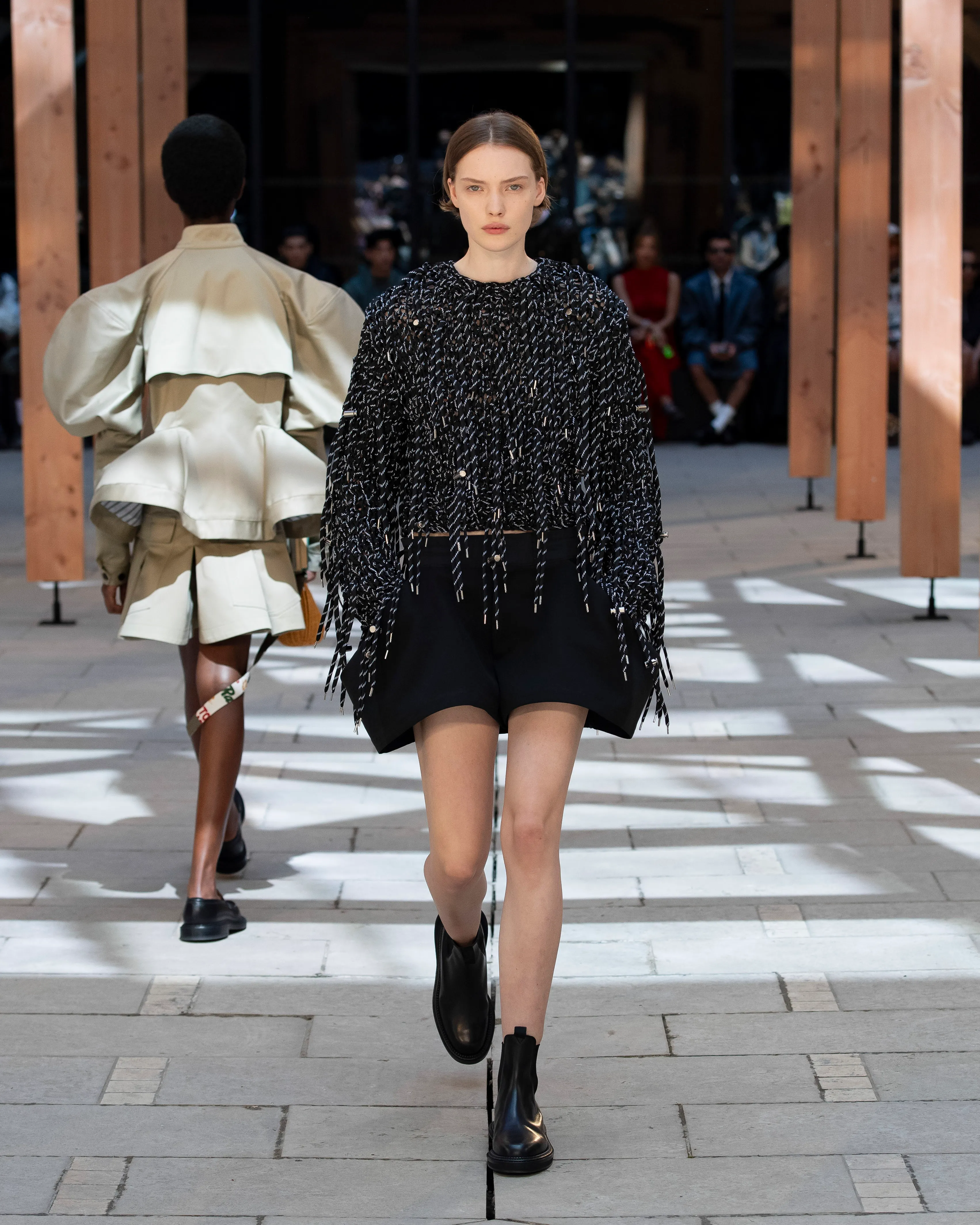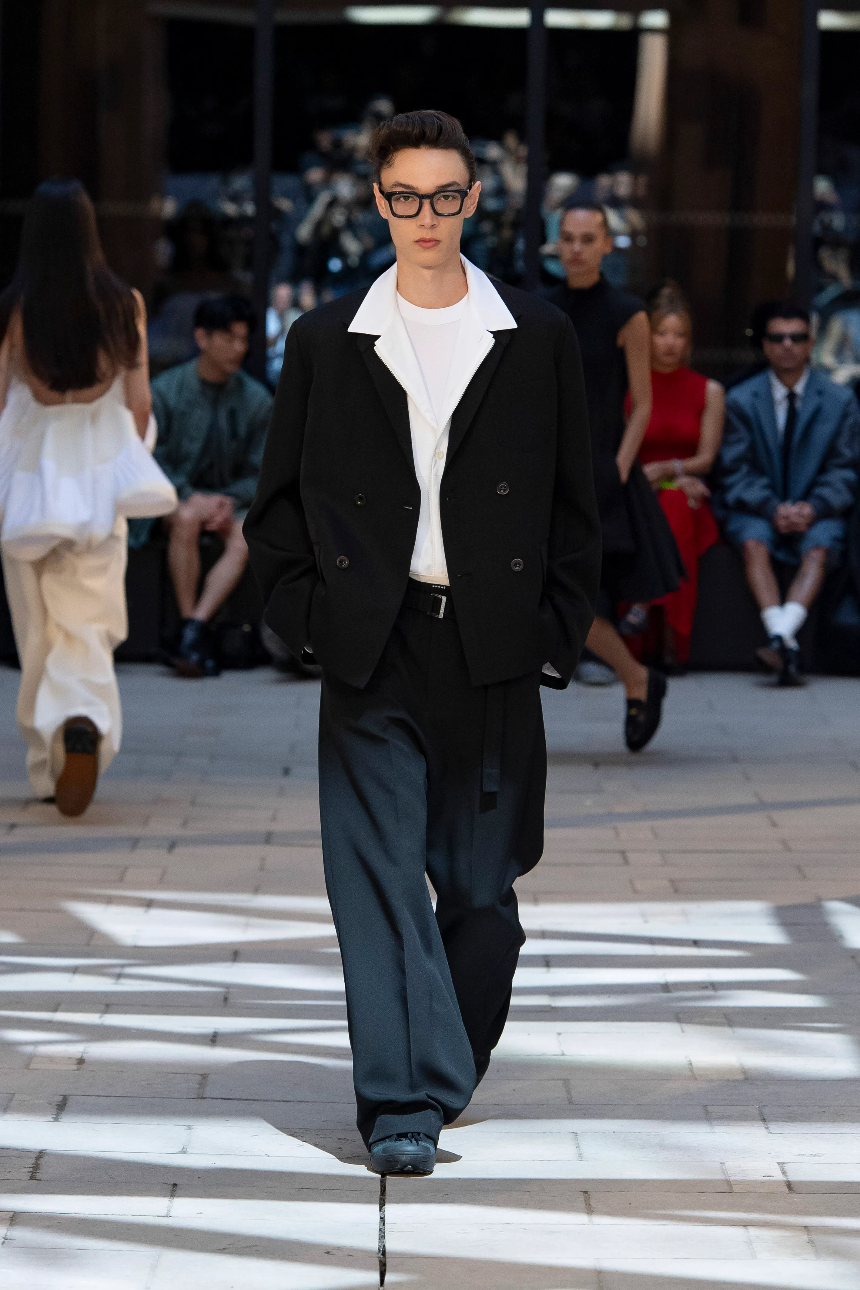 "Je pense que la principale raison d'exister, de vivre dans ce monde, est la découverte", soulignait l’acteur iconique James Dean. Cette saison, Chitose Abe prend le sentiment de l'acteur emblématique - ainsi que son esprit de curiosité, d'honnêteté, de liberté et de naïveté innocente - comme point de départ de sa signature remixant et réinventant des silhouettes et des proportions familières. Pour les femmes, cette saison prend la forme d’épaules fortes et architecturales, de pantalons au volume exagéré, appliqués à des archétypes vestimentaires familiers. Pour les hommes, Chitose Abe s'inspire de la veste Harrington de Dean et l'associe à des formes sacai, entrecoupées du charme des imprimés de voitures anciennes et de fleurs. Les mannequins portent des livres et des lunettes, suggérant les éphémères du monde universitaire et de la jeunesse, la découverte en mouvement. Une nouvelle collaboration avec Levi's® réinvente les hybrides des vestes Type I, II et III, sculptées, cintrées et collées à un pantalon en denim, pour en faire une seule pièce. Le jean original prend un nouveau volume, façon sacai. Le plus admiré du Japon, WTAPS, introduit son style d'inspiration militaire dans l'hybridation de sacai. Les mocassins traditionnels J.M. Weston se transforment en quelque chose de nouveau. Nike et sacai présentent la sneaker Zegamadome. La scénographie, inspirée de la photo emblématique de Dennis Stock de James Dean devant la maison de son enfance, reflète l'attitude juvénile de la collection. Les modèles incarnent l’esprit de la majorité alors qu’ils quittent un à un la maison déconstruite, racontant une histoire de croissance et de découverte de soi.
