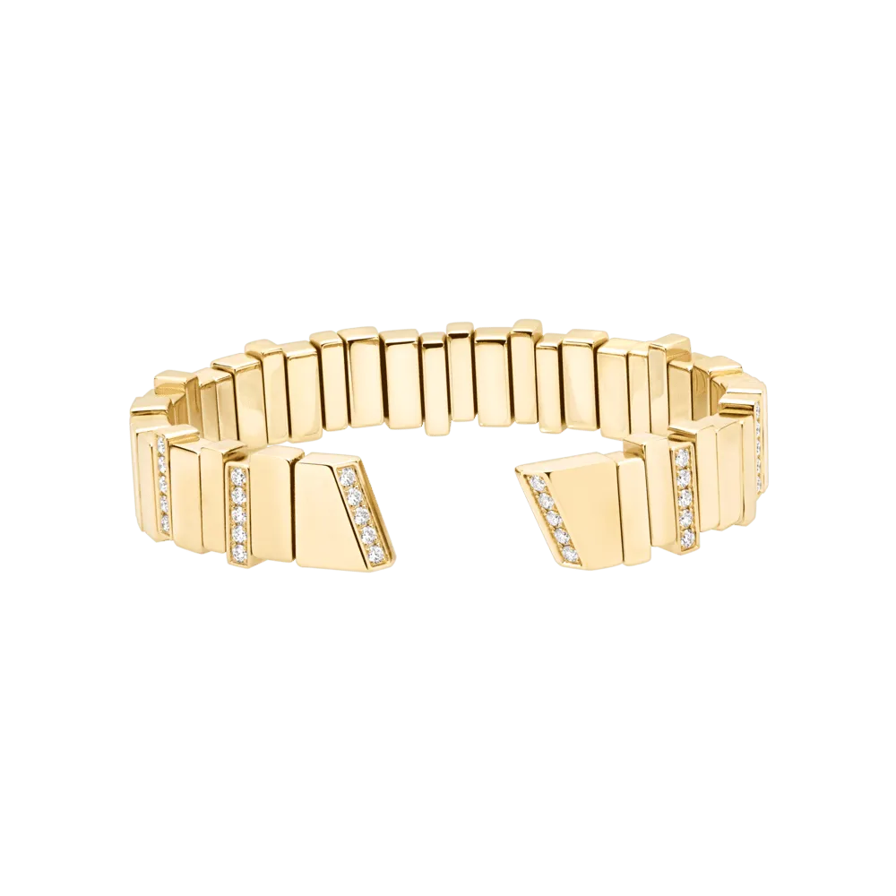Subtile alliance de créativité et de savoir-faire, la ligne de montres et de bijoux Gem Dior dessinée par la directrice artistique de Dior Joaillerie, Victoire de Castellane, illustre l’excellence de la maison française. L’actrice et ambassadrice Cara Delevingne prête sa moue facétieuse à cette nouvelle collection inspirée du design des minéraux. Le garde-temps épouse avec poésie le poignet de sa muse et sa géométrie atypique se décline sur des bagues, des bracelets et des boucles d’oreille en or jaune, blanc ou rose.