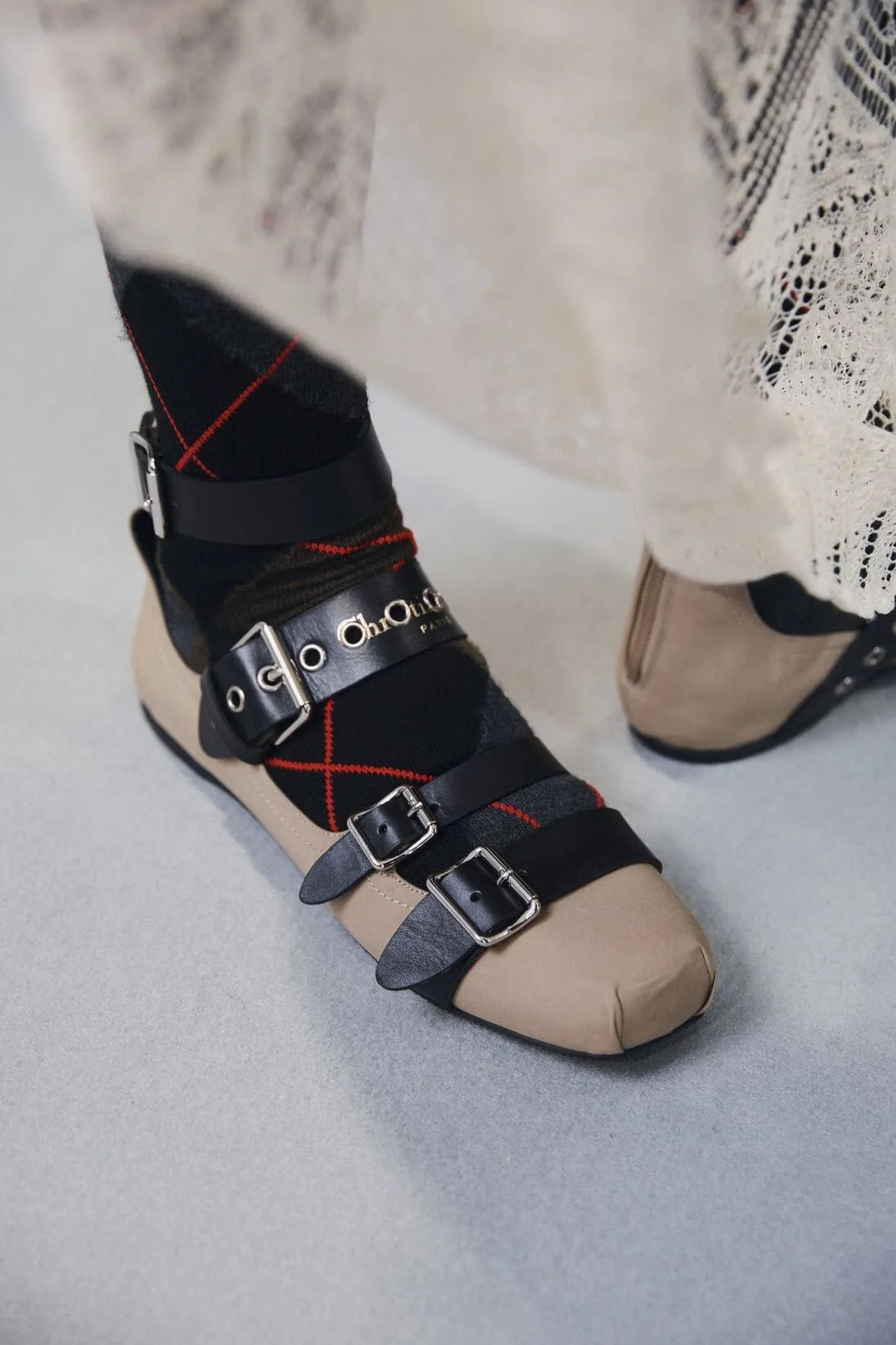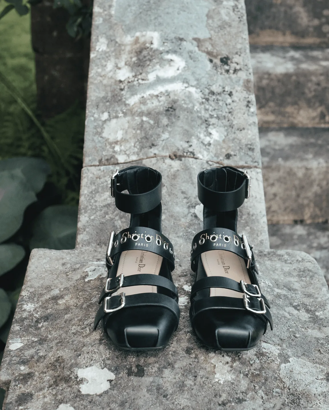 Dévoilés au sein de la collection Dior croisière 2025, les souliers "Dior Punk" se parent d’une superposition de boucles irrésistiblement rebelles, empruntées au vestiaire punk. Confectionnées en cuir souple, ces ballerines sublimées d’un noir intense se déclinent également dans une version en tissu technique beige, dotée d’une bride supplémentaire enlaçant délicatement la cheville. Conjuguant confort et audace, ces créations offrent une allure affirmée, résolument mode, et se ponctuent de finitions raffinées, à l’instar d’œillets argentés – à travers lesquels se lit la signature "Christian Dior Paris" délicatement embossée en doré. Un zip arrière, orné des initiales "CD" parachève ce symbole de liberté infiniment Dior, promesse d’un style unique.