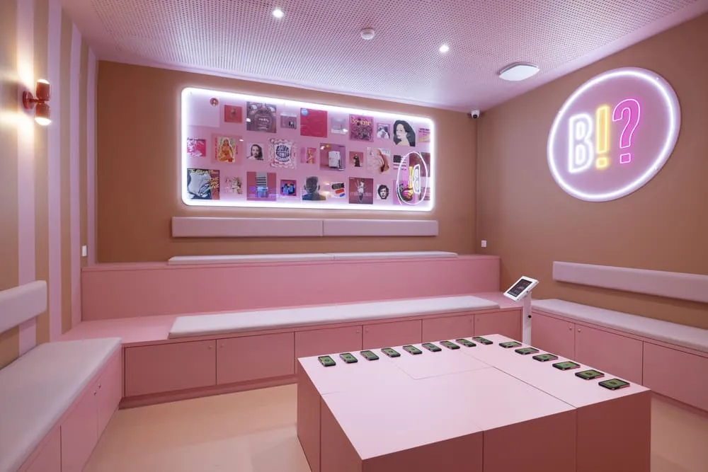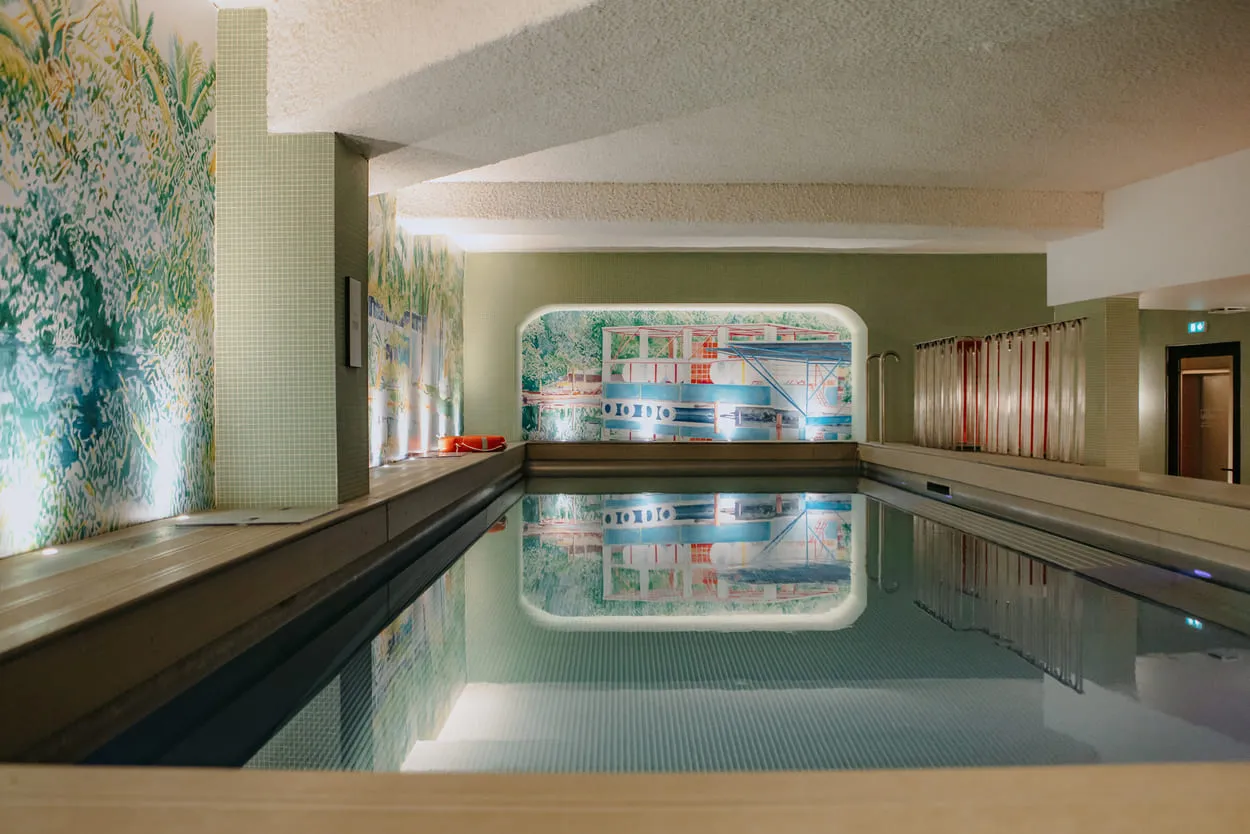 Au sous-sol, deux univers cohabitent. D'un côté, la Drawing Hall accueille des expositions temporaires. En 2024, Philippe Baudelocque y a déployé Un pas de côté vers le centre, une œuvre in situ où des lignes blanches tracent des constellations sur les murs noirs – paréidolies fascinantes qui invitent à la rêverie. De l'autre, l'espace bien-être promet une évasion totale. Marion Charlet a transformé la piscine en destination lointaine avec Pampa, une aquarelle de 25 mètres qui mêle nature flamboyante et architectures exotiques. En quelques brasses, on quitte Paris pour des contrées inconnues, bercé par les couleurs éclatantes nées des voyages de l'artiste. Et pour les amateurs de musique, trois salles ThisisBlindTest offrent une expérience ludique inédite : reconnaissance vocale, plus de 6 000 titres, et une ambiance de compétition survoltée. L'art de la fête réinventé.