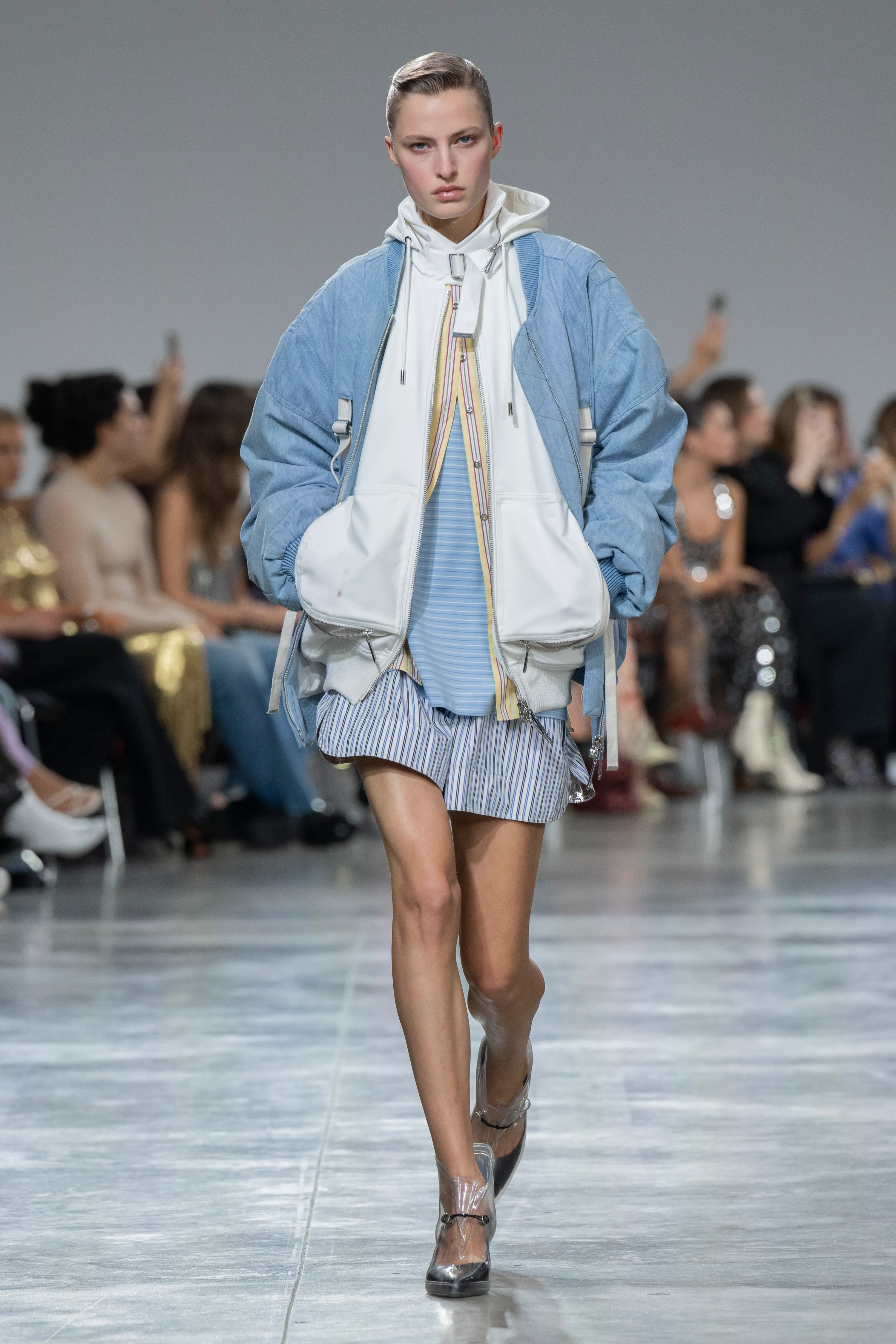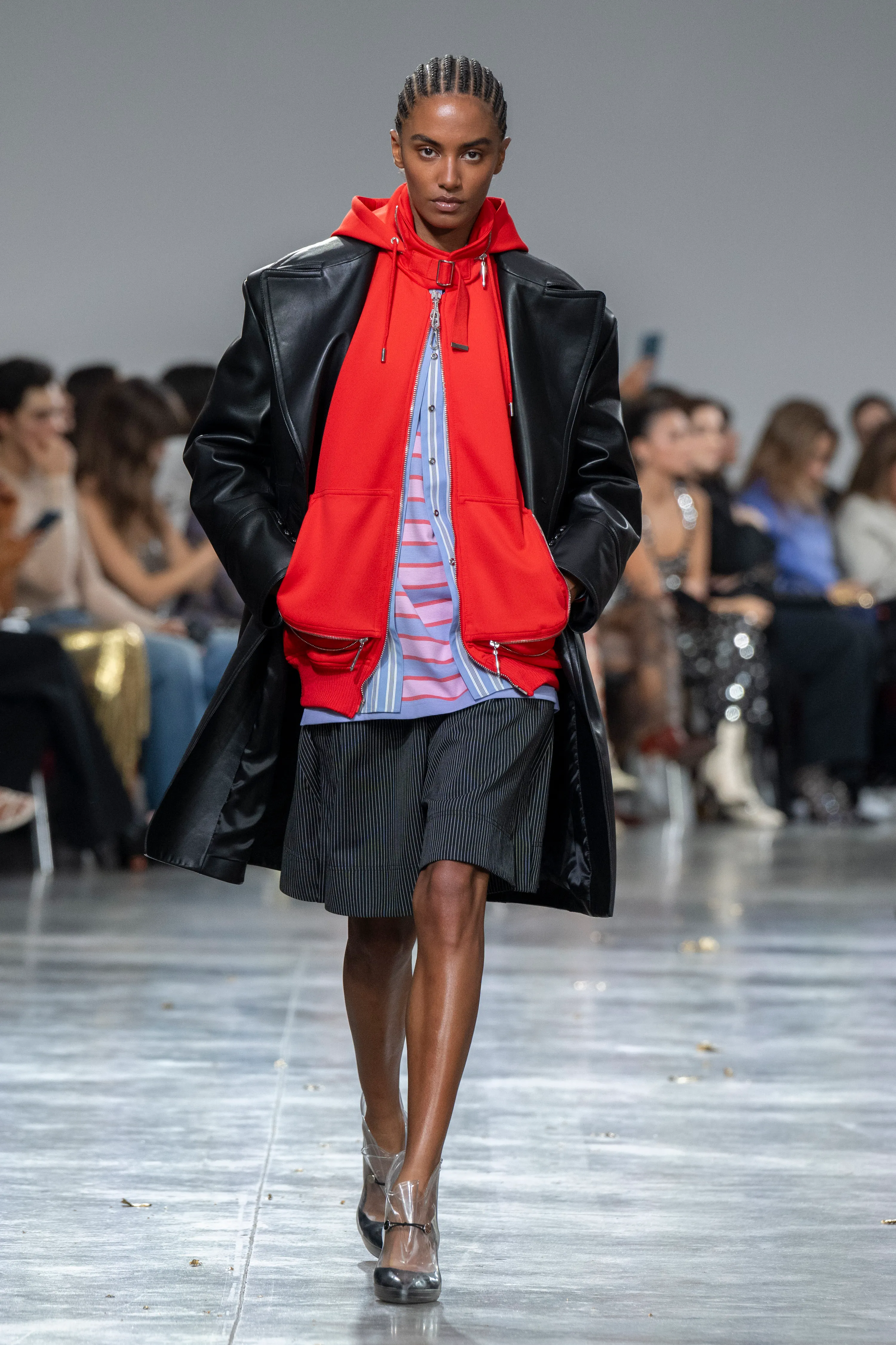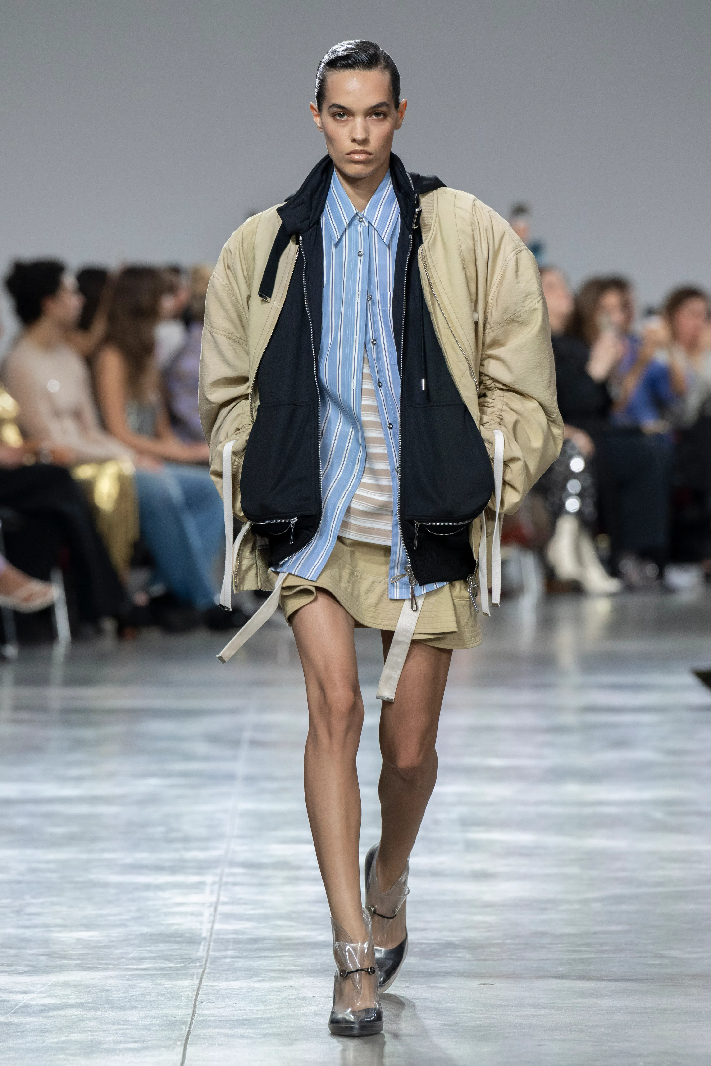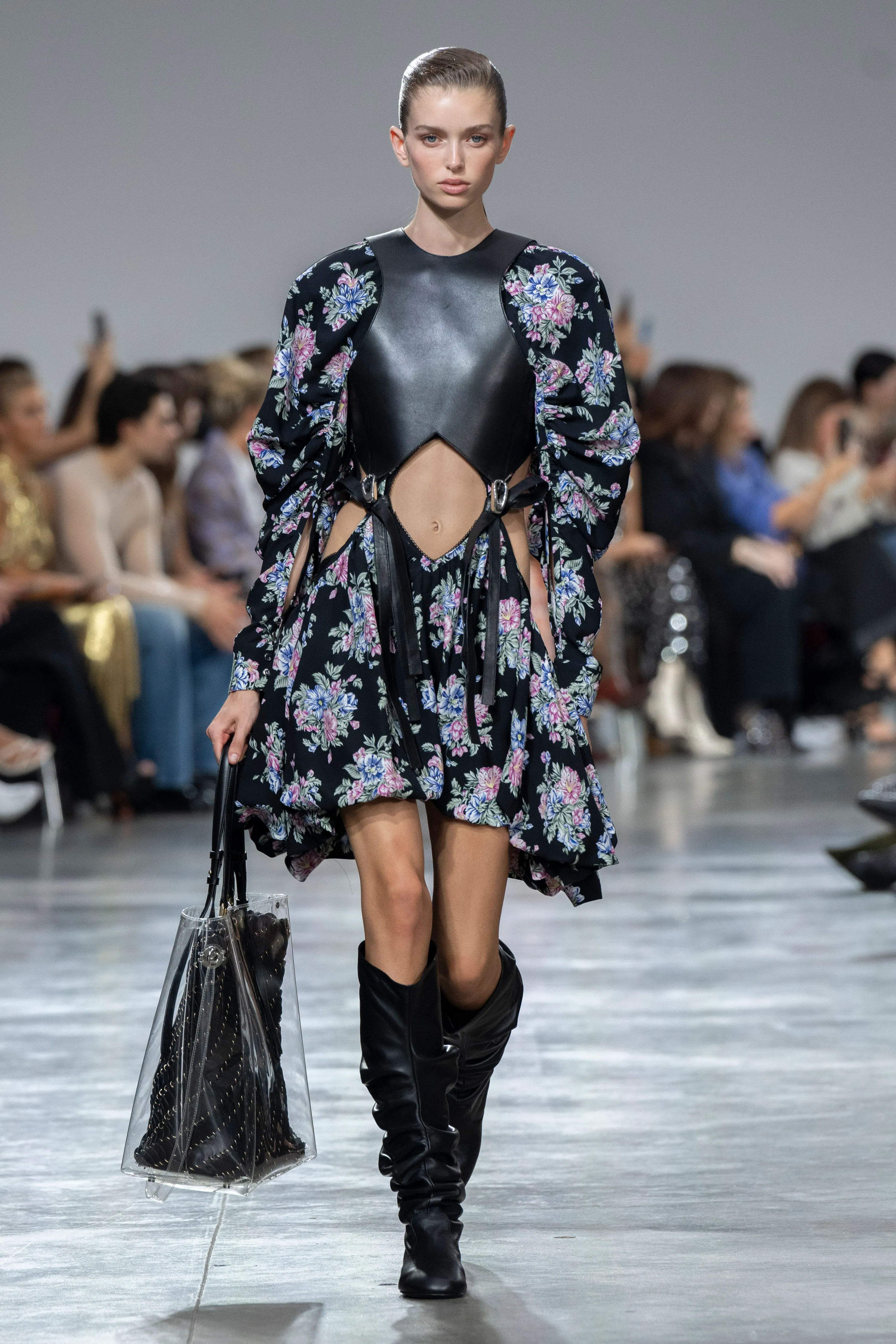 La radicalité est relative. La radicalité n’est pas toujours révolutionnaire, ni instantanée, ni même évidente. Mais la radicalité est ce qui motivera toujours rabanne à travers les matériaux, l'artisanat et le style. La collection printemps-été 2025 continue de pousser la dualité du quotidien et de l'exquis. Julien Dossena commence par des looks courts et superposés qui attirent le regard. Des mailles torsadées givrées, des dentelles guipure métallisées et des jacquards argentés qui simultanément suggèrent l’aspect industriel du packaging et le lustre du futur. L'influence parisienne qui transforme les standards preppy – hauts de rugby, cravates repp et caleçons rayés – en des coupe-vent doublés d'argent, des jupes utilitaires à boucles et des hauts en popeline de papier qui s'ouvrent dans le dos. Au milieu de ces pièces spéciales, la simplicité du vêtement quotidien : un blouson en chambray lavé, un caban en cuir ou des blazers pour hommes dotés d'une taille à cordon. Une ample veste noire aux revers de sequins réfléchissants apparaît comme une boîte ouverte, révélant une couche de tablier semblable à une armure cloutée et un kilt porté sur une chemise blanche impeccable. Du contenu au libéré, la lingerie et les robes tablier effleurent et embellissent le corps au milieu de fabrications de plus en plus somptueuses qui donnent naissance à des silhouettes assemblées à partir de panneaux géométriques minutieusement brodés entre chaîne délicate et diaphane mousseline. Avec cette collection, rabanne dévoilera les Editions Artisan. Fidèle à la poursuite de l'expérimentation matérielle, les disques métalliques issus des tabliers de boucher ont été minutieusement réinventé à travers trois collaborations exceptionnelles avec Arthus Bertrand en médailles, Astier de Villatte en céramique et Venini en verre soufflé. En appliquant des techniques de couture aux créations portables, Dossena joue avec les pièces qui définissent rabanne comme s'il s'agissait d'un puzzle sophistiqué, respectant la relativité et la radicalité avant tout, sur une bande son "So 2000" avec "Gourmandises", titre phare de la chanteuse Alizée.