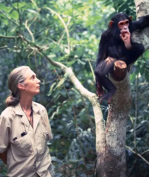 Jane Goodall révolutionne la science en lançant la plus longue étude jamais menée sur les chimpanzés sauvages dans le parc national de Gombe, en Tanzanie. Sans formation universitaire classique en biologie, mais armée d'une passion inébranlable, elle observe les primates avec une approche novatrice : patience, immersion, et respect. Elle découvre que les chimpanzés utilisent des outils — une révélation qui bouleverse les frontières entre l'humain et l'animal et redéfinit notre conception de l'intelligence. Ses recherches mettent également en lumière des comportements complexes : liens familiaux profonds, chasse organisée, gestes altruistes, et même des formes de guerre primitive. Ces observations ont influencé non seulement l'éthologie, mais aussi la psychologie, l'écologie et la médecine.
