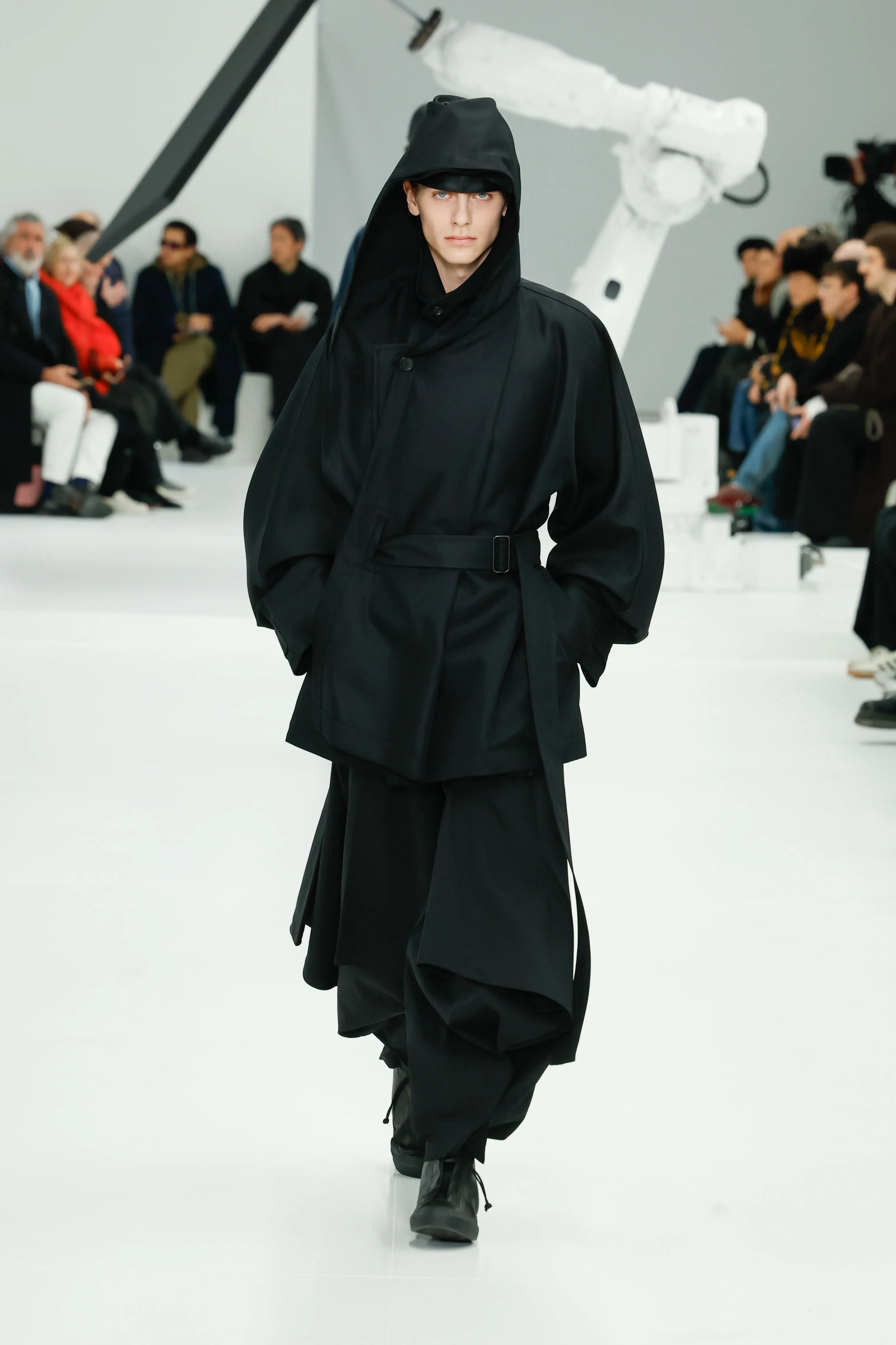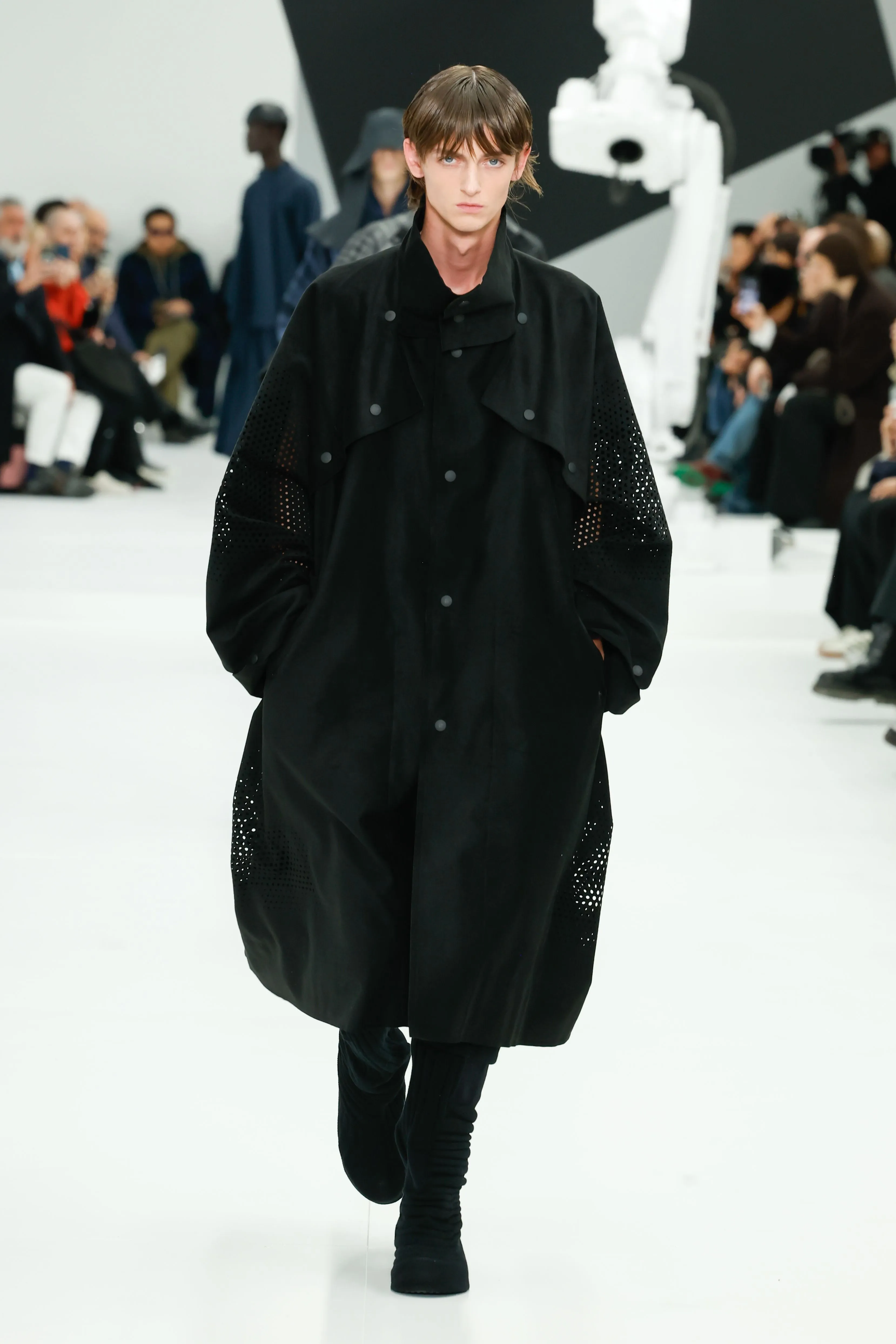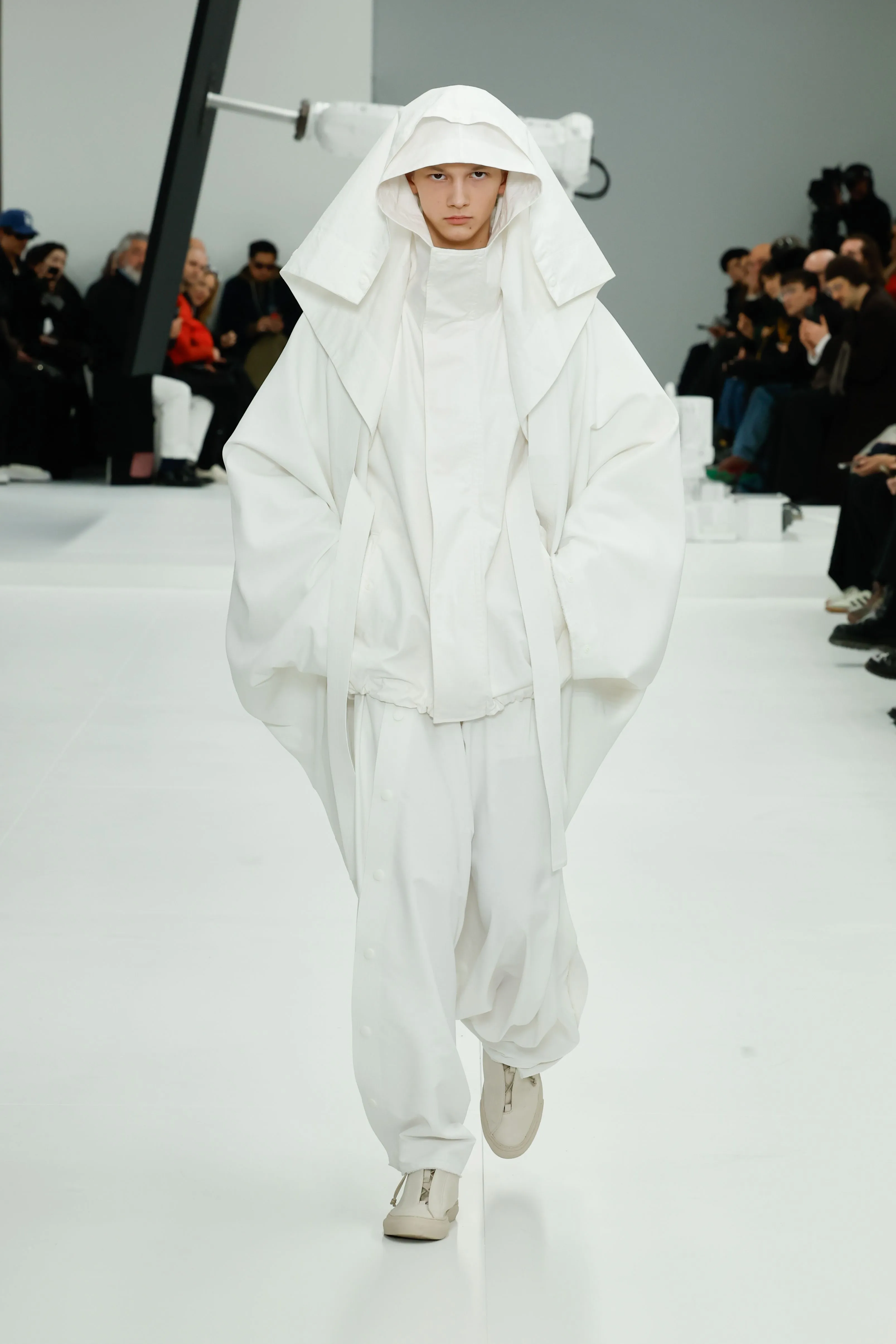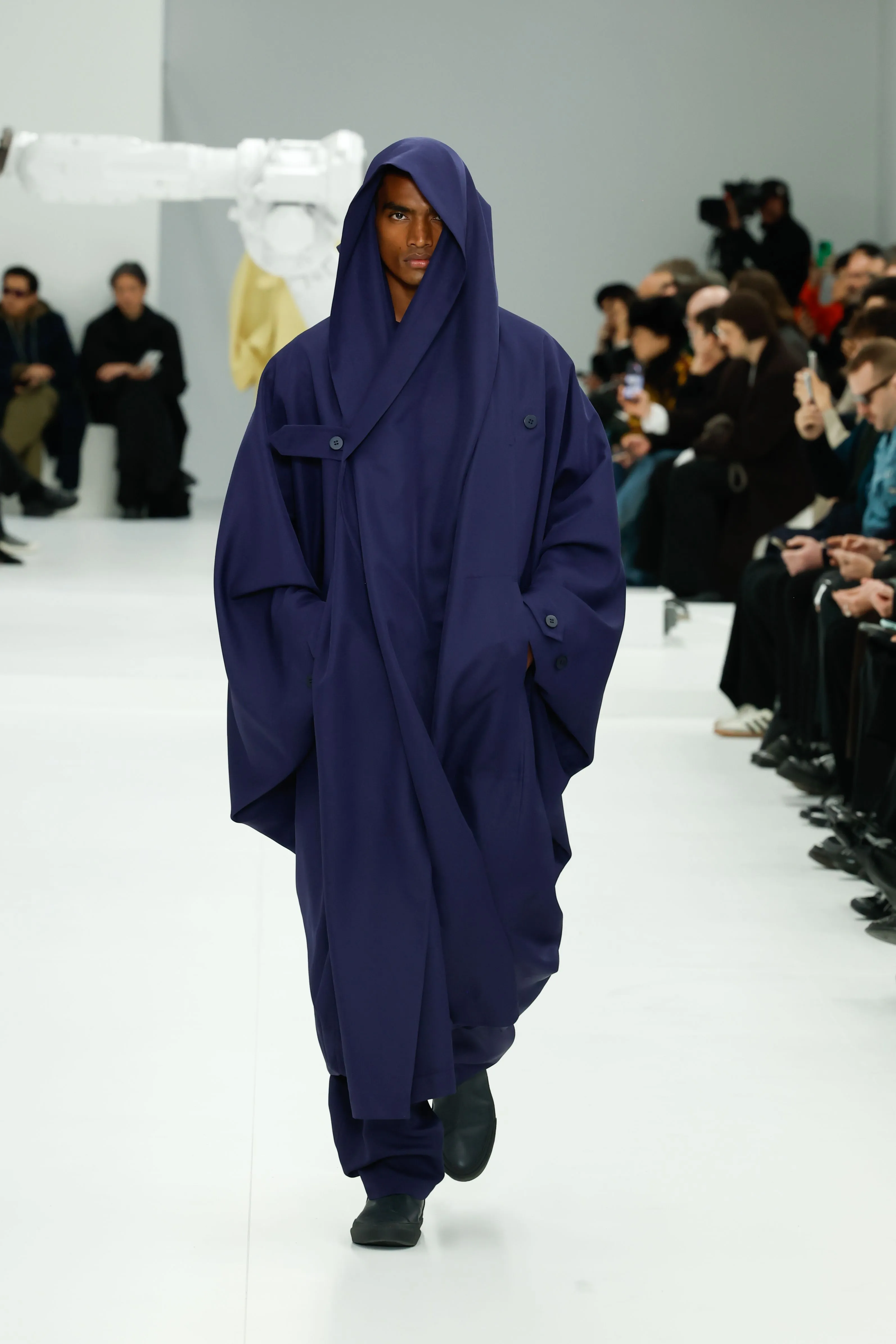 Présentée ce jeudi au Réfectoire des Cordeliers, un ancien couvent construit au début du XVIe siècle à Paris, la collection Issey Miyake automne-hiver 2025-2026 est intitulée "FLY WITH IM MEN". Lancée en 2021, cette ligne explore des approches innovantes dans la conception de vêtements en harmonie avec le corps humain, en s'inspirant du concept d'Issey Miyake a piece of cloth. L’équipe de design s’attache à redéfinir l’essence même du vêtement, en s’intéressant à la fois à sa forme et à sa structure, dans une démarche alliant design et ingénierie. Avec cette collection présentée pour la toute première fois à Paris, l’intention d’"IM MEN" est de proposer des produits qui franchissent toutes les frontières et offrent de nouvelles perspectives à un large public à travers des idées affranchies de toutes contraintes. L’installation, conçue par Tokujin Yoshioka, s’inspire du concept a piece of cloth. Une pièce de tissu, présente au cœur de l’espace commence à se mouvoir comme si elle prenait vie. Cette présentation illustre une ère où le dialogue entre artisanat traditionnel et technologie moderne prend tout son sens.