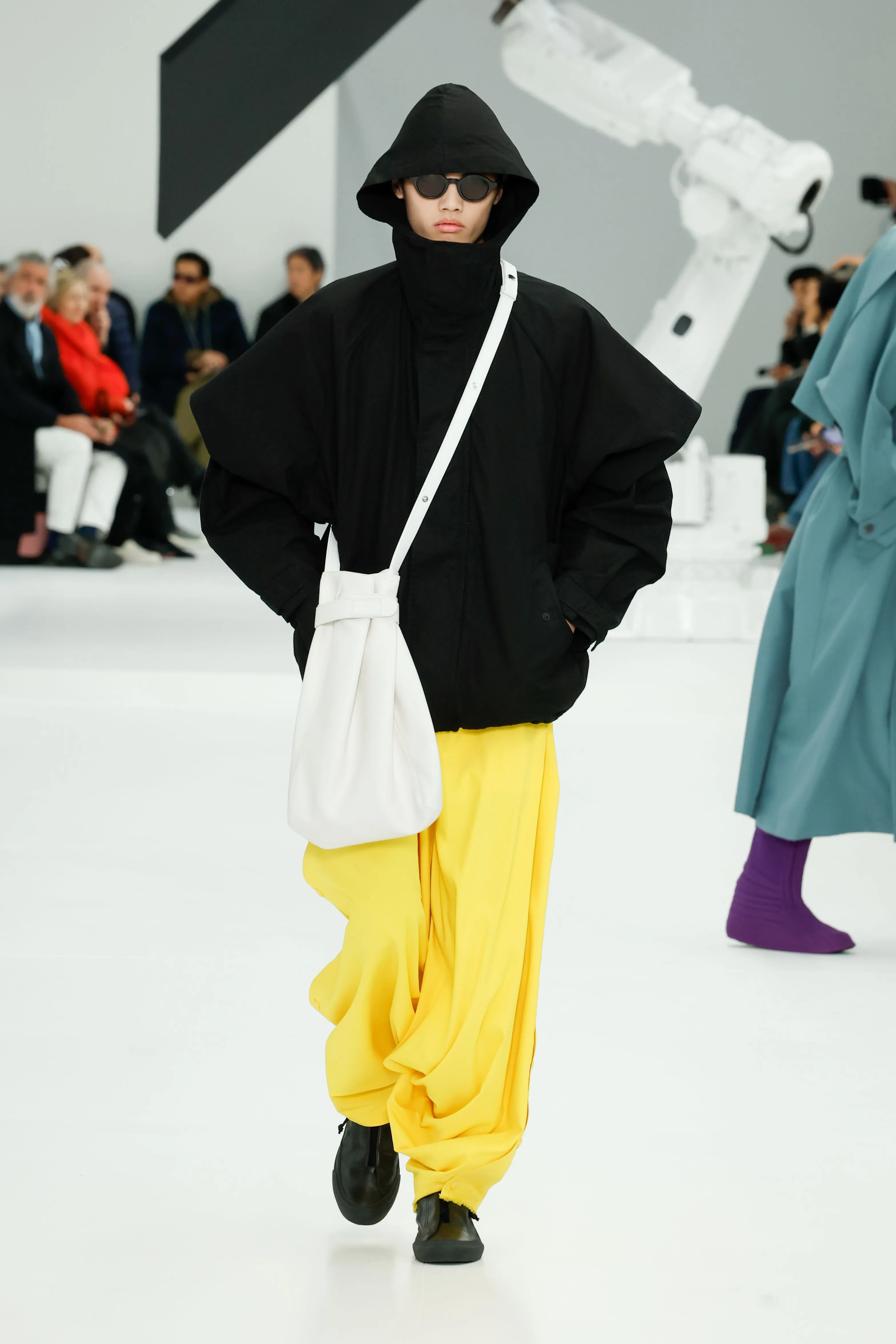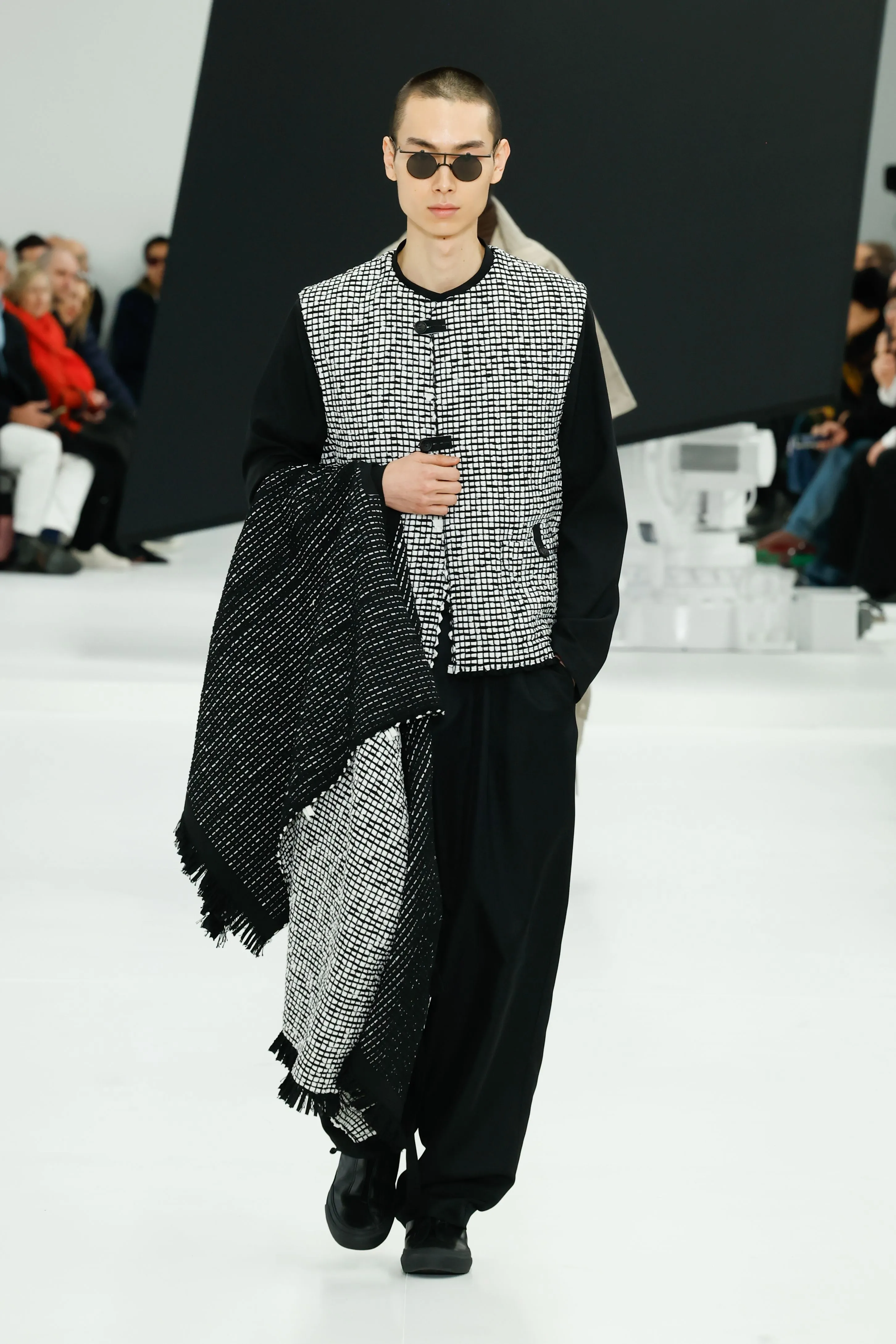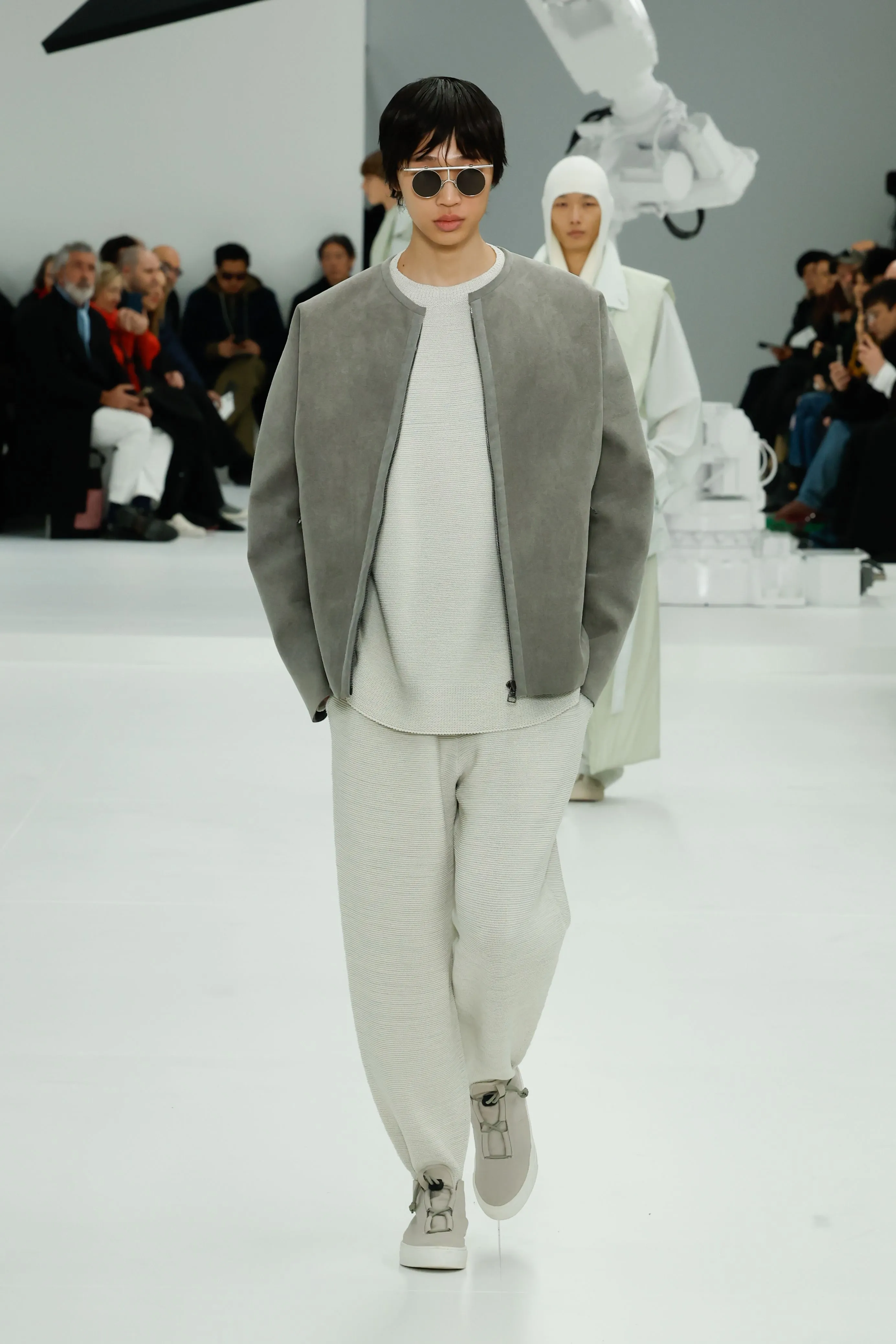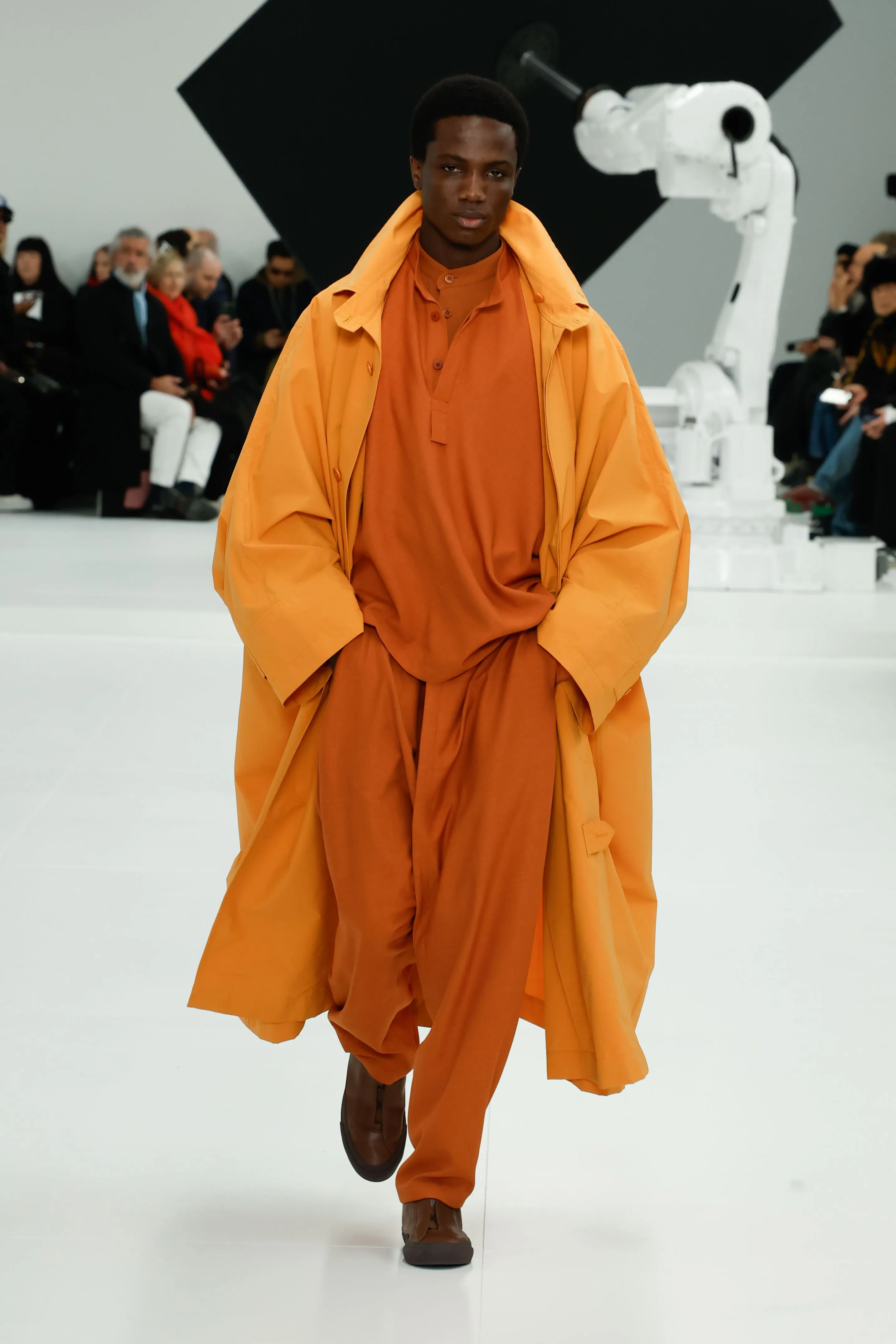 Présentée ce jeudi au Réfectoire des Cordeliers, un ancien couvent construit au début du XVIe siècle à Paris, la collection Issey Miyake automne-hiver 2025-2026 est intitulée "FLY WITH IM MEN". Lancée en 2021, cette ligne explore des approches innovantes dans la conception de vêtements en harmonie avec le corps humain, en s'inspirant du concept d'Issey Miyake a piece of cloth. L’équipe de design s’attache à redéfinir l’essence même du vêtement, en s’intéressant à la fois à sa forme et à sa structure, dans une démarche alliant design et ingénierie. Avec cette collection présentée pour la toute première fois à Paris, l’intention d’"IM MEN" est de proposer des produits qui franchissent toutes les frontières et offrent de nouvelles perspectives à un large public à travers des idées affranchies de toutes contraintes. L’installation, conçue par Tokujin Yoshioka, s’inspire du concept a piece of cloth. Une pièce de tissu, présente au cœur de l’espace commence à se mouvoir comme si elle prenait vie. Cette présentation illustre une ère où le dialogue entre artisanat traditionnel et technologie moderne prend tout son sens.