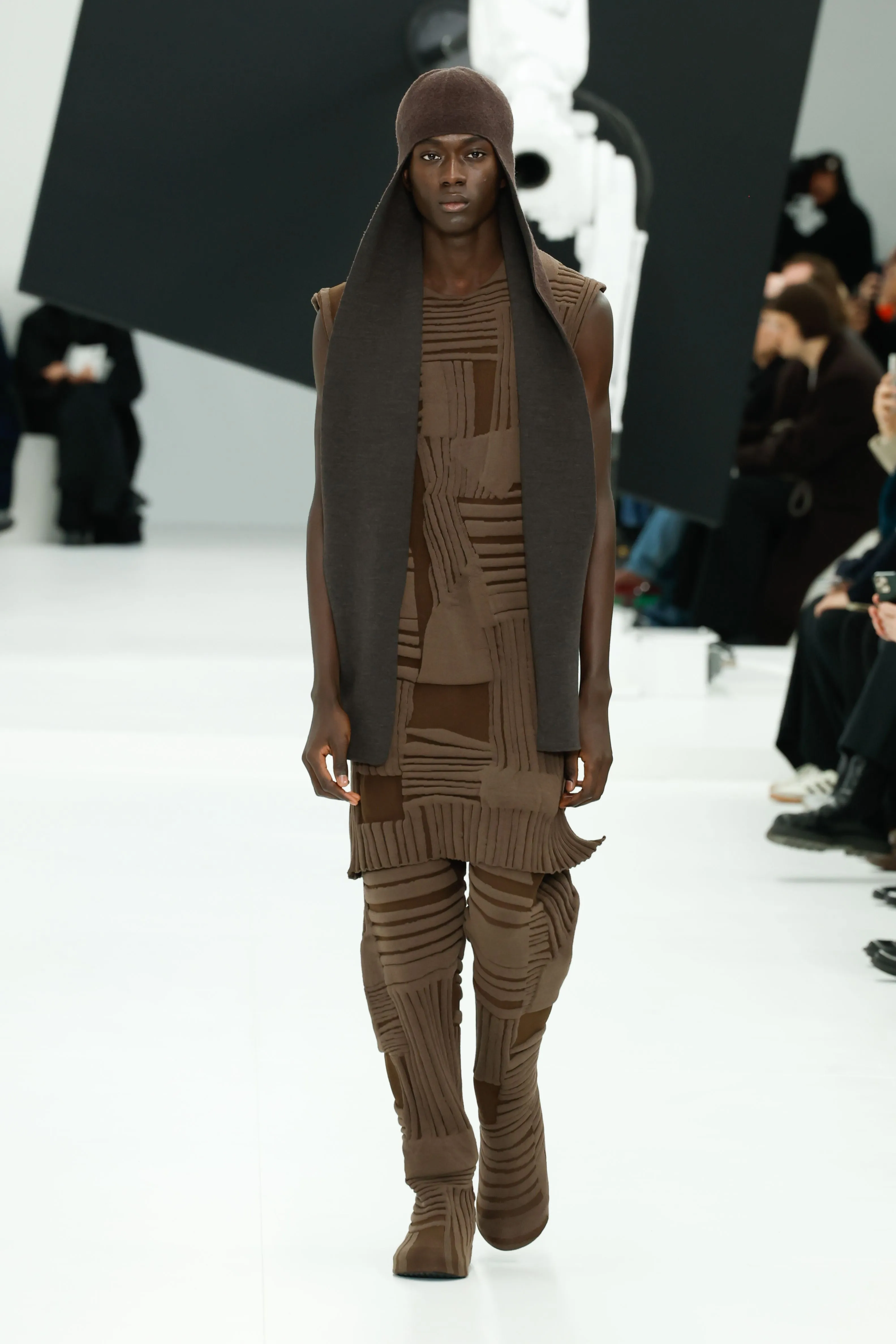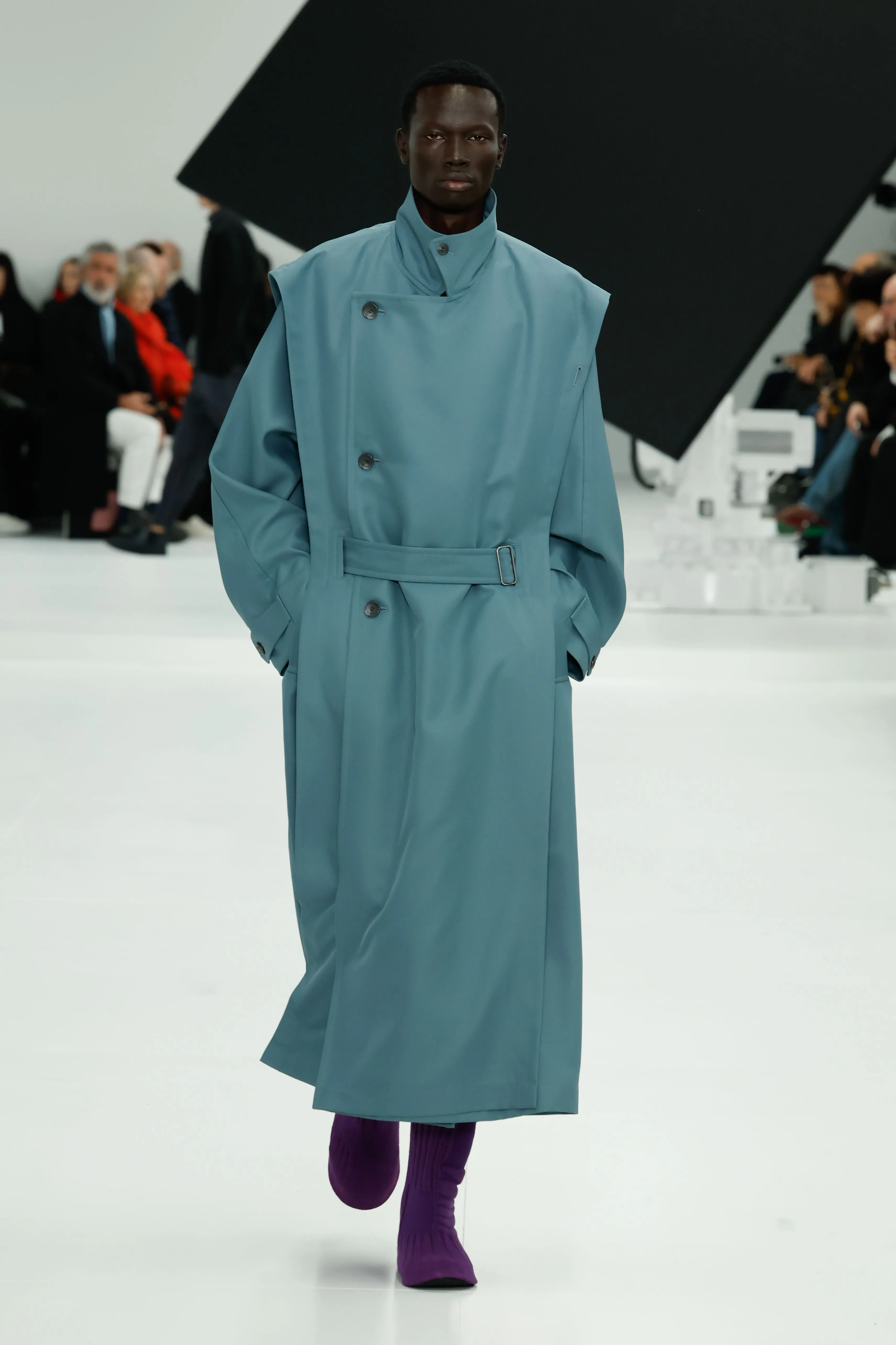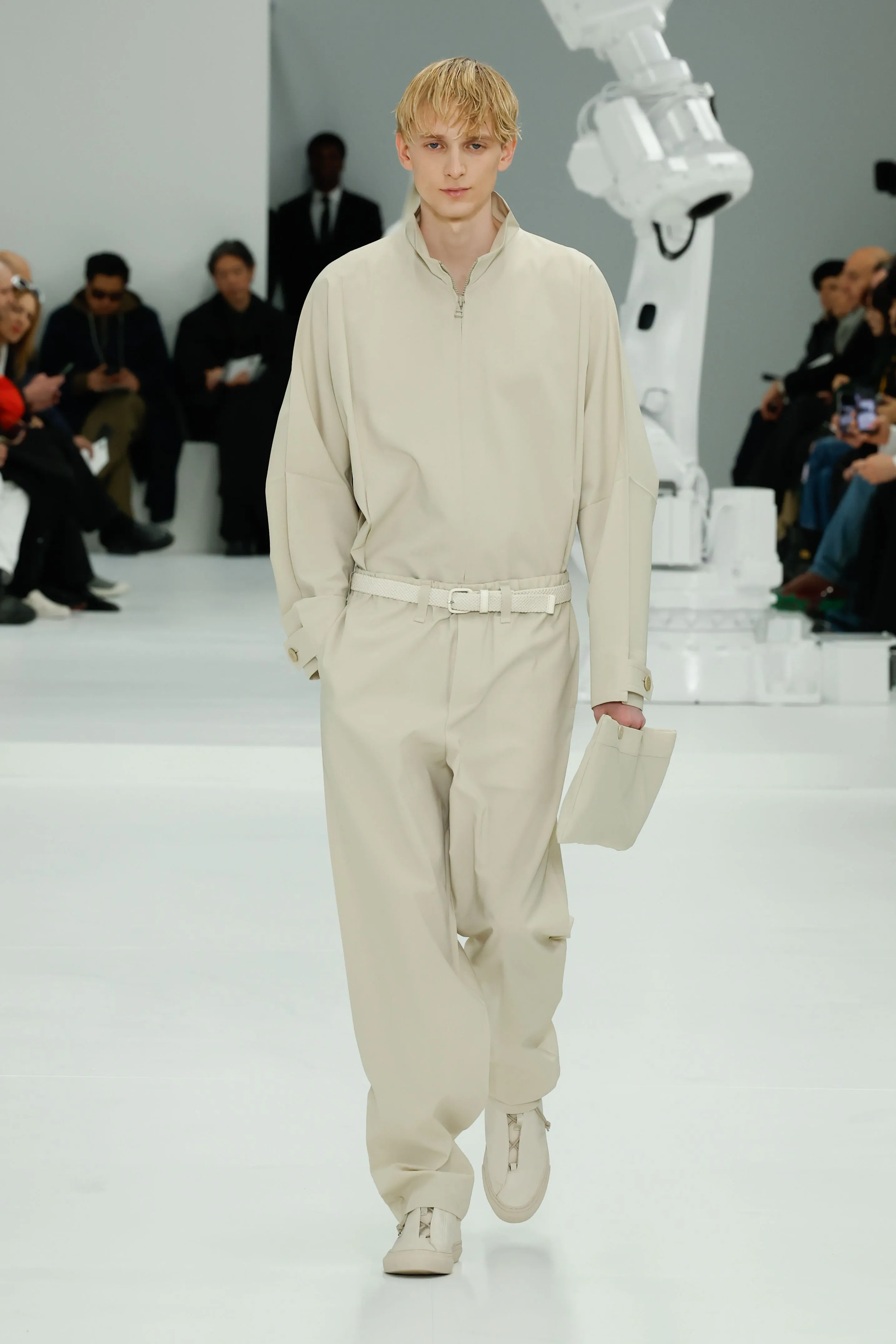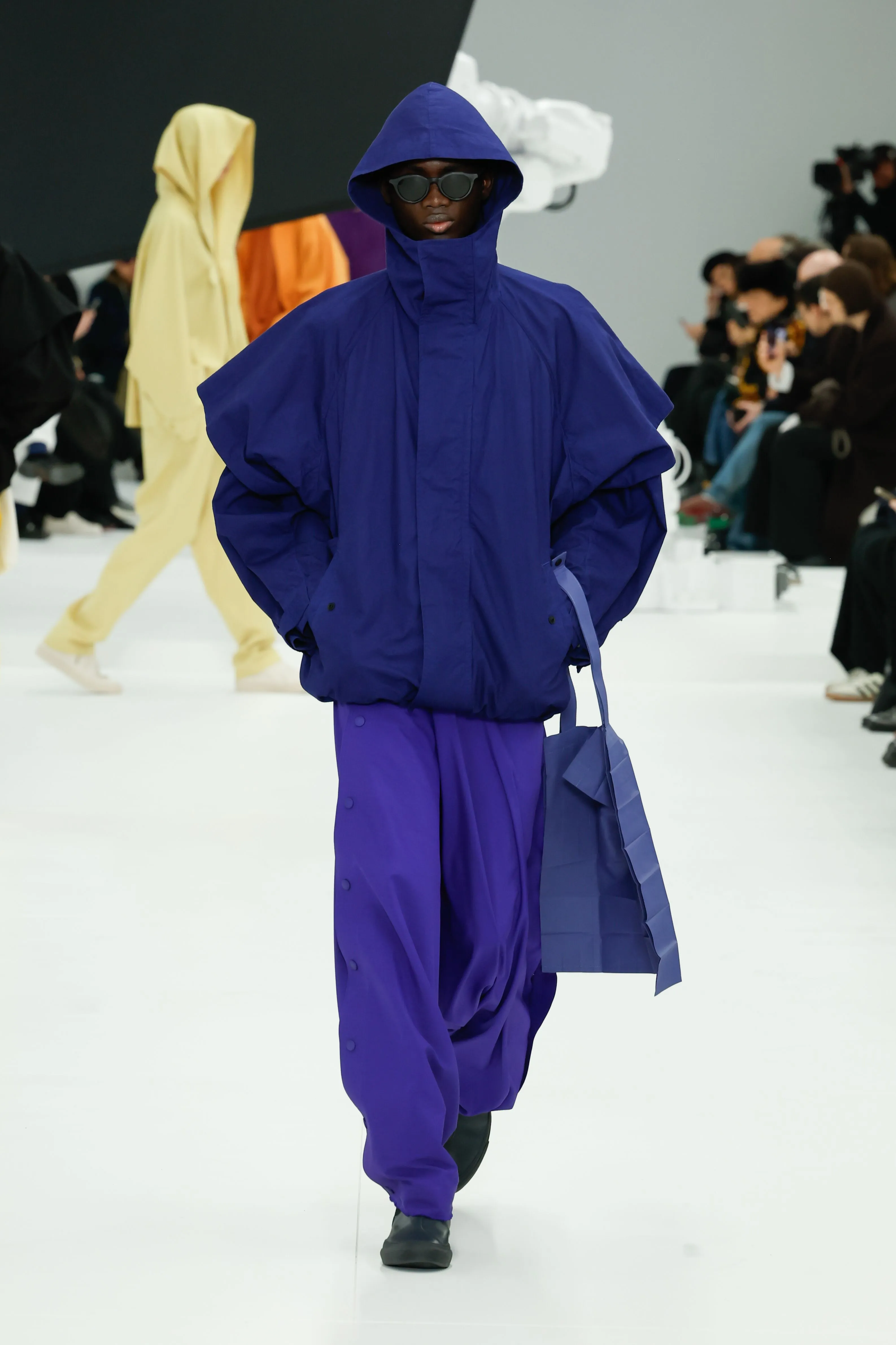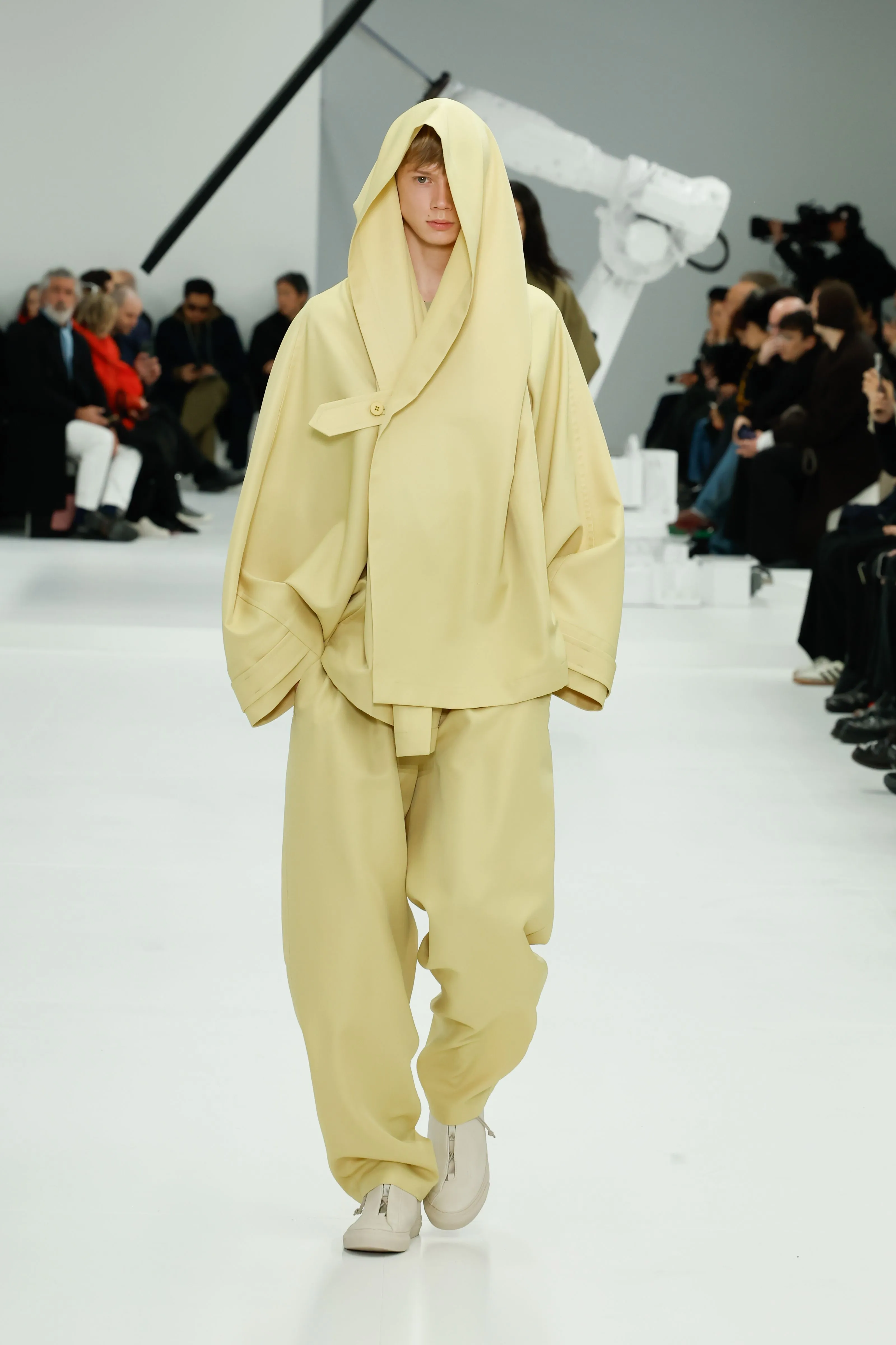 Présentée ce jeudi au Réfectoire des Cordeliers, un ancien couvent construit au début du XVIe siècle à Paris, la collection Issey Miyake automne-hiver 2025-2026 est intitulée "FLY WITH IM MEN". Lancée en 2021, cette ligne explore des approches innovantes dans la conception de vêtements en harmonie avec le corps humain, en s'inspirant du concept d'Issey Miyake a piece of cloth. L’équipe de design s’attache à redéfinir l’essence même du vêtement, en s’intéressant à la fois à sa forme et à sa structure, dans une démarche alliant design et ingénierie. Avec cette collection présentée pour la toute première fois à Paris, l’intention d’"IM MEN" est de proposer des produits qui franchissent toutes les frontières et offrent de nouvelles perspectives à un large public à travers des idées affranchies de toutes contraintes. L’installation, conçue par Tokujin Yoshioka, s’inspire du concept a piece of cloth. Une pièce de tissu, présente au cœur de l’espace commence à se mouvoir comme si elle prenait vie. Cette présentation illustre une ère où le dialogue entre artisanat traditionnel et technologie moderne prend tout son sens.