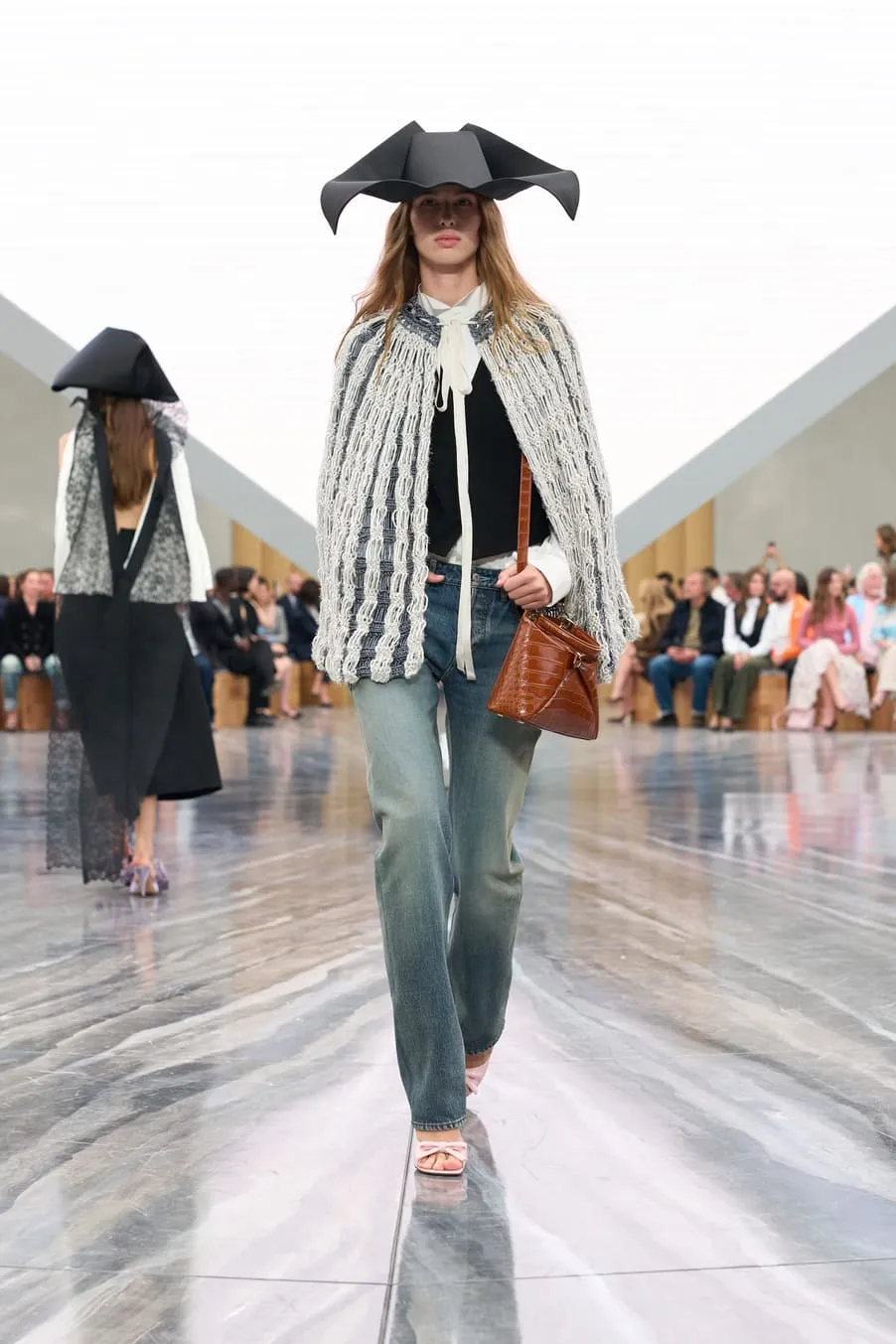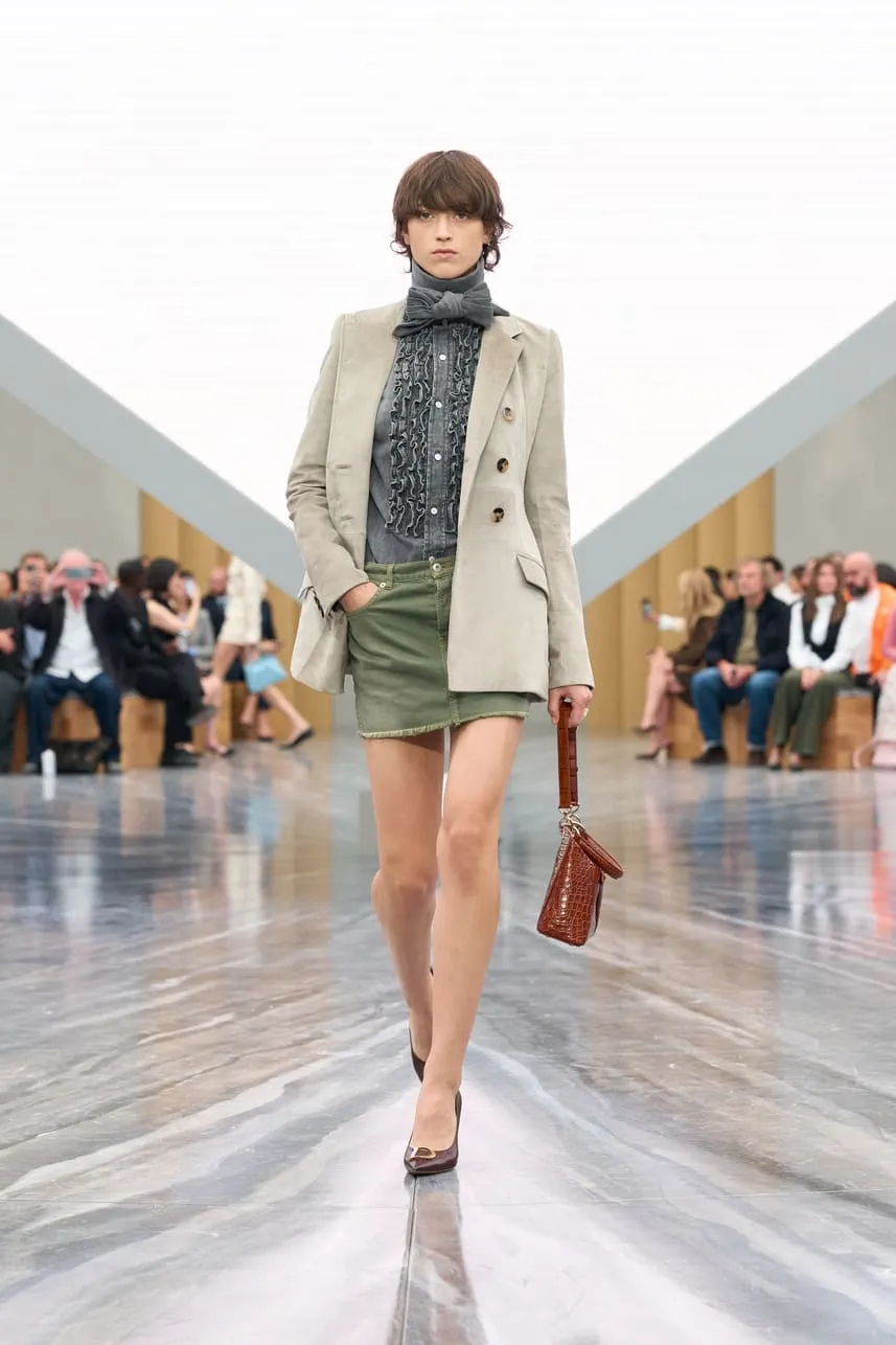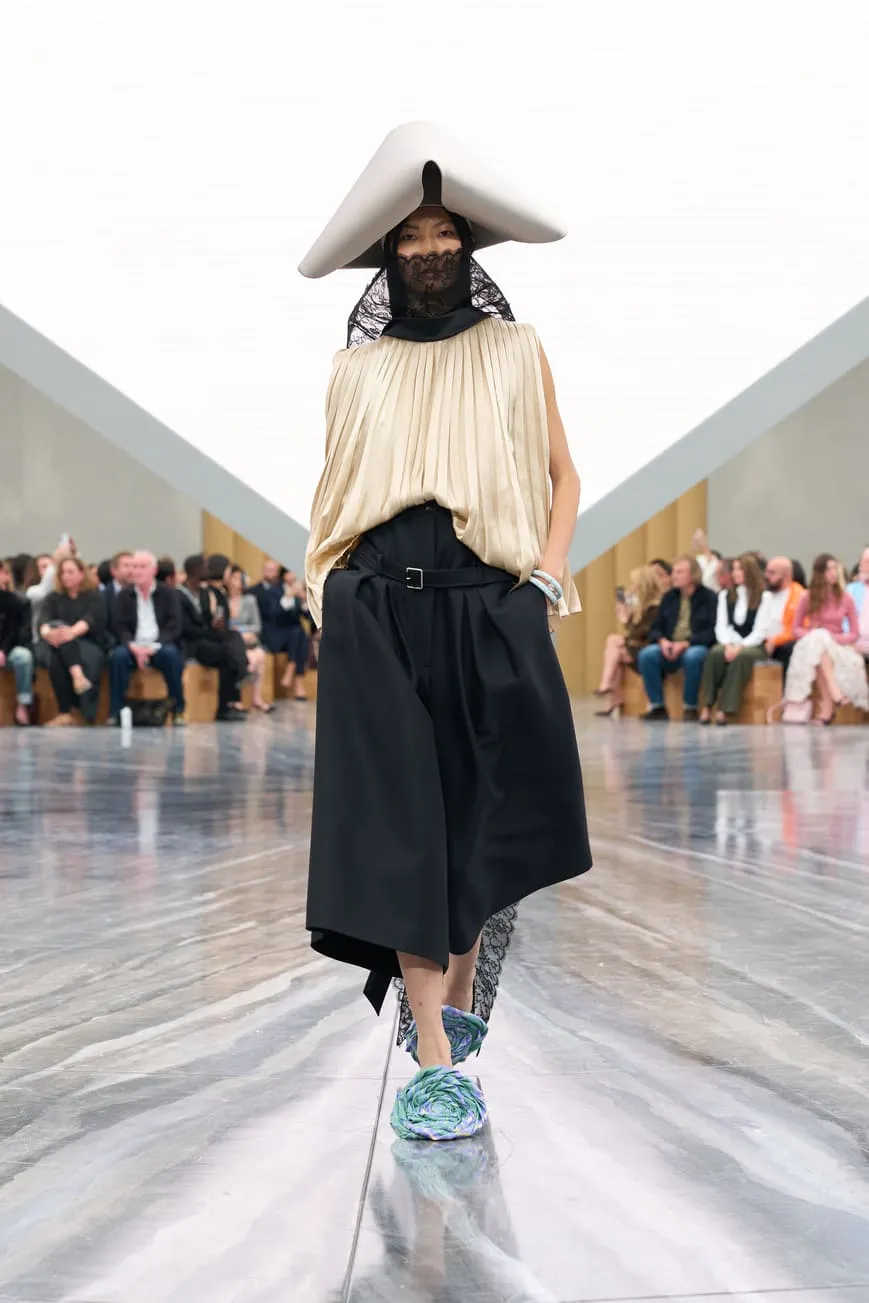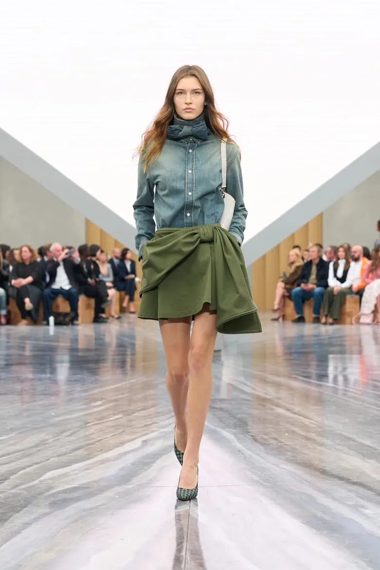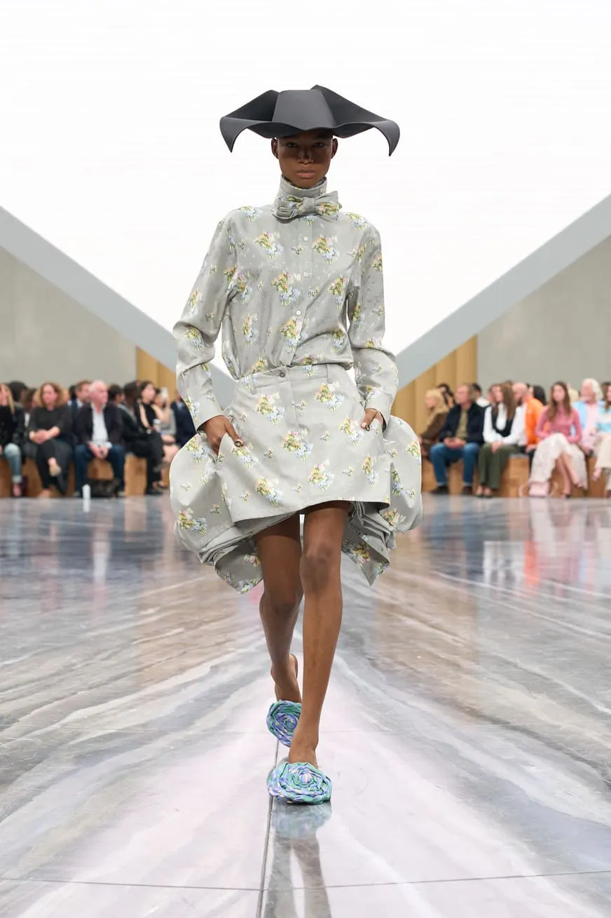 Dévoilée hier au Jardin des Tuileries à Paris, la collection Dior de Jonathan Anderson explore le langage de la Maison à travers une relecture empathique de son héritage. Le directeur artistique a nourri sa vision d’éléments d’Archives interprétés avec inventivité. Les nœuds - un code intemporel - ont été déclinés sous de multiples formes : des manteaux à pinces sur le devant et des minijupes drapées en coton drill aux robes en dentelle aérienne et aux sacs à main - à anse unique - Dior Cigale. Les vestes Bar rétrécies adoptent des volumes sculpturaux, tandis que les longues capes ondulantes et les shorts volumineux nouent un lien avec les débuts de Jonathan Anderson chez Dior, en juin dernier. Le résultat, d'une tension captivante, offre une multitude d'attitudes et d'expressions de soi. L'espace épuré du défilé, conçu par Luca Guadagnino et Stefano Baisi, a fusionné le numérique et le physique. Racontée à travers les images d'une œuvre spécialement commandée au documentariste Adam Curtis, l'histoire de la Maison défilait devant les yeux des invités sur une pyramide en LED inversée, avant de s'évanouir comme par magie dans une boîte à chaussures Dior. Elle symbolise un passé conservé qui peut être revisité comme des souvenirs.