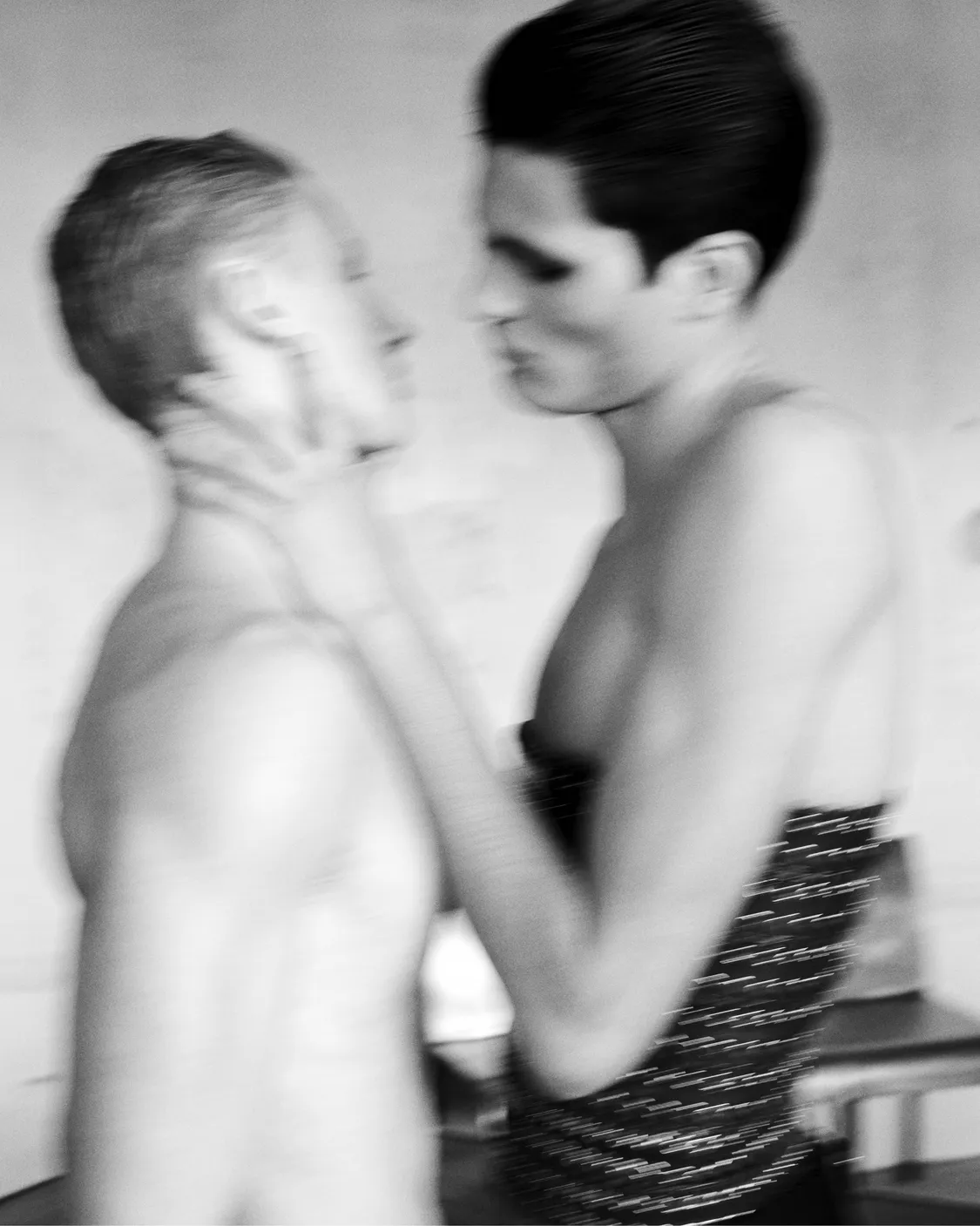 Fidèle à l'ADN de la maison, cette campagne poursuit le dialogue entamé avec la culture BDSM et son exploration sans compromis de la sexualité. Les images placent désir et fantasme en pleine lumière : deux hommes s'embrassent, une maîtresse tient sa cour, les frontières se brouillent dans l'expression de la sexualité et de la queerness. Pour l'automne-hiver 2025, Ludovic de Saint Sernin affirme avec force que ce qui est habituellement relégué dans l'ombre mérite tout autant d'être sous les projecteurs. Cette approche frontale de la sexualité et du genre s'inscrit dans une démarche artistique plus large, questionnant les normes sociales et vestimentaires établies.