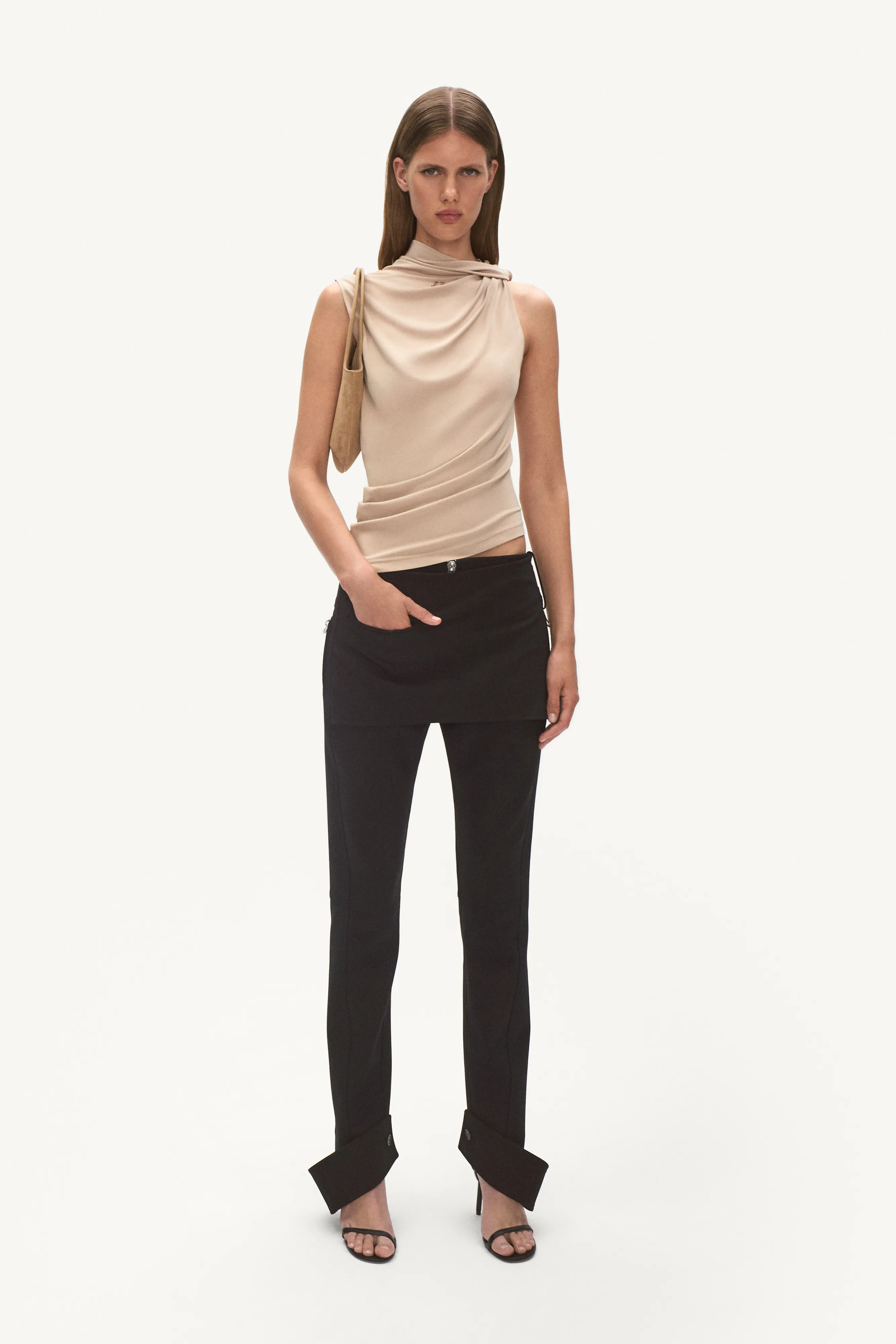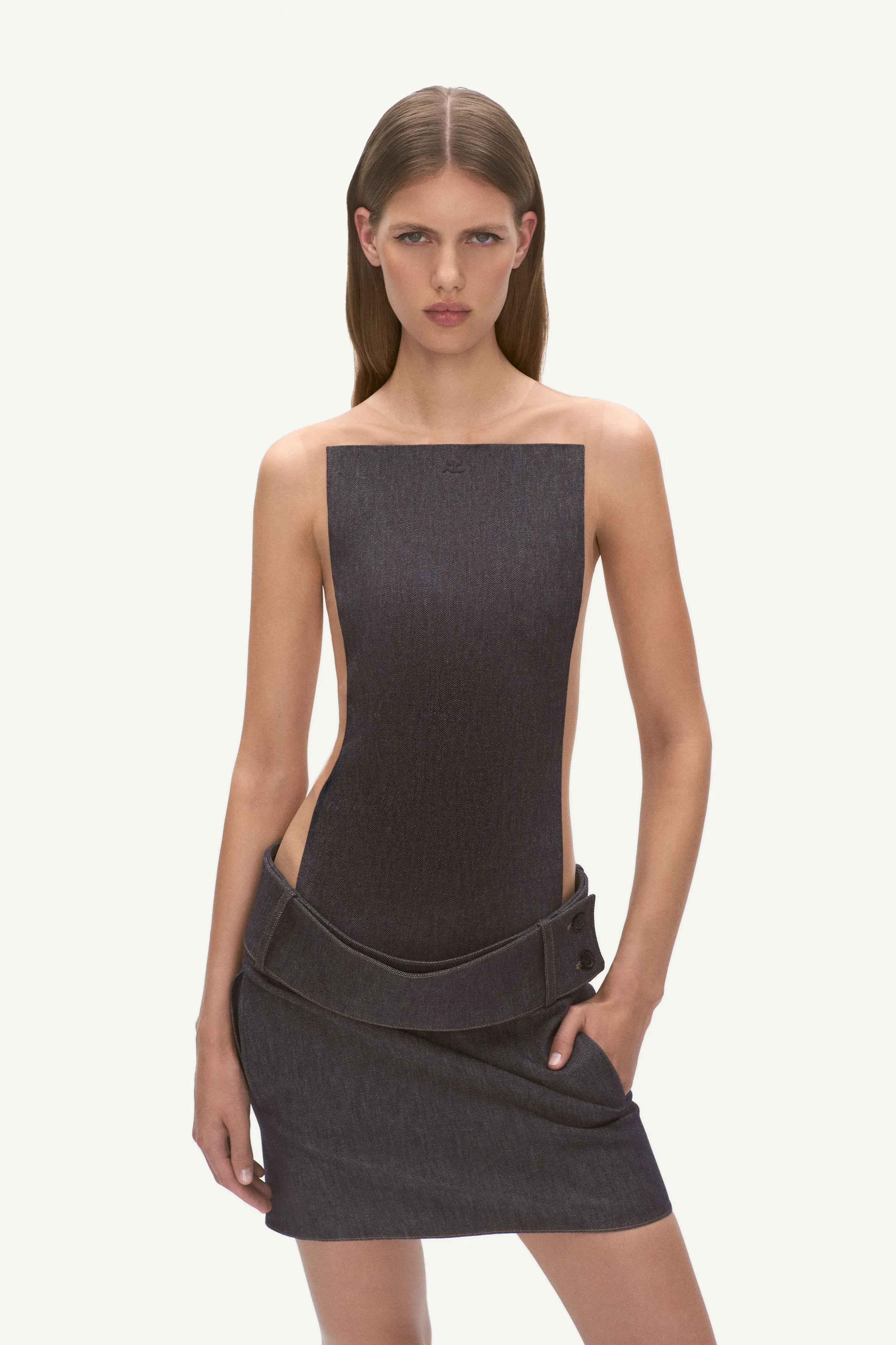 Elaborée autour de la citation de l’écrivain Albert Camus "In the depth of winter, I finally learned that within me there lay an invincible summer" (Au cœur de l’hiver, j’ai enfin appris qu’il y avait en moi un été invincible), la nouvelle collection Courrèges s’inspire de la saison hivernale. La pré-collection masculine et féminine, aux tonalités grises, rappelle la longueur de l’hiver et la perspective de l’été et du soleil derrière les nuages. Légèreté et volume sont les maîtres-mots de cette collection épurée aux matières légères telles que le satin, la toile de travail ou encore le denim indigo brut. Le nouvel accessoire phare de la collection, le sac "Friday Bowling" semblable à celui d’une baguette, reflète l’énergie de cette nouvelle garde-robe aux caractéristiques du dialecte estival. Poches inspirées des sports nautiques, boutonnières faisant écho à la construction de la collection SS70 d’André Courrèges, superpositions d’écharpes et de pantalons, ceintures et boucles de ceinture surdimensionnées ; les juxtapositions en tout genre y sont explorées et mises à l’honneur. Teintées d’une inspiration des années 70’s, les silhouettes à la dynamique pointue sont capturées par le légendaire photographe Mark Borthwick. A la fois poétique et imprévisible, l’imagerie de la collection reflète le renouvellement de la garde-robe Courrèges par Nicolas Di Felice.