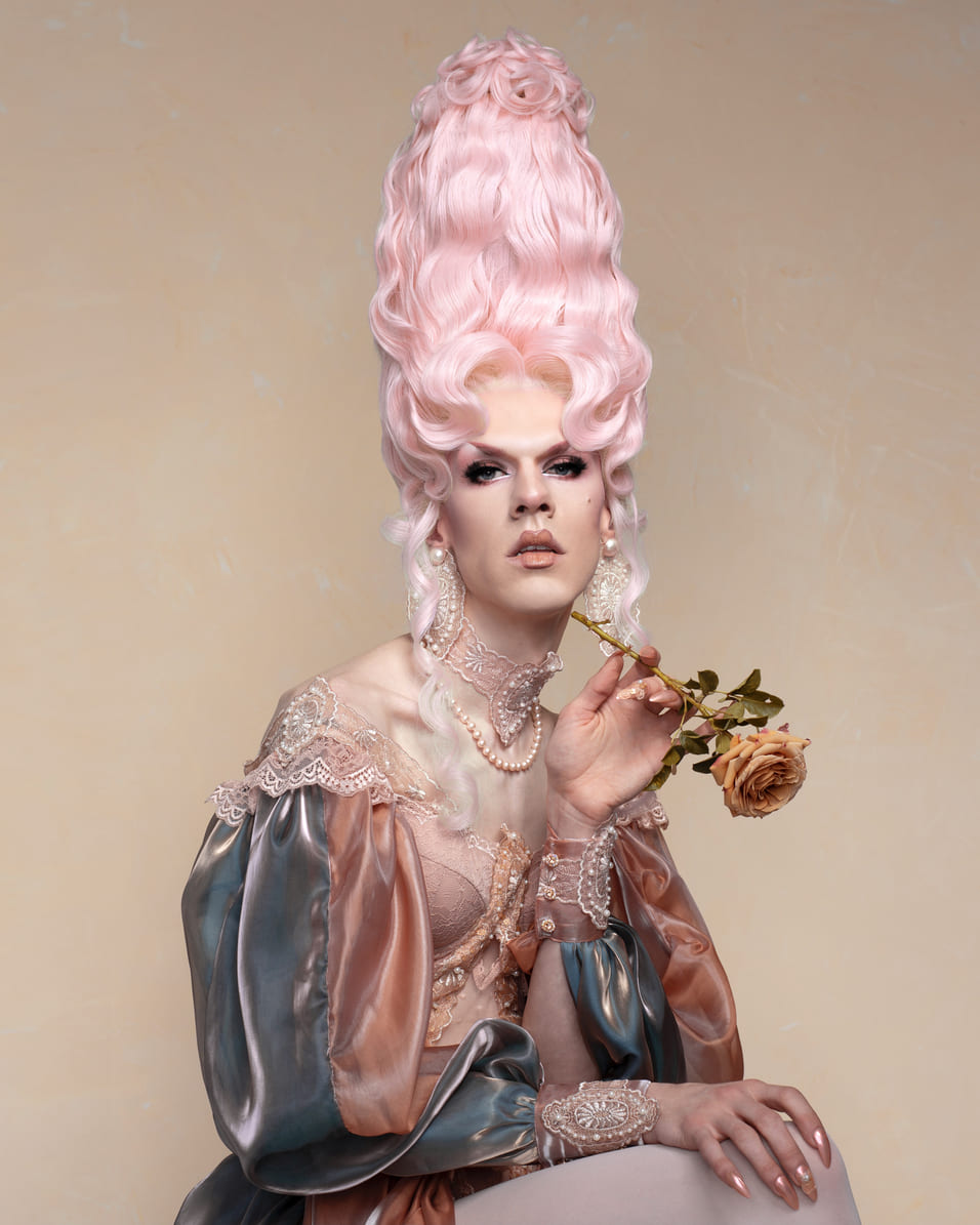 L’exposition débute tout naturellement sur le siècle lumière, qui, par ses innombrables inspirations, s’étend au style vestimentaire des femmes. Cet espace met en avant une première robe à la française, époustouflante tant par le textile que par sa présence. Les coiffures y sont également présentées, car elles faisaient partie intégrante de cet héritage. Les étoffes fleuries ou parsemées de rubans sont des motifs récurrents du XVIIIe siècle. Grâce à de nombreux peintres, ils donnent vie et alimentent cet imaginaire galant et raffiné, peuplé de figures féminines costumées. Une figure qui revient sans cesse et, bien évidemment, celle de Marie-Antoinette qui suscite encore admiration et fascination. Outre le corset marqué par son parcours et intriguant par sa petite taille, on y retrouve un soulier avec, inscrit à l’intérieur : "Soulier que portait la reine Marie-Antoinette le jour néfaste où elle monta à l’échafaud". Des éléments qui retracent finalement l’histoire de la France à travers le vêtement.