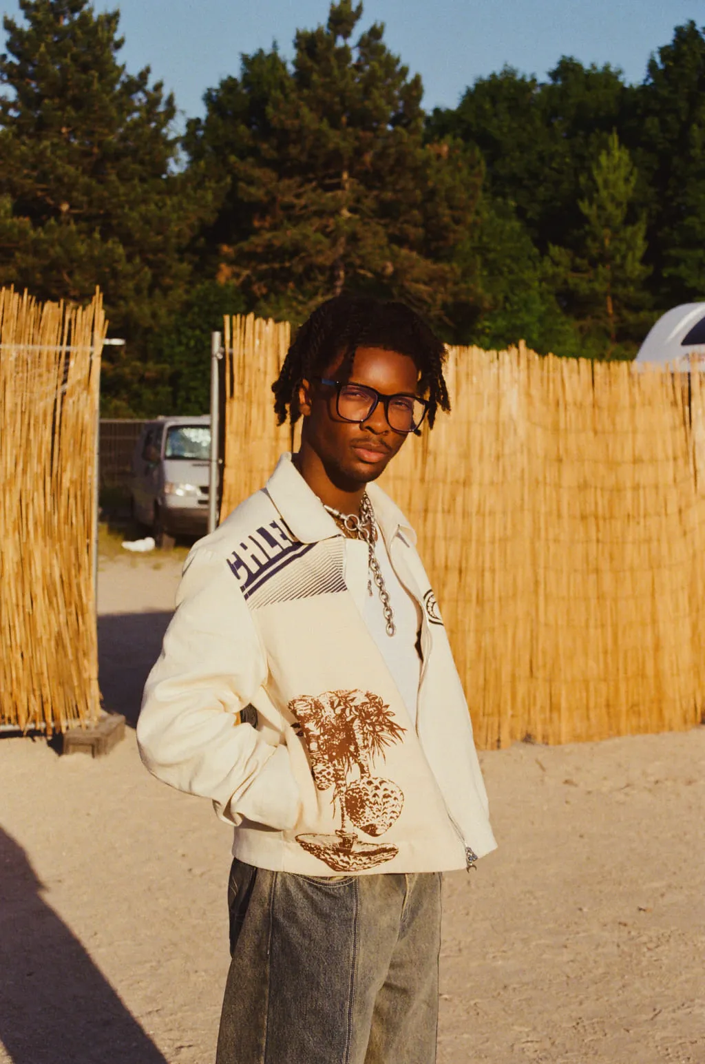 The interview takes place near d4vd’s dressing room in the artists' village, before his performance on the festival stage. Rather chill, d4vd calmly answers questions before agreeing to a quick photo session around the artists' area. He talks about his passion for the video game Fortnite, the success of his music through social media and his inspirations for creating striking visual stories.