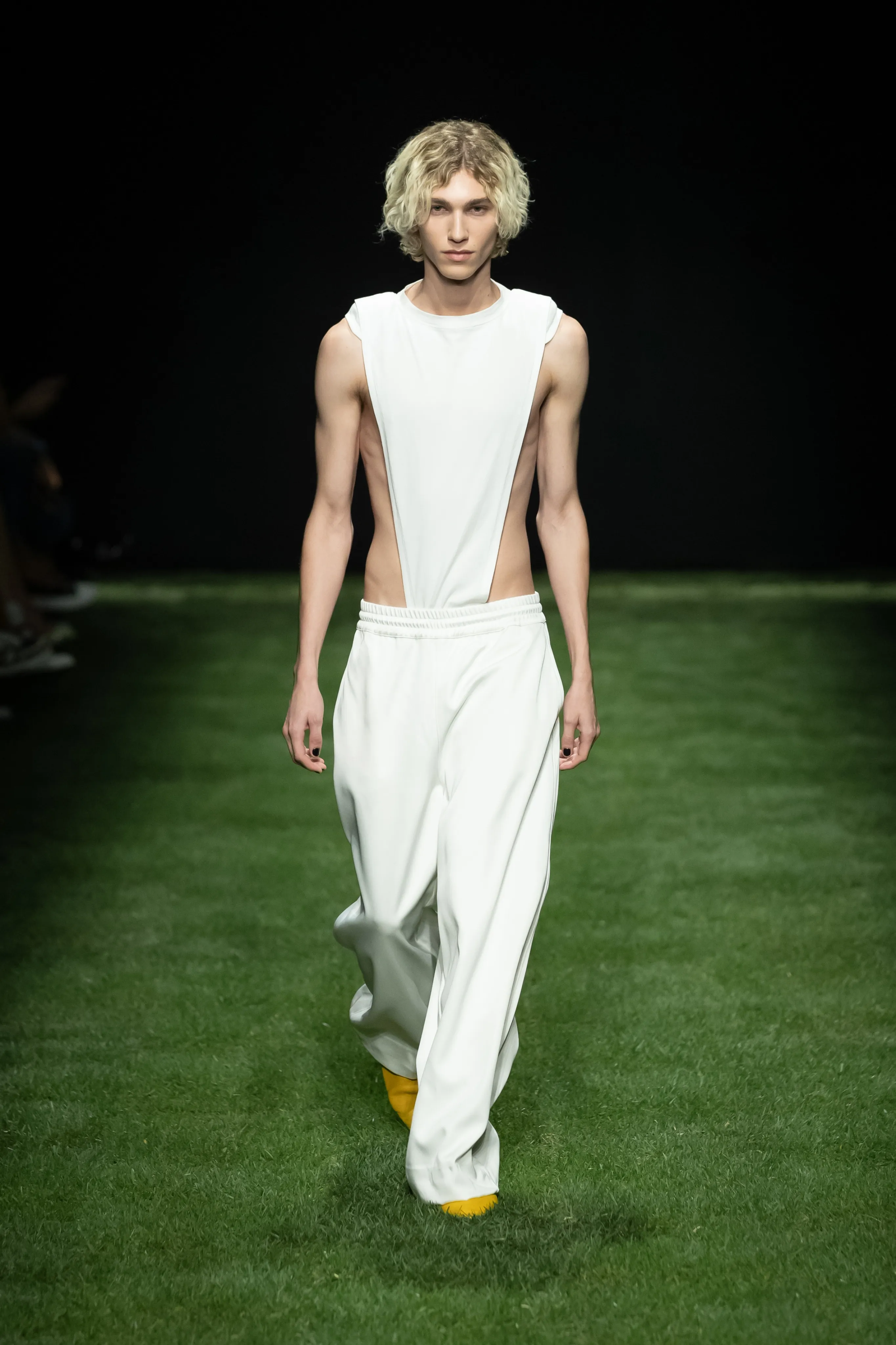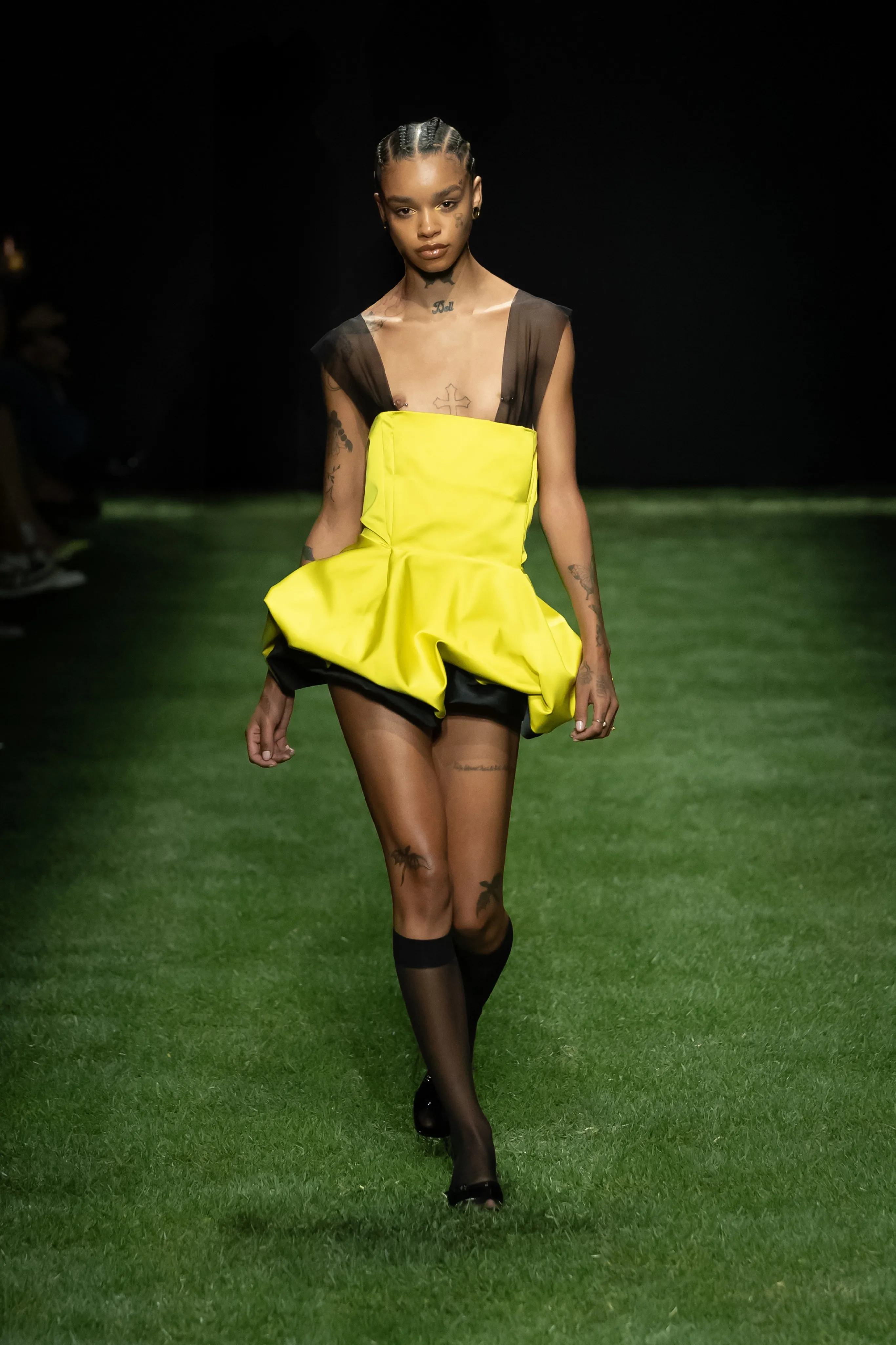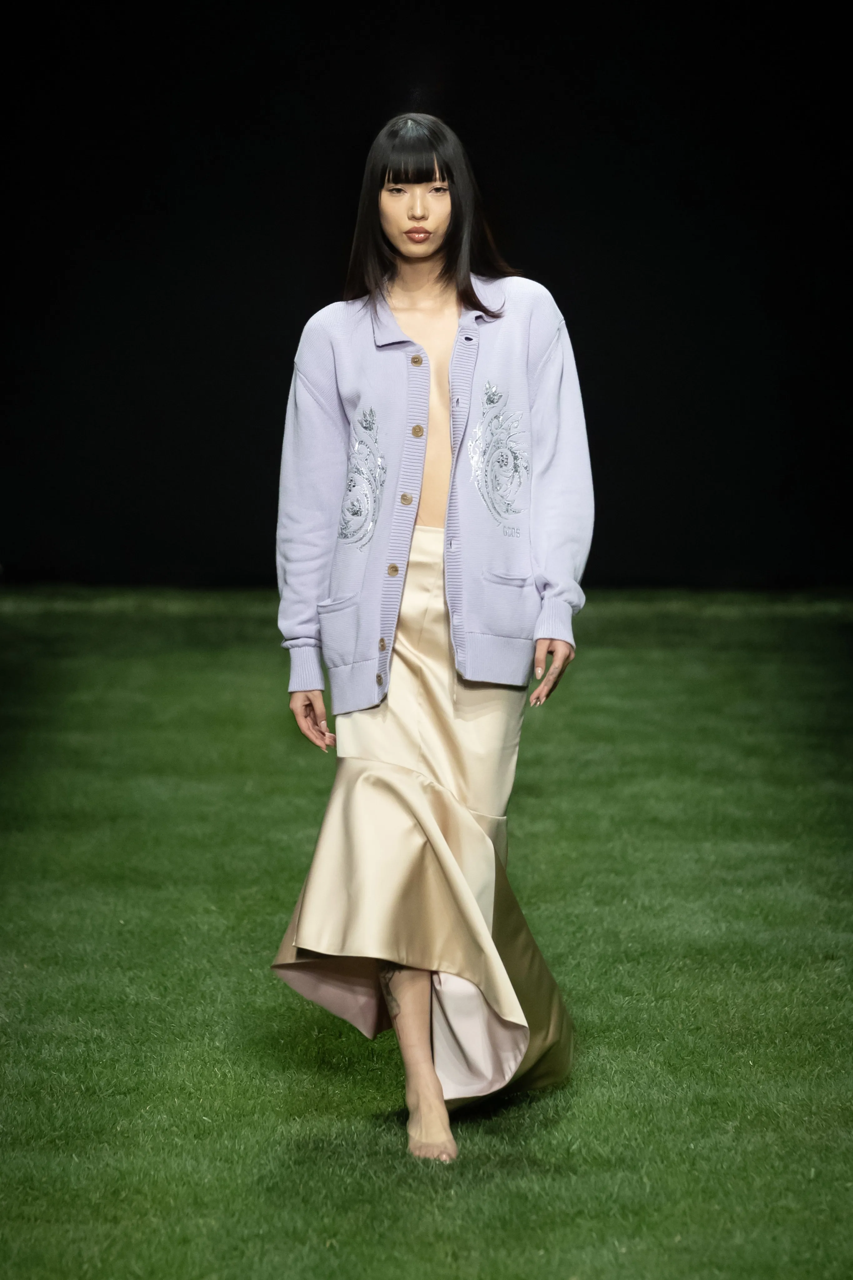 A Milan, sous une bande son signée Charli XCX, la collection GCDS printemps-été 2025 prend en considération les jeunes femmes qui influencent la culture pop. La nouvelle génération de divas pop montantes et de it-girls notoires se réinvente constamment en fournissant la bande originale du monde qui nous entoure. Pour cette ligne, le directeur créatif Giuliano Calza et la styliste Carine Roitfeld reconnaissent l'énergie féminine et la manière dont elle déclenche le changement culturel. Une vision qui a le pouvoir de transformer, comme une fleur qui a élu domicile en ville, des racines apparemment molles poussant dans le béton dur, avec suffisamment de force pour soutenir une fleur. Cela peut rassembler pour danser, délirer, agiter les bras en masse comme un champ de fleurs sauvages dans la brise. La création, plutôt que la destruction, si endémique aux mains de forces de plus en plus conservatrices, est l’énergie qui fait avancer la maison. Les t-shirts et les collants ont été sacrifiés pour créer de nouvelles pièces qui incarnent l'esprit créatif du millénaire. D'autres pièces sont mieux laissées entre les mains expertes des usines Made in Italy, comme les jupes tulipes séduisantes en satin épais à bords francs. Comme si c'était déjà la fin de la fête, les lumières s'allument dans le club pour révéler le déshabillé des pièces détachées défaites et les rares hauts en V profond, les collants transparents ravagés par la meilleure soirée avec vos meilleurs amis. L'ambiance du bureau au club est incarnée par des blazers et des jupes crayon, associés à des mi-bas. Les accessoires occupent une place particulière dans l'expression et cette saison propose aux fans de nombreuses pièces chargées de personnalité. La collection se déploie dans ses possibilités infinies à travers l’étreinte énergique des éclairages chaleureux du salon propulsés par Renault 5 E-TECH 100% ELECTRIC. Un scénario unique réuni par la vision synergique des deux maisons ; une réponse enthousiaste qui soutient un engagement envers les défis technologiques, sociaux et environnementaux.