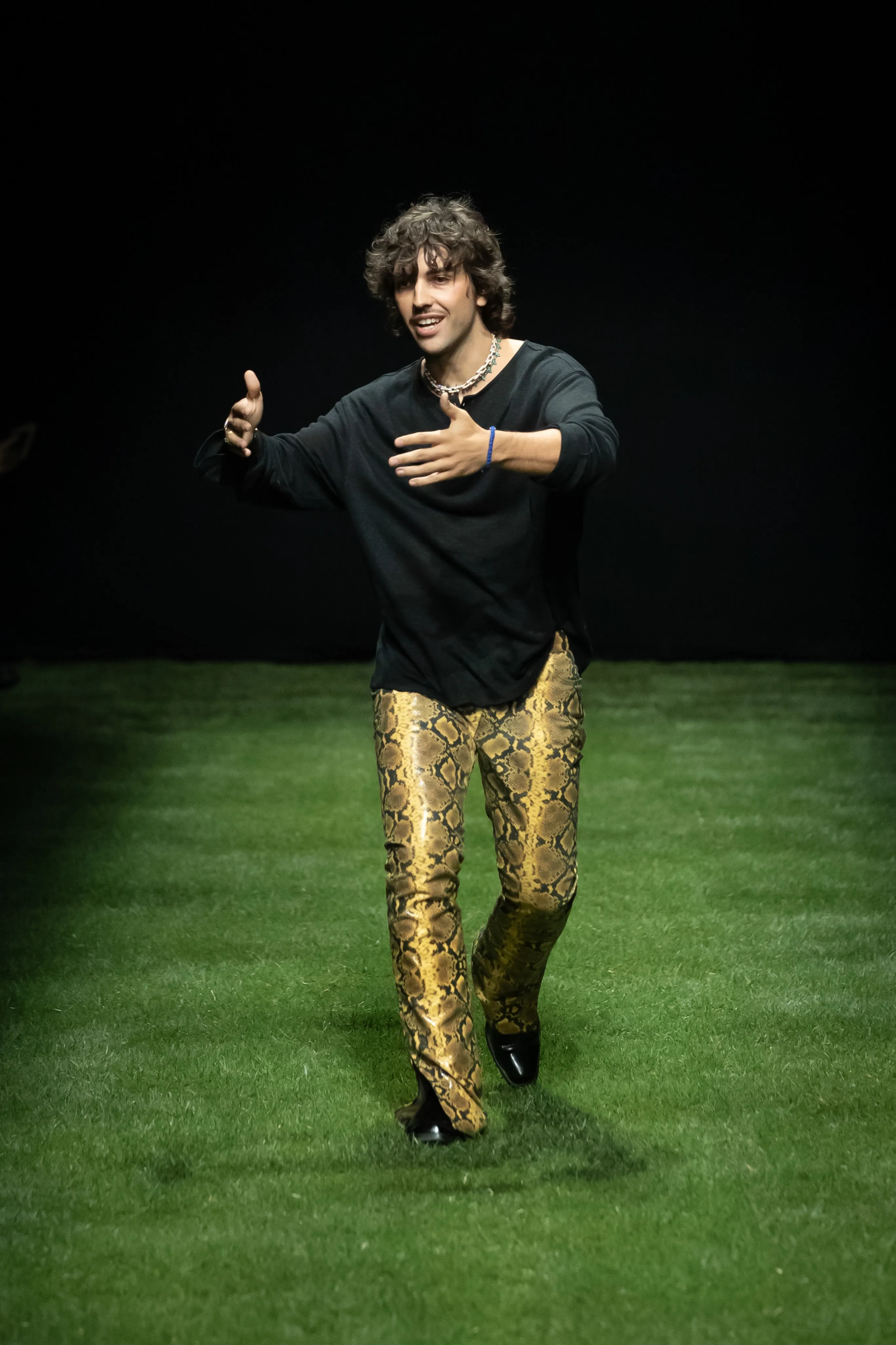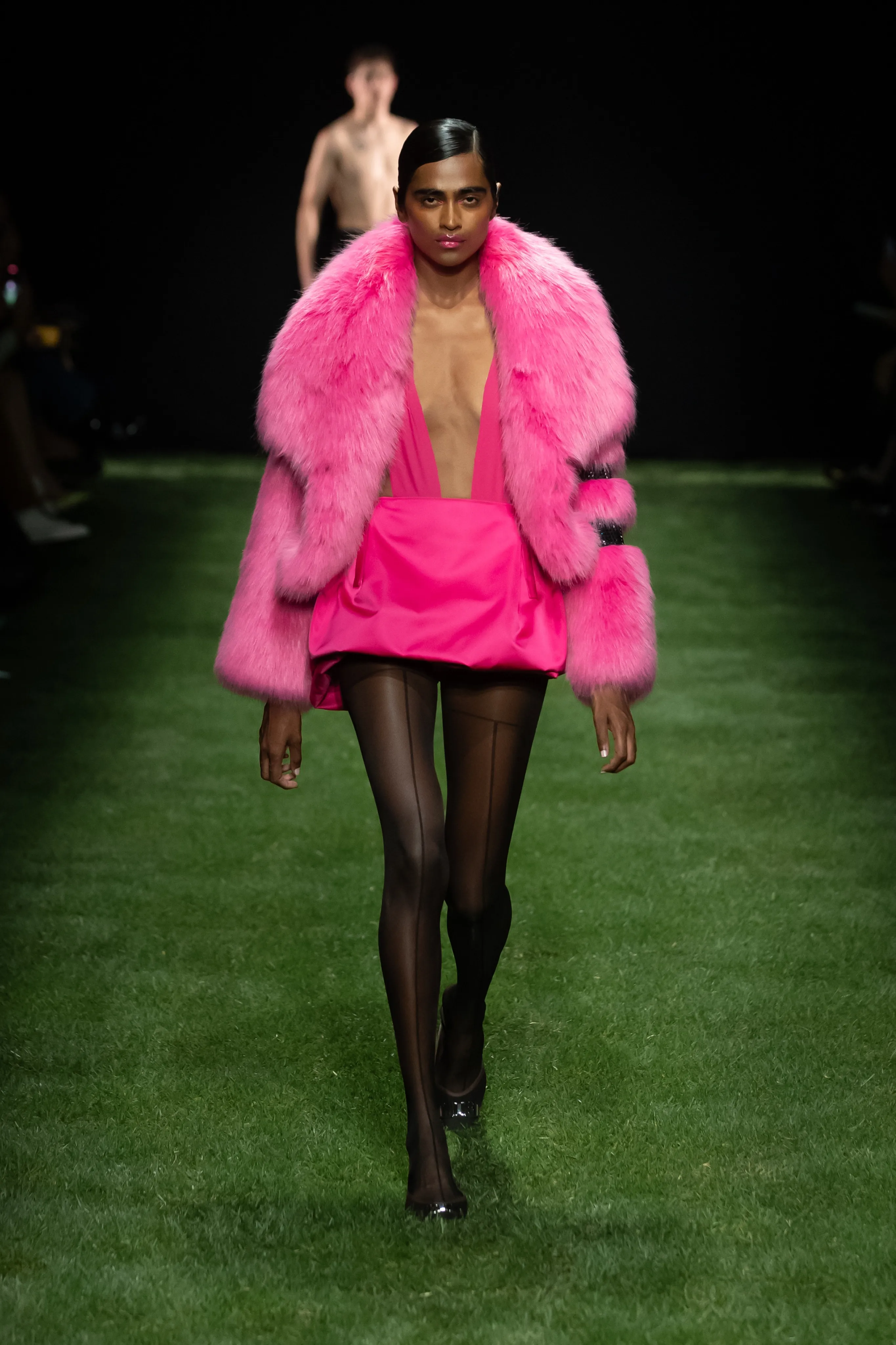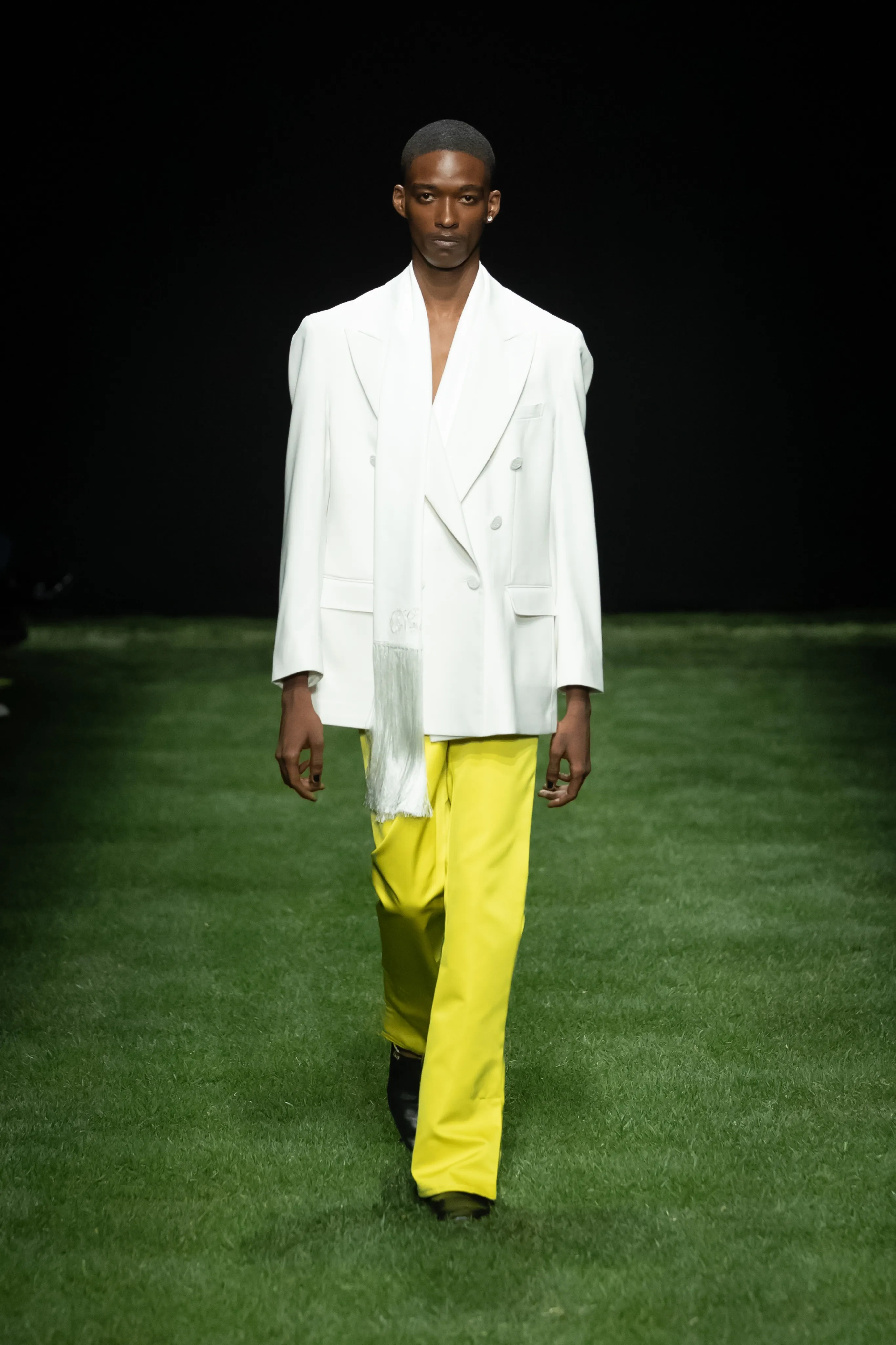 A Milan, sous une bande son signée Charli XCX, la collection GCDS printemps-été 2025 prend en considération les jeunes femmes qui influencent la culture pop. La nouvelle génération de divas pop montantes et de it-girls notoires se réinvente constamment en fournissant la bande originale du monde qui nous entoure. Pour cette ligne, le directeur créatif Giuliano Calza et la styliste Carine Roitfeld reconnaissent l'énergie féminine et la manière dont elle déclenche le changement culturel. Une vision qui a le pouvoir de transformer, comme une fleur qui a élu domicile en ville, des racines apparemment molles poussant dans le béton dur, avec suffisamment de force pour soutenir une fleur. Cela peut rassembler pour danser, délirer, agiter les bras en masse comme un champ de fleurs sauvages dans la brise. La création, plutôt que la destruction, si endémique aux mains de forces de plus en plus conservatrices, est l’énergie qui fait avancer la maison. Les t-shirts et les collants ont été sacrifiés pour créer de nouvelles pièces qui incarnent l'esprit créatif du millénaire. D'autres pièces sont mieux laissées entre les mains expertes des usines Made in Italy, comme les jupes tulipes séduisantes en satin épais à bords francs. Comme si c'était déjà la fin de la fête, les lumières s'allument dans le club pour révéler le déshabillé des pièces détachées défaites et les rares hauts en V profond, les collants transparents ravagés par la meilleure soirée avec vos meilleurs amis. L'ambiance du bureau au club est incarnée par des blazers et des jupes crayon, associés à des mi-bas. Les accessoires occupent une place particulière dans l'expression et cette saison propose aux fans de nombreuses pièces chargées de personnalité. La collection se déploie dans ses possibilités infinies à travers l’étreinte énergique des éclairages chaleureux du salon propulsés par Renault 5 E-TECH 100% ELECTRIC. Un scénario unique réuni par la vision synergique des deux maisons ; une réponse enthousiaste qui soutient un engagement envers les défis technologiques, sociaux et environnementaux.