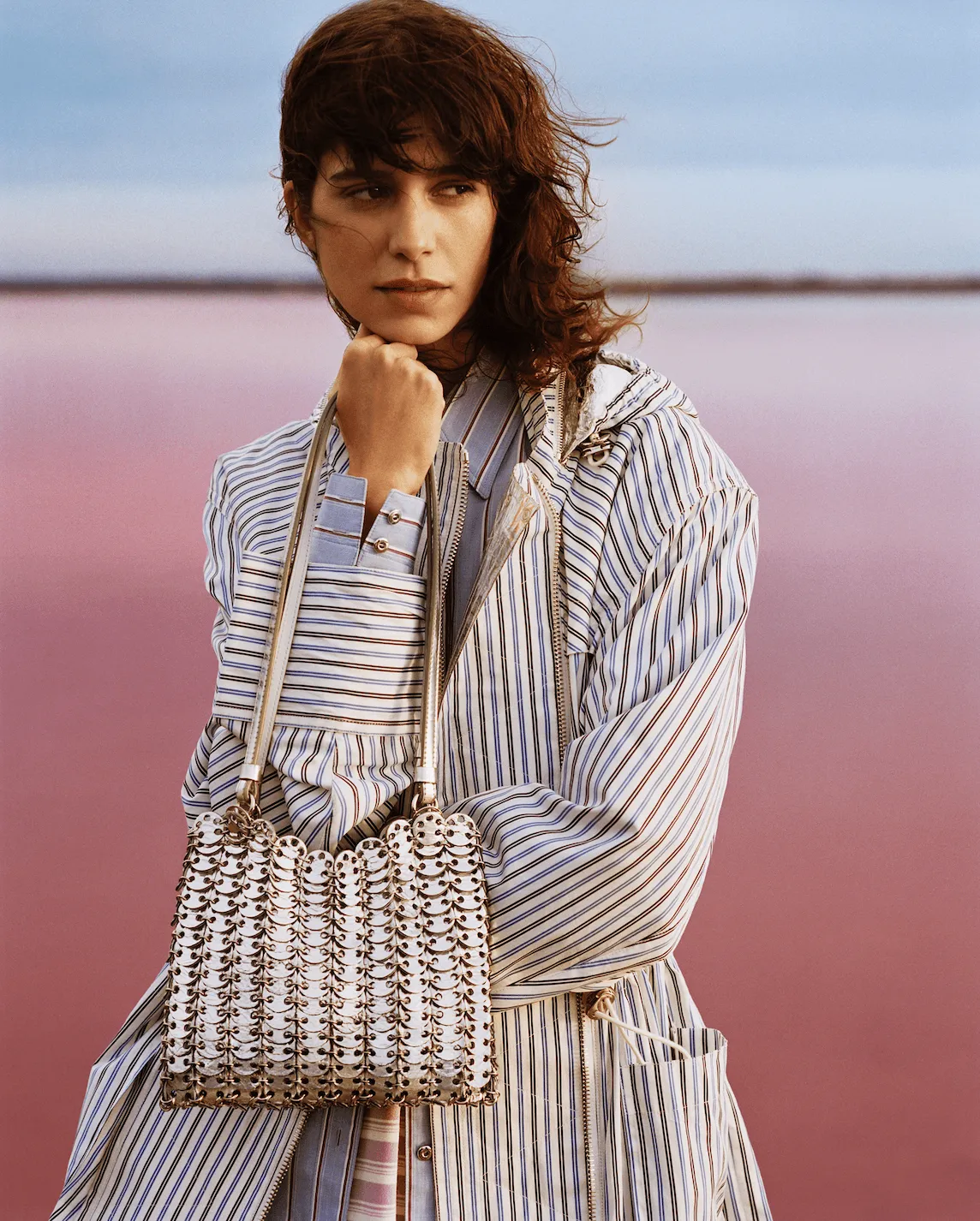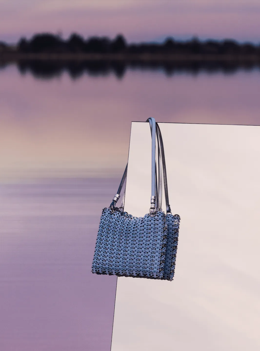 Avec cette collection, rabanne dévoile les "Editions Artisan", transformant comme jamais auparavant ses iconiques sacs 1969. Dans une approche fidèle à sa quête d’expérimentation des matériaux, les disques métalliques inspirés des tabliers de bouchers ont été méticuleusement réinventés dans le cadre de trois collaborations exceptionnelles – avec le créateur de médailles Arthus Bertrand, avec l’atelier de céramique Astier de Villatte, et avec la maison de verre soufflé Venini. Renommées pour leur capacité à allier techniques traditionnelles et design contemporain, ces maisons ont répondu à l’invitation et offert leur expertise à ce processus de création exigeant.