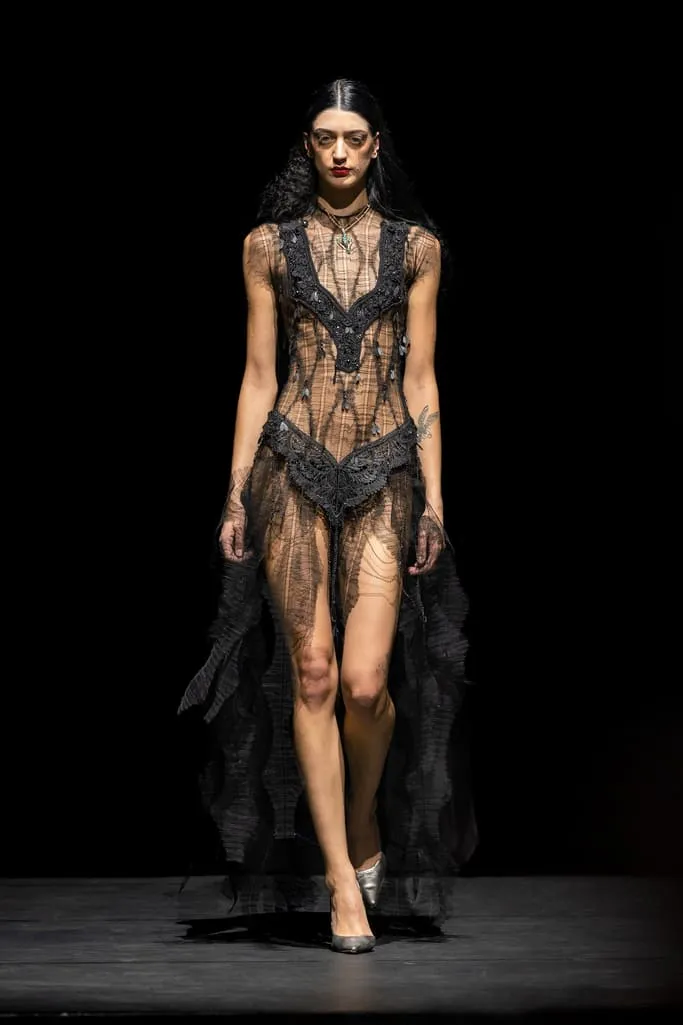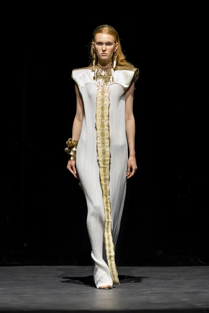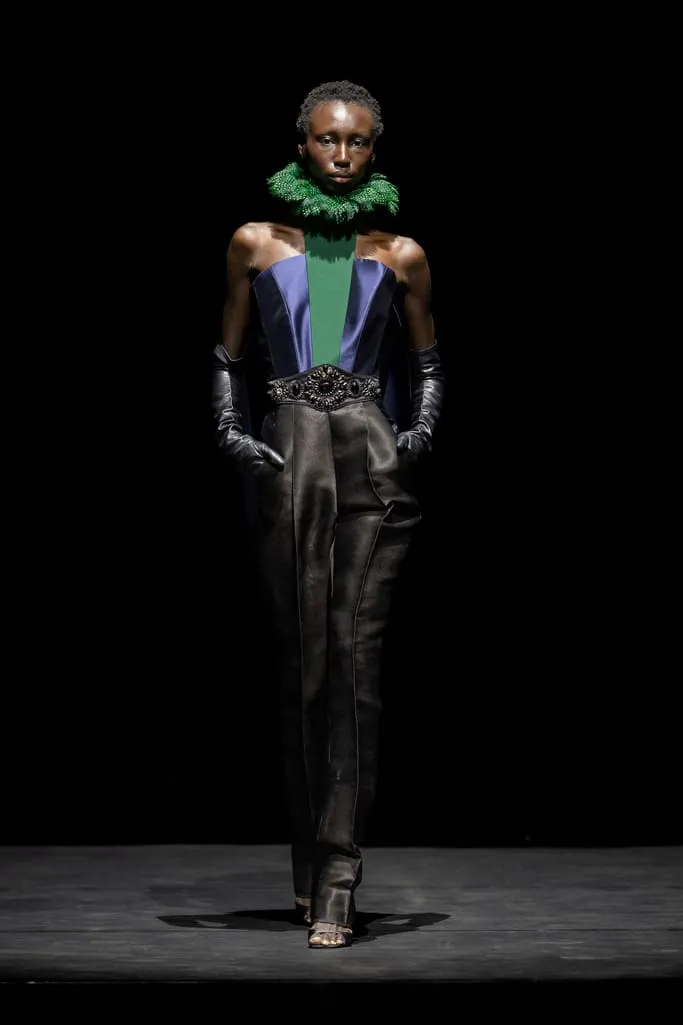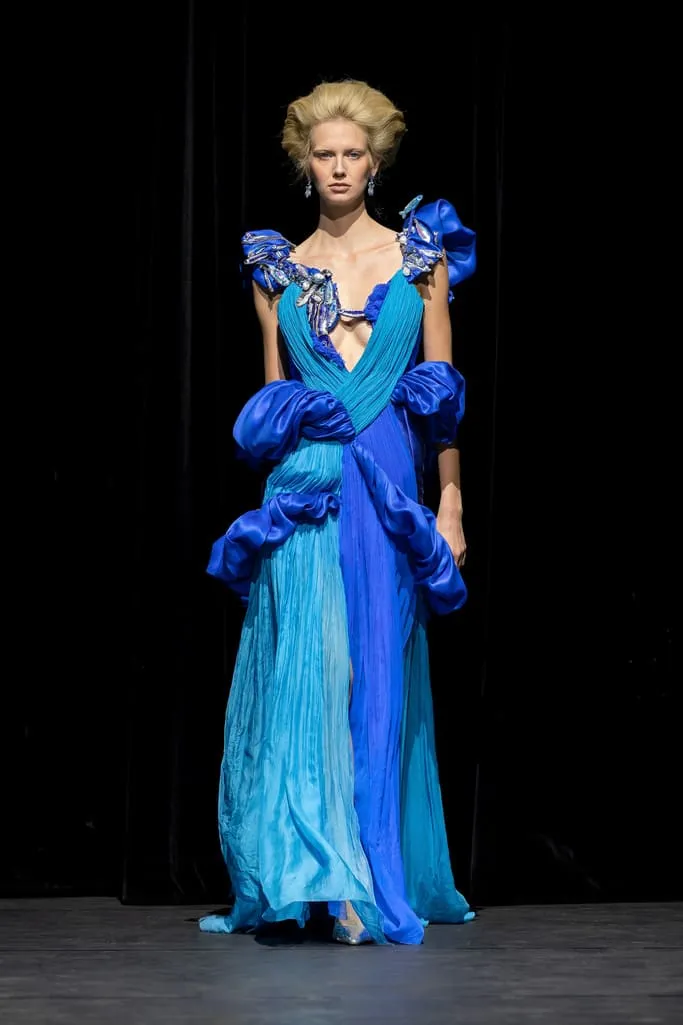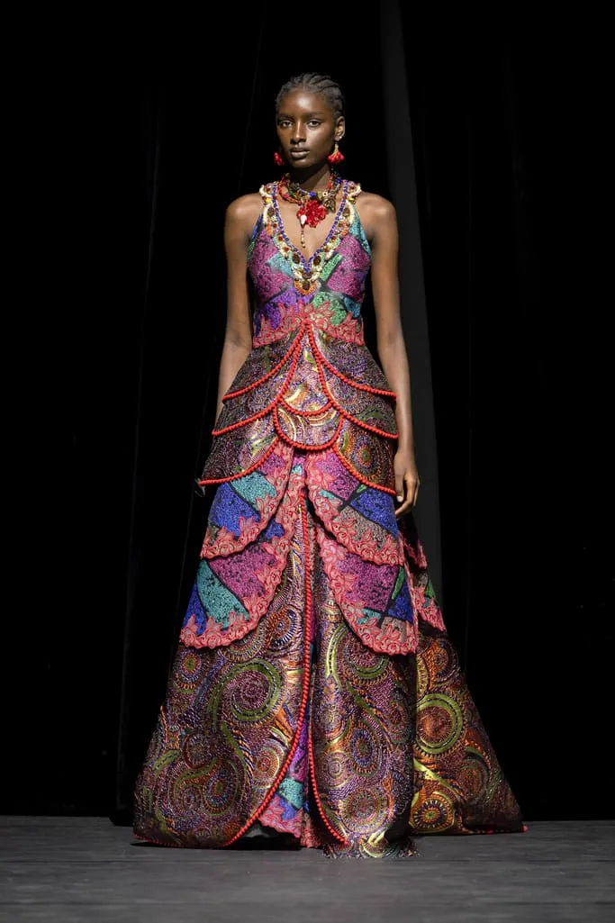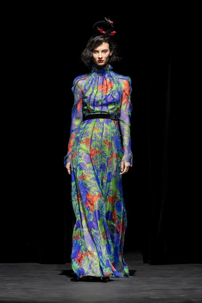 Depuis 2014, Ronald van der Kemp propose une couture circulaire authentique, confectionnée à partir de tout ce qui reste. Cette fois, RVDK répond à "L'Appel de la Forêt", un hommage à Mère Nature. Une garde-robe née d'une collaboration intime et personnelle avec l’amie et muse du créateur, Thayna Caiçara, et un extraordinaire collectif d'artisans et de brodeurs autochtones du cœur du Brésil. Inspirés par la luxuriante et sublime forêt tropicale et ses habitants, le cours majestueux de l'Amazone, l'incroyable beauté et l'excentricité intemporelle des "Oiseaux de Paradis" de la mode, vêtus de vêtements de haute couture à l'ancienne. Les créations sont un hommage à la splendeur et à l'originalité de la nature, ainsi qu'aux mains humaines talentueuses qui leur donnent vie, transformant le rebut en divin. Un témoignage du pouvoir de l'art et de la beauté dans un monde où l'humanité est souvent à la traîne.