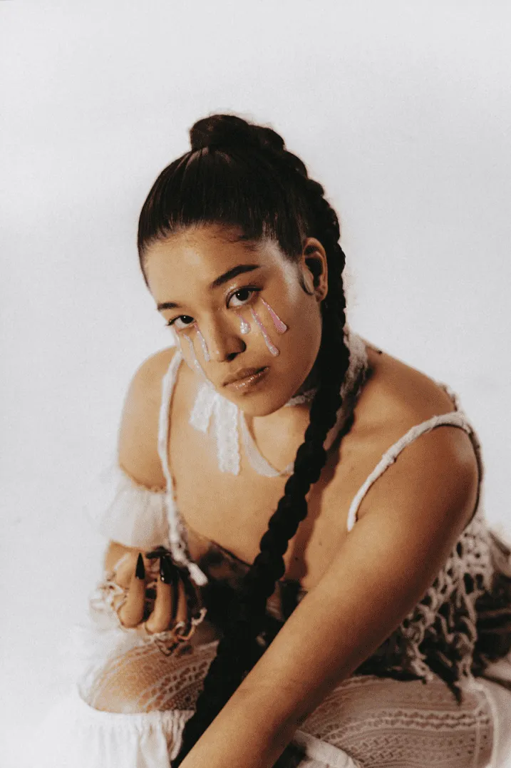 J’écoute surtout du rap français et du rap américain. XXXTentacion et Lil Peep, sont des grosses références pour moi. C’est pour ça que mes premiers morceaux étaient un peu tristes, un peu bandants avec des prods un peu lancinantes, avec une guitare et un côté très drama. Et sinon, en rappeurs français, je vais citer des noms assez connus, je ne vais pas faire original pour être originale, mais Hamza, Damso, Laylow, Népal. Là en ce moment, j’adore Asinine, je la trouve incroyable cette meuf, elle est trop forte, Theodora, Kay The Prodigy et BabySolo33 aussi.