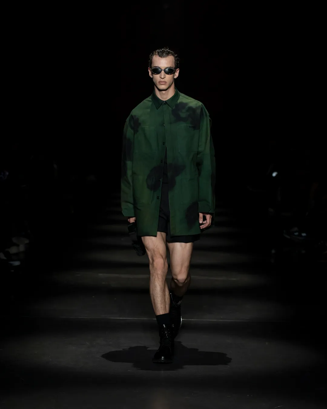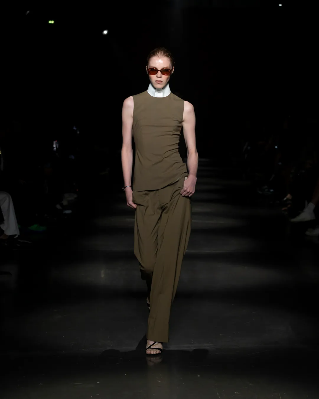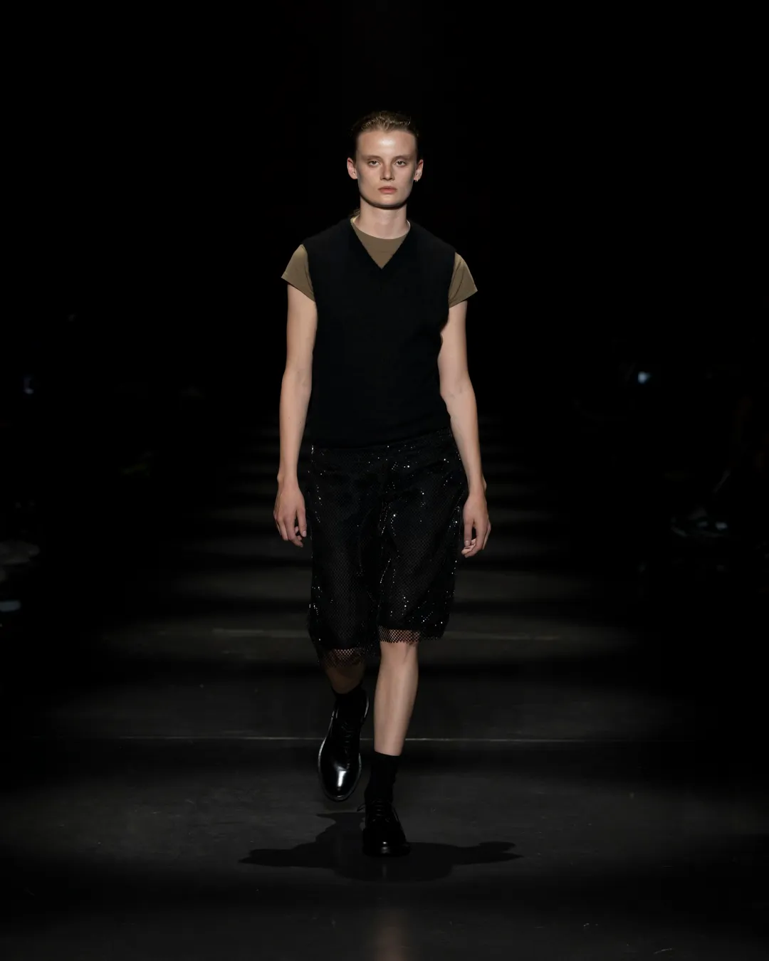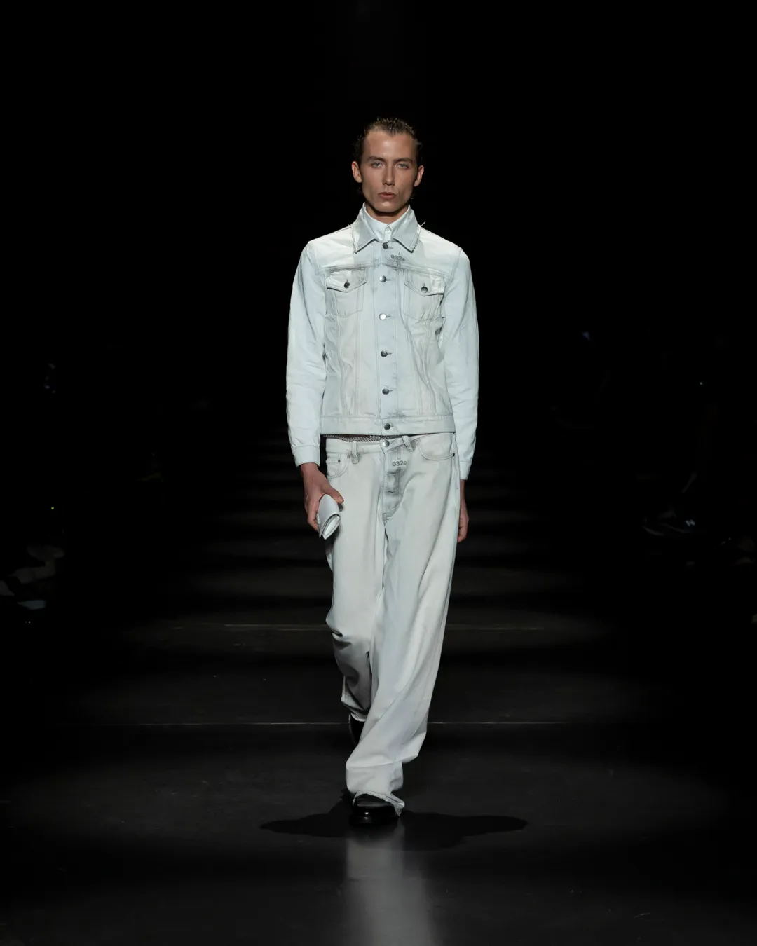 "Je ne suis pas intéressée de vivre dans un monde fantastique. Je souhaite vivre dans un monde où des antithèses peuvent exister simultanément, où chaque fragment est considéré, remontant à une seule pensée, un monde où tout compte", souligne la directrice créative Maria Koch. Concevoir des vêtements, c'est comme concevoir des rêves. TOUT COMPTE ne veut pas vendre des rêveries utopiques hermétiquement fermées au monde, il a pour noyau l’existence contemporaine de différences, en prenant tout en compte parce que tout compte. Présentée à l’Institut du Monde Arabe, la collection printemps-été 2025 de 032c se compose de fragments distincts de la vie quotidienne qui deviennent une idée sous le cadre de TOUT COMPTE - des grossièretés apparentes qui se transforment en quelque chose de sacré à mesure qu'elles s'élèvent. Dans la continuité de la collection automne-hiver 2024 de la directrice créative, la collection printemps-été 2025 s'attaque impitoyablement à l'intemporalité et admire l'observation et l'objectivité plutôt que l'opulence. Les silhouettes deviennent plus serrées, la détermination et la précision traversent la couture. Les broderies, les couleurs et les imprimés sont tout aussi susceptibles de faire référence à des situations de la vie quotidienne comme l’art conceptuel et la théorie. Pour cette collection, Koch a collaboré avec l'artiste géorgien-américain Ketuta Alexi-Meskhishvili, dont la photographie "I am Kurious Green" est utilisée comme impression dans toute la collection. Faire une image, c’est comme dans un atelier où tout peut arriver pour fabriquer un vêtement.