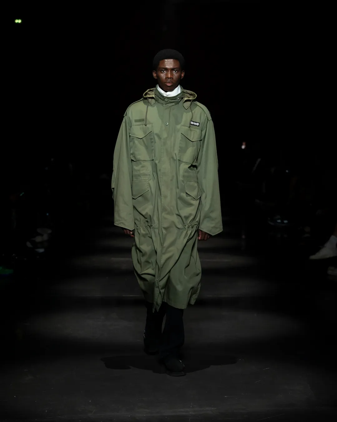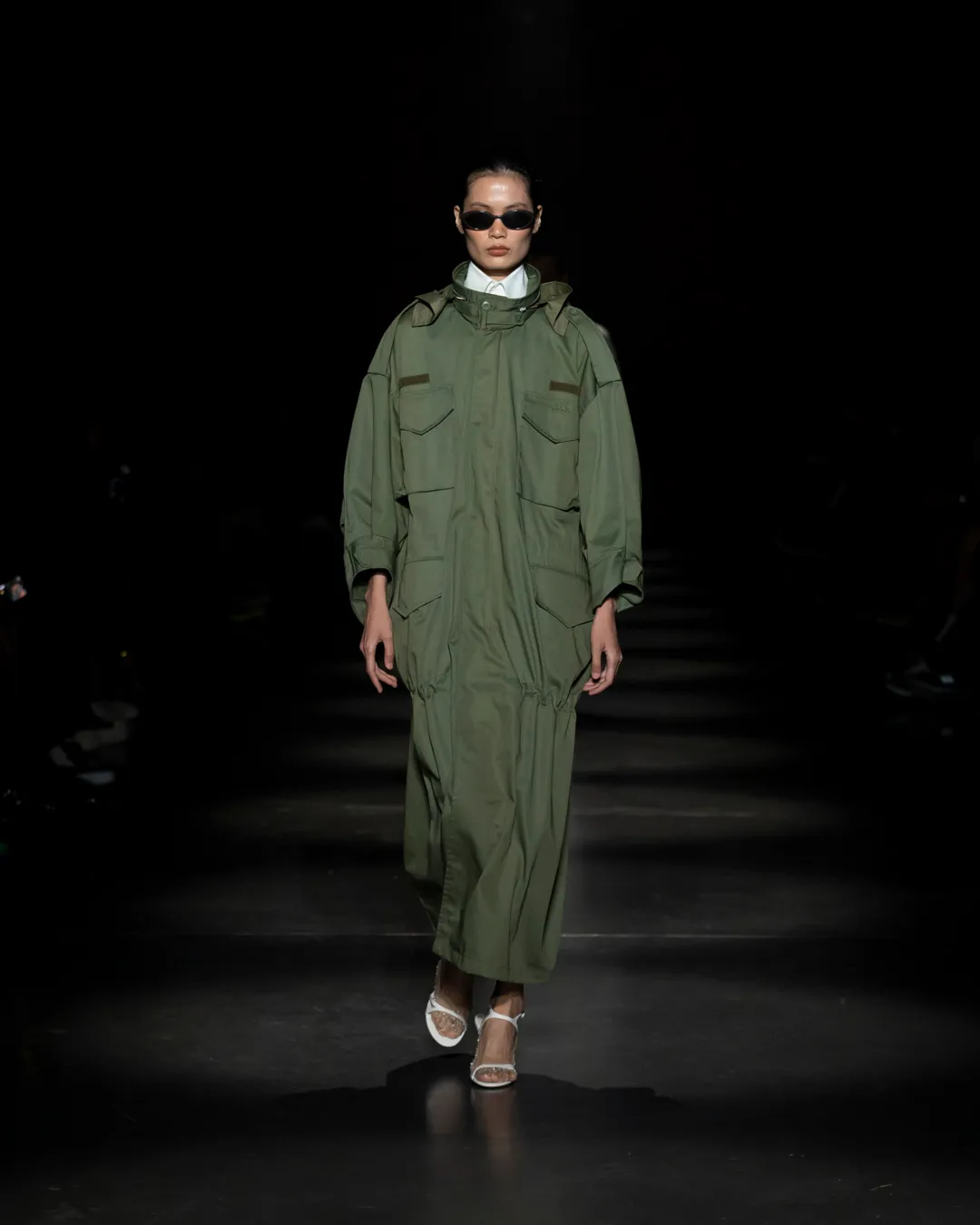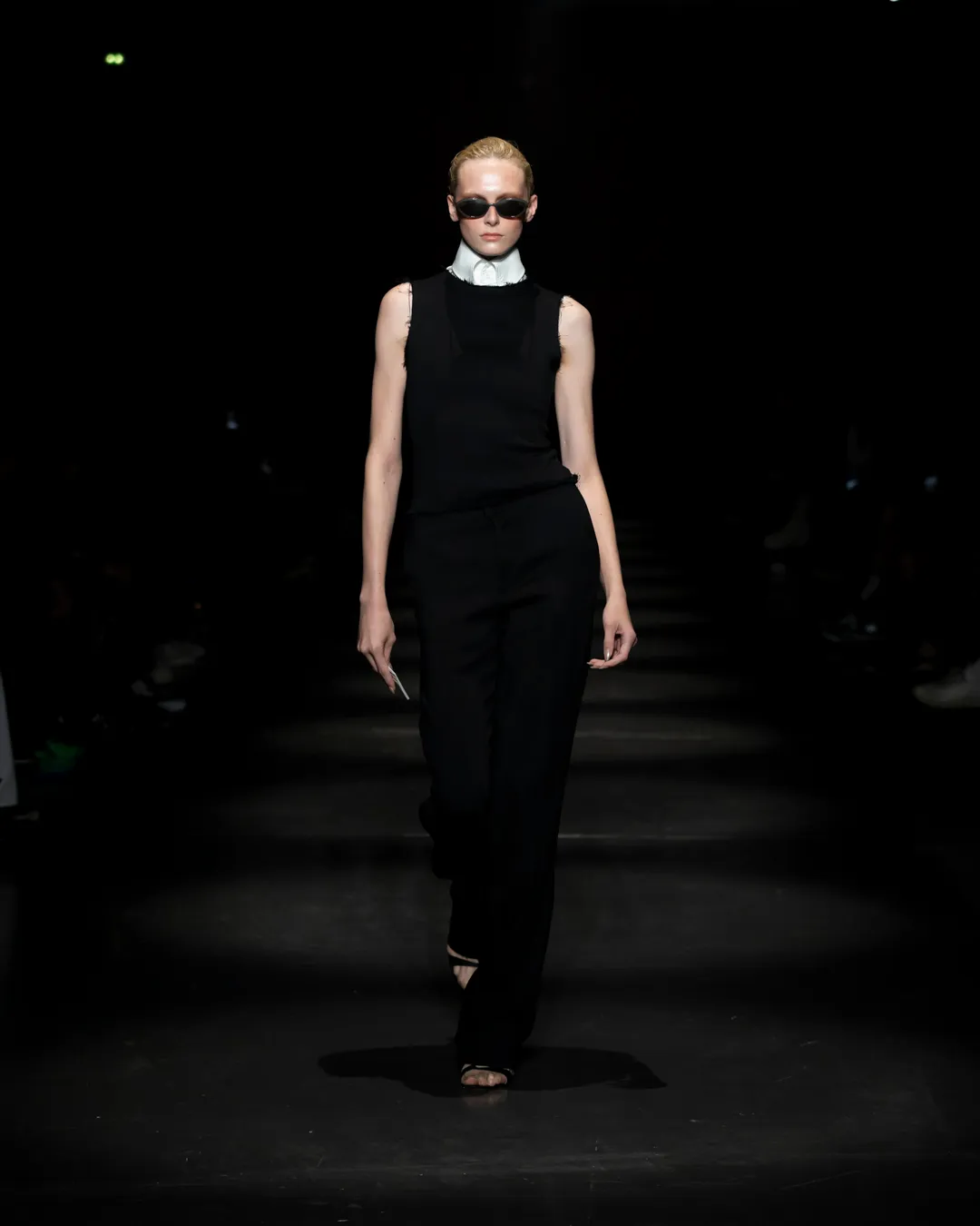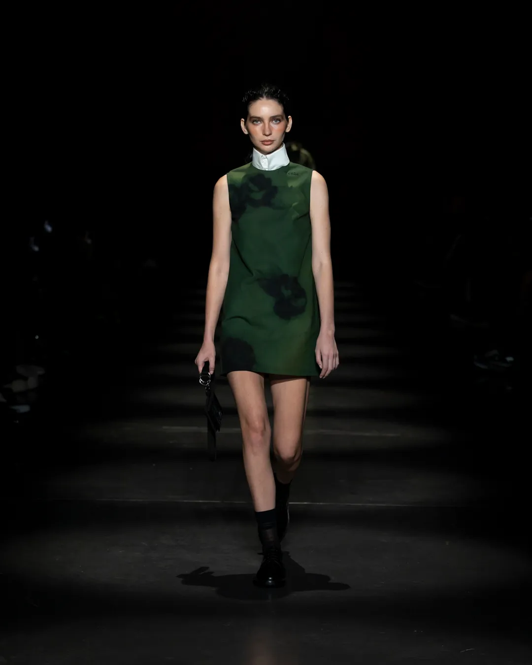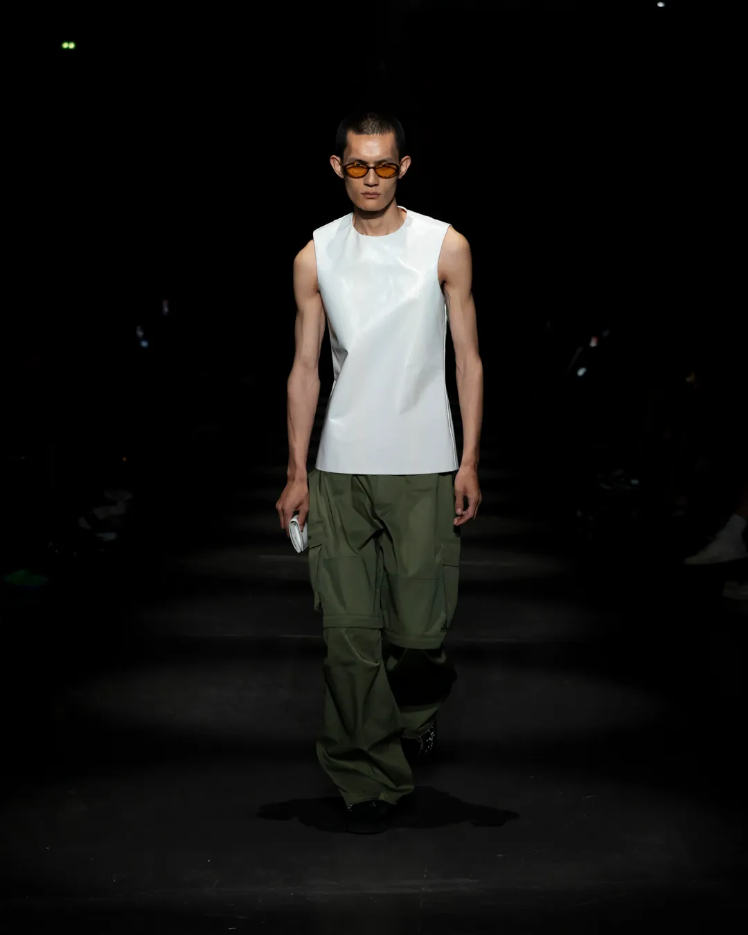 "Je ne suis pas intéressée de vivre dans un monde fantastique. Je souhaite vivre dans un monde où des antithèses peuvent exister simultanément, où chaque fragment est considéré, remontant à une seule pensée, un monde où tout compte", souligne la directrice créative Maria Koch. Concevoir des vêtements, c'est comme concevoir des rêves. TOUT COMPTE ne veut pas vendre des rêveries utopiques hermétiquement fermées au monde, il a pour noyau l’existence contemporaine de différences, en prenant tout en compte parce que tout compte. Présentée à l’Institut du Monde Arabe, la collection printemps-été 2025 de 032c se compose de fragments distincts de la vie quotidienne qui deviennent une idée sous le cadre de TOUT COMPTE - des grossièretés apparentes qui se transforment en quelque chose de sacré à mesure qu'elles s'élèvent. Dans la continuité de la collection automne-hiver 2024 de la directrice créative, la collection printemps-été 2025 s'attaque impitoyablement à l'intemporalité et admire l'observation et l'objectivité plutôt que l'opulence. Les silhouettes deviennent plus serrées, la détermination et la précision traversent la couture. Les broderies, les couleurs et les imprimés sont tout aussi susceptibles de faire référence à des situations de la vie quotidienne comme l’art conceptuel et la théorie. Pour cette collection, Koch a collaboré avec l'artiste géorgien-américain Ketuta Alexi-Meskhishvili, dont la photographie "I am Kurious Green" est utilisée comme impression dans toute la collection. Faire une image, c’est comme dans un atelier où tout peut arriver pour fabriquer un vêtement.