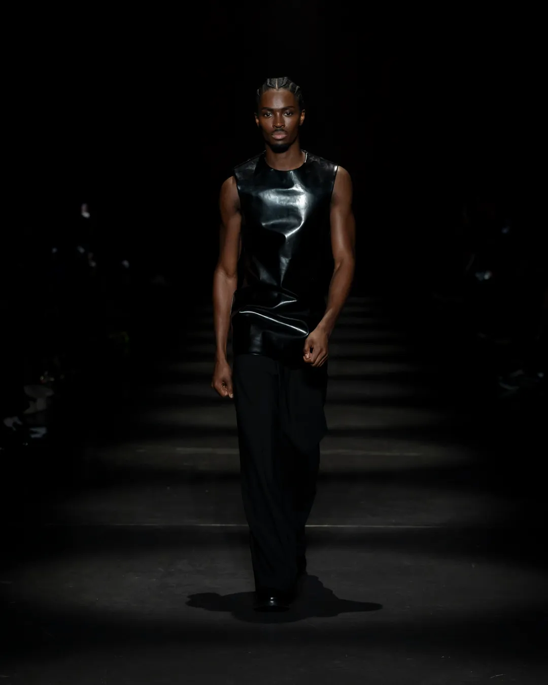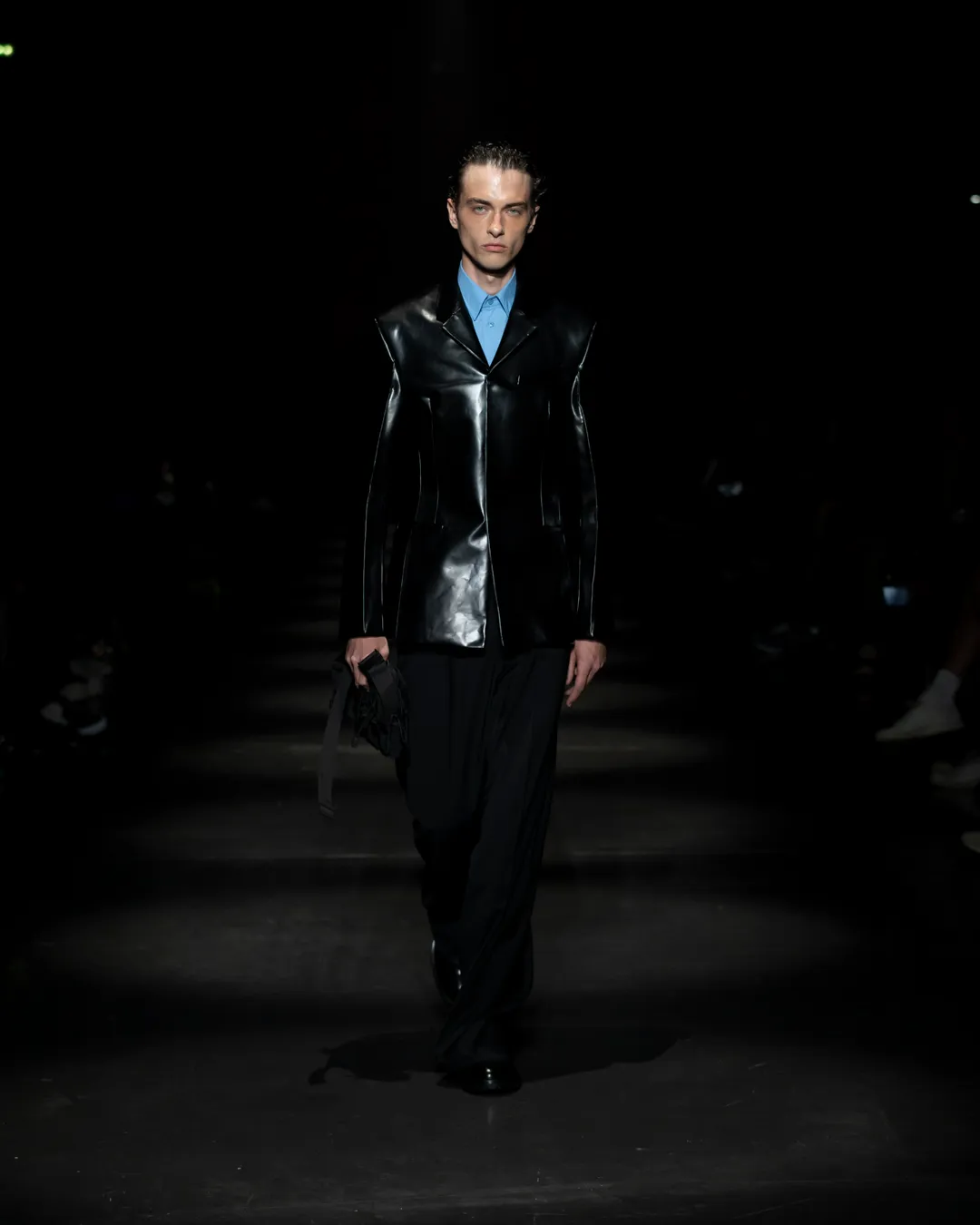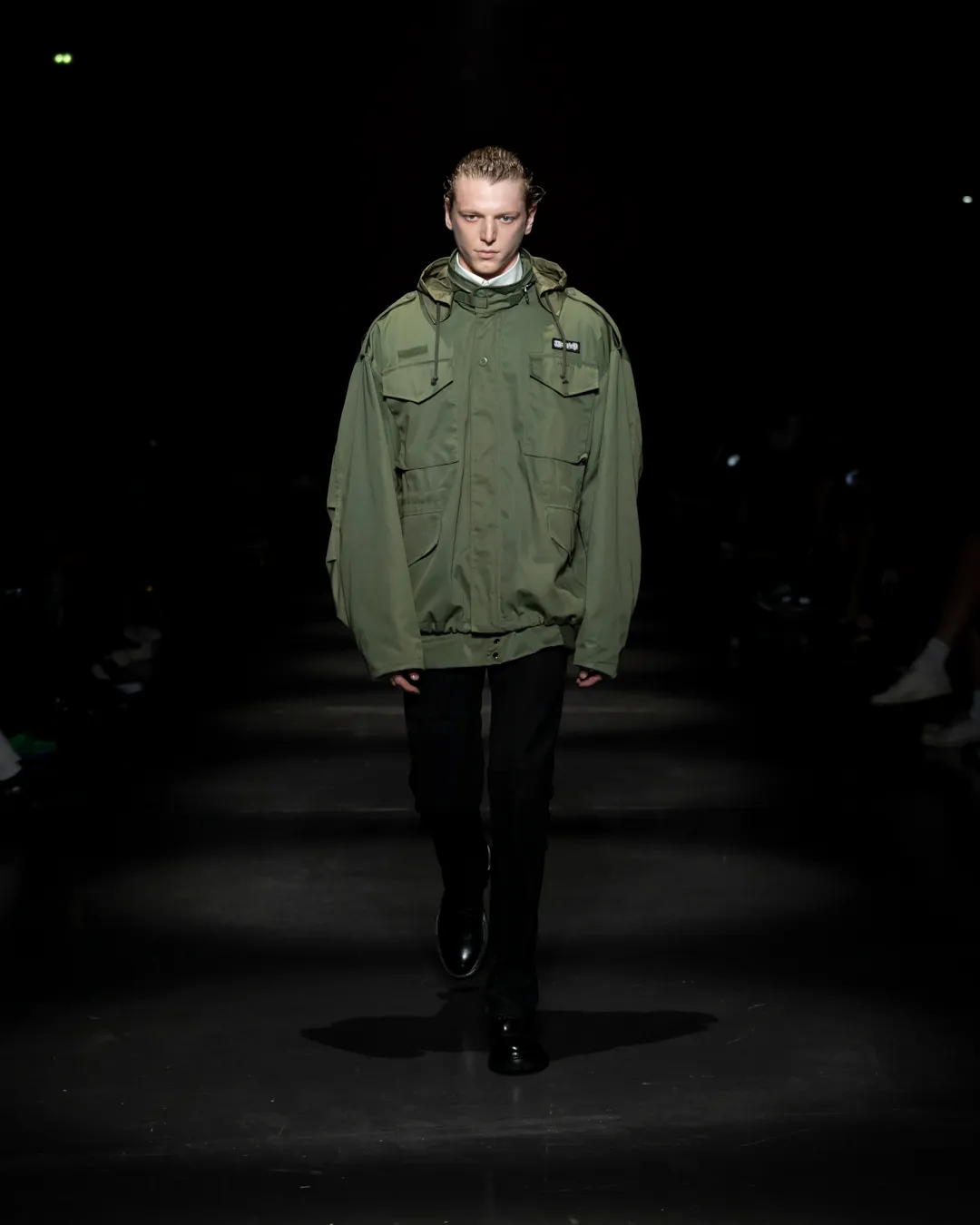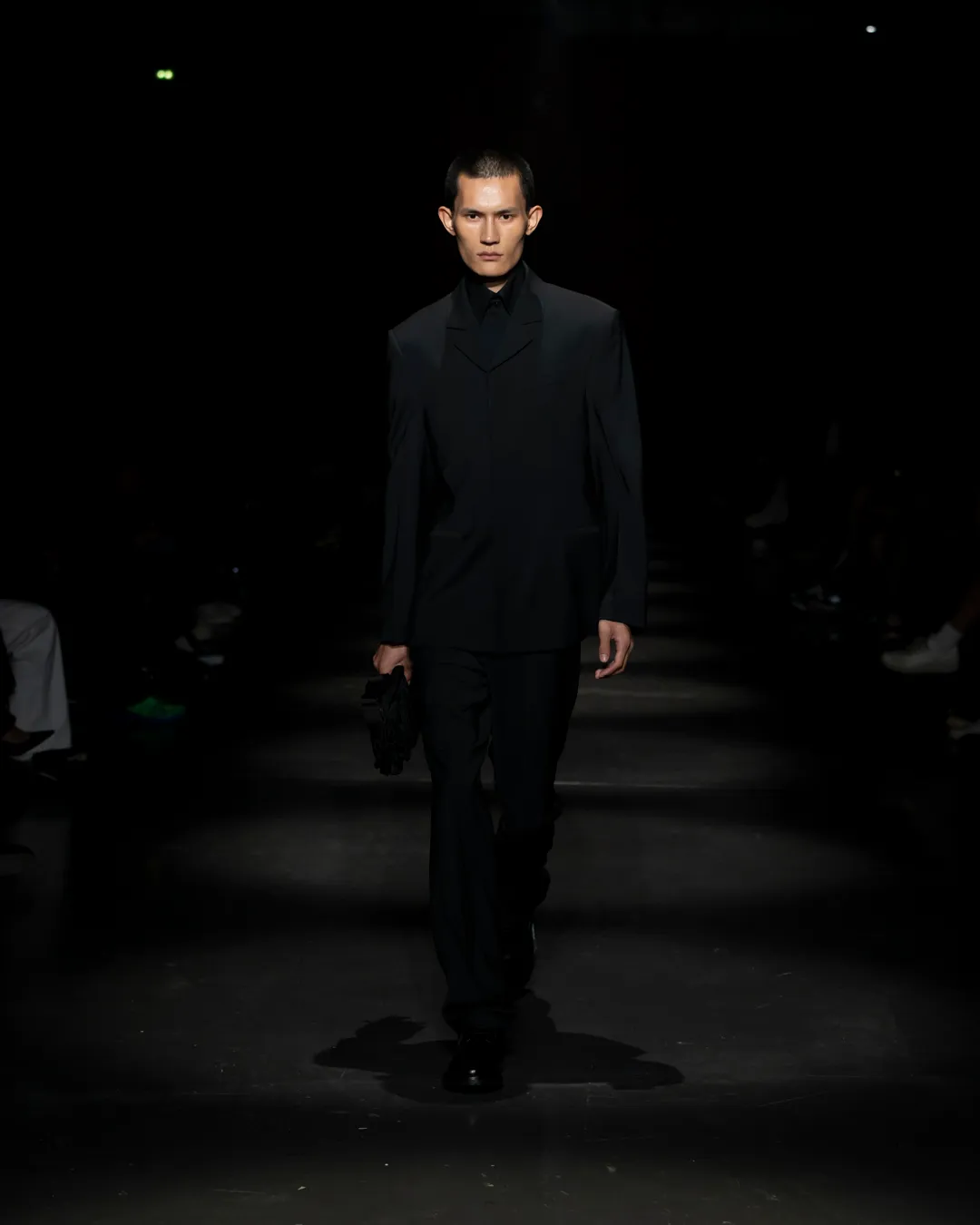 "Je ne suis pas intéressée de vivre dans un monde fantastique. Je souhaite vivre dans un monde où des antithèses peuvent exister simultanément, où chaque fragment est considéré, remontant à une seule pensée, un monde où tout compte", souligne la directrice créative Maria Koch. Concevoir des vêtements, c'est comme concevoir des rêves. TOUT COMPTE ne veut pas vendre des rêveries utopiques hermétiquement fermées au monde, il a pour noyau l’existence contemporaine de différences, en prenant tout en compte parce que tout compte. Présentée à l’Institut du Monde Arabe, la collection printemps-été 2025 de 032c se compose de fragments distincts de la vie quotidienne qui deviennent une idée sous le cadre de TOUT COMPTE - des grossièretés apparentes qui se transforment en quelque chose de sacré à mesure qu'elles s'élèvent. Dans la continuité de la collection automne-hiver 2024 de la directrice créative, la collection printemps-été 2025 s'attaque impitoyablement à l'intemporalité et admire l'observation et l'objectivité plutôt que l'opulence. Les silhouettes deviennent plus serrées, la détermination et la précision traversent la couture. Les broderies, les couleurs et les imprimés sont tout aussi susceptibles de faire référence à des situations de la vie quotidienne comme l’art conceptuel et la théorie. Pour cette collection, Koch a collaboré avec l'artiste géorgien-américain Ketuta Alexi-Meskhishvili, dont la photographie "I am Kurious Green" est utilisée comme impression dans toute la collection. Faire une image, c’est comme dans un atelier où tout peut arriver pour fabriquer un vêtement.