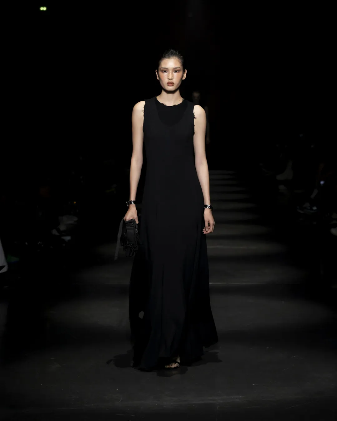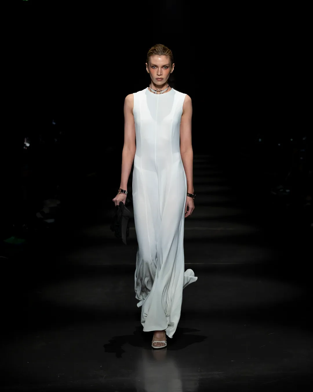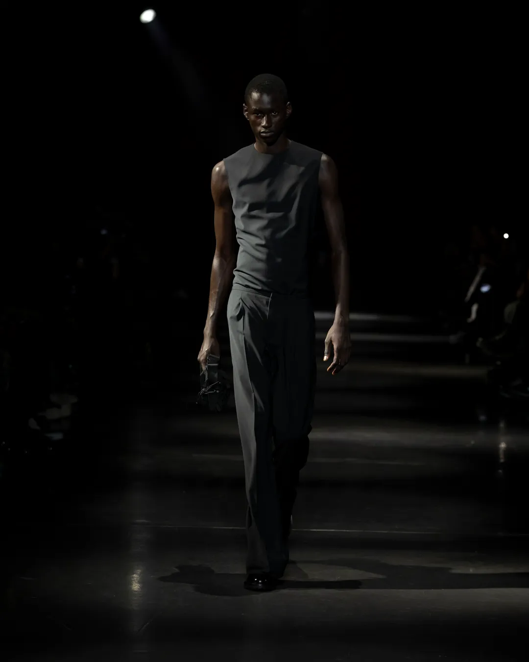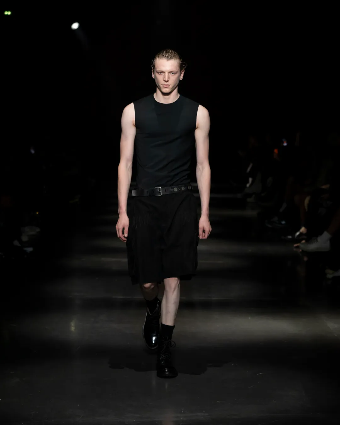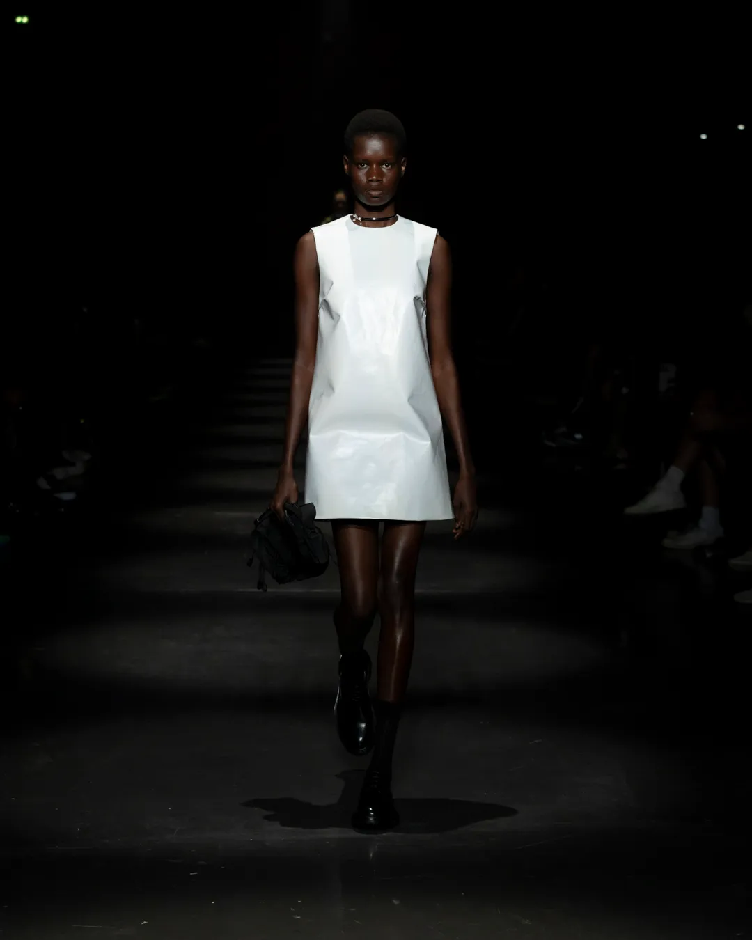 "Je ne suis pas intéressée de vivre dans un monde fantastique. Je souhaite vivre dans un monde où des antithèses peuvent exister simultanément, où chaque fragment est considéré, remontant à une seule pensée, un monde où tout compte", souligne la directrice créative Maria Koch. Concevoir des vêtements, c'est comme concevoir des rêves. TOUT COMPTE ne veut pas vendre des rêveries utopiques hermétiquement fermées au monde, il a pour noyau l’existence contemporaine de différences, en prenant tout en compte parce que tout compte. Présentée à l’Institut du Monde Arabe, la collection printemps-été 2025 de 032c se compose de fragments distincts de la vie quotidienne qui deviennent une idée sous le cadre de TOUT COMPTE - des grossièretés apparentes qui se transforment en quelque chose de sacré à mesure qu'elles s'élèvent. Dans la continuité de la collection automne-hiver 2024 de la directrice créative, la collection printemps-été 2025 s'attaque impitoyablement à l'intemporalité et admire l'observation et l'objectivité plutôt que l'opulence. Les silhouettes deviennent plus serrées, la détermination et la précision traversent la couture. Les broderies, les couleurs et les imprimés sont tout aussi susceptibles de faire référence à des situations de la vie quotidienne comme l’art conceptuel et la théorie. Pour cette collection, Koch a collaboré avec l'artiste géorgien-américain Ketuta Alexi-Meskhishvili, dont la photographie "I am Kurious Green" est utilisée comme impression dans toute la collection. Faire une image, c’est comme dans un atelier où tout peut arriver pour fabriquer un vêtement.