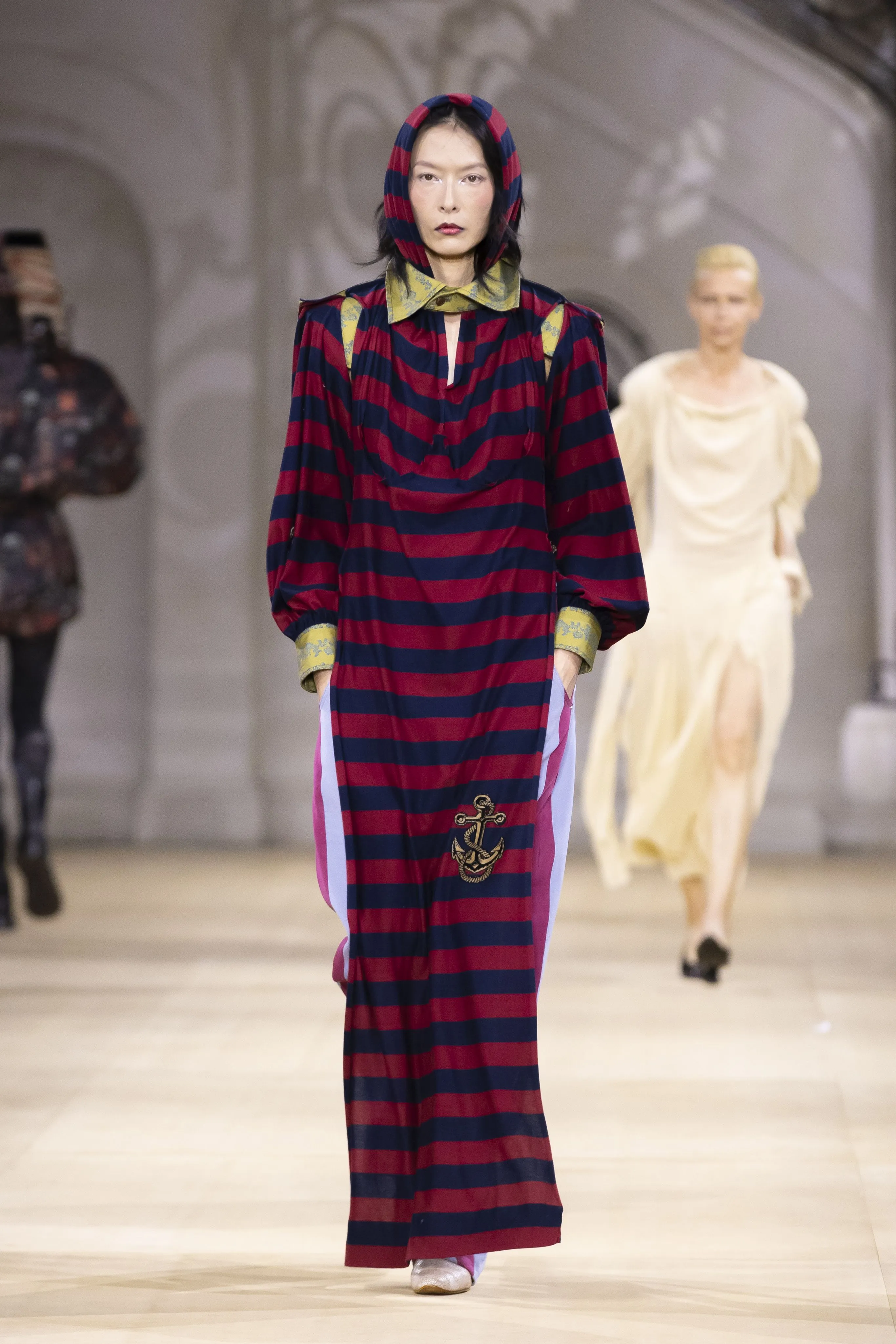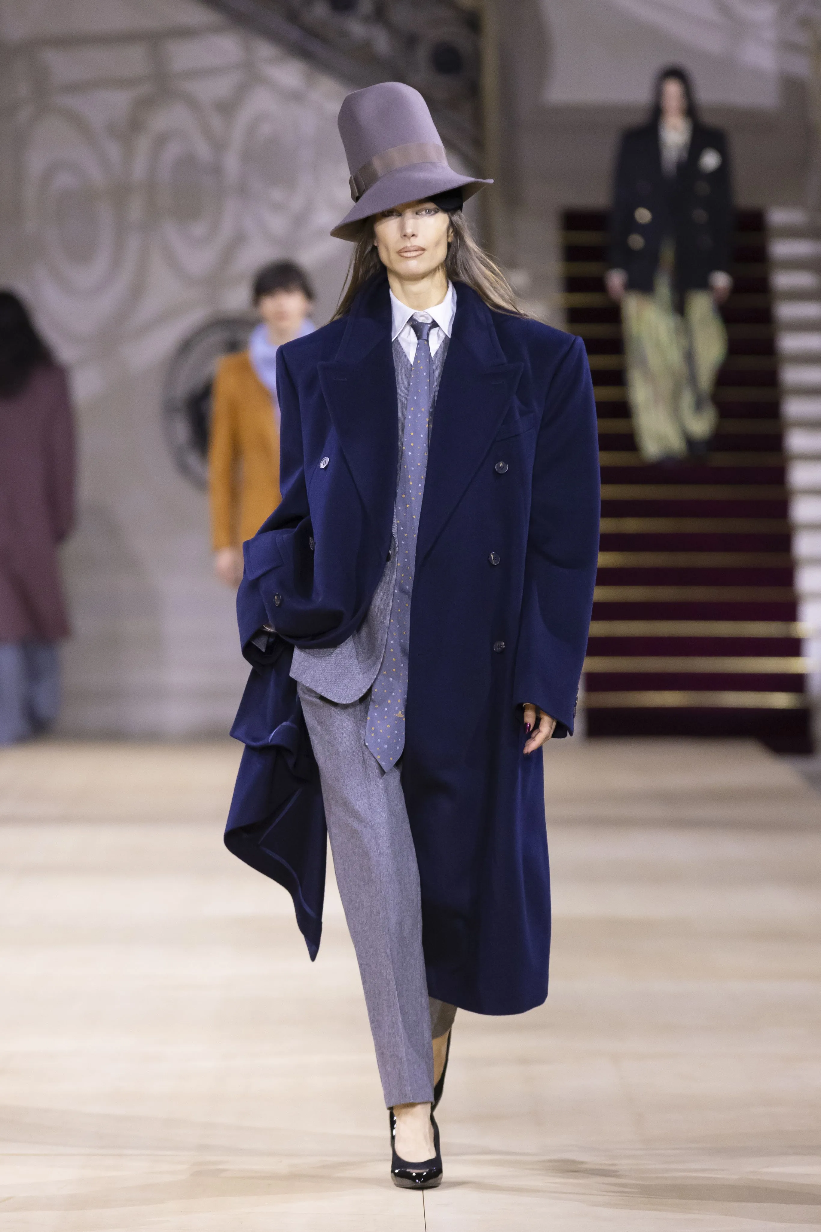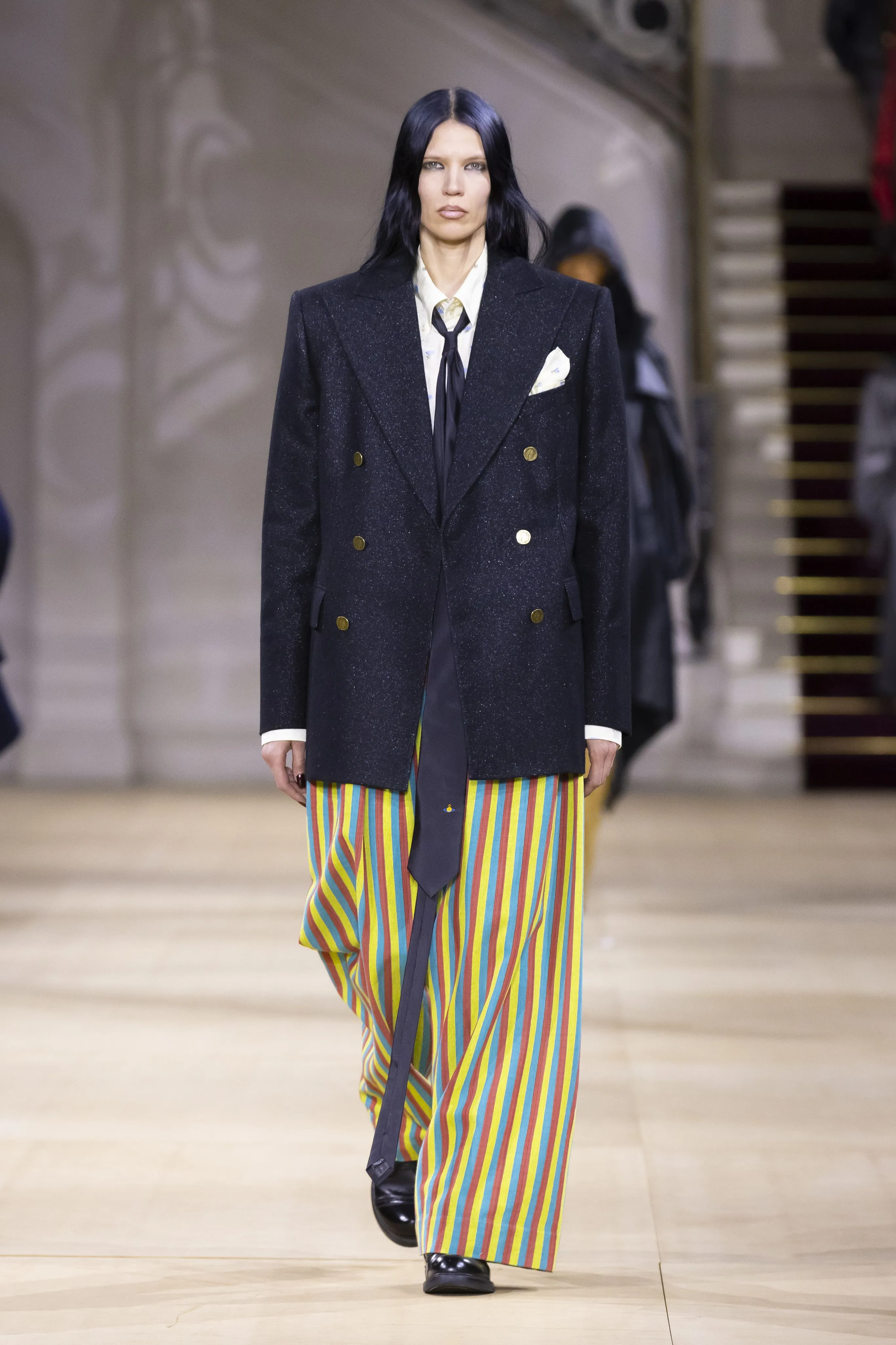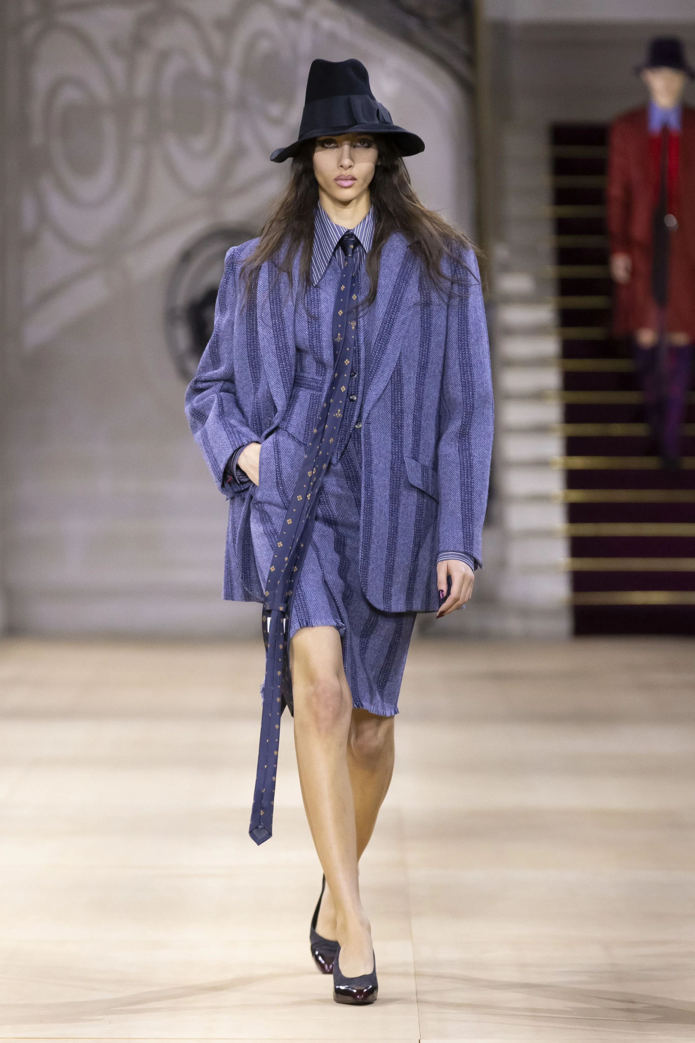 Quentin Crisp, Brigitte Bardot, Gertrude Stein, Cecil Beaton, Jerry Hall, Prince, Cary Grant ou Rihanna ont inspiré la collection Vivienne Westwood automne-hiver 2025-2026. Mais pas que ! Si le numéro 19 est associé à l’énergie, à l’expansion et à un nouveau départ, il vous encourage à "viser vos objectifs et rêver grand…". Pour prendre des décisions et opérer des changements, Andreas Kronthaler lutte pour le bonheur et la liberté. "Vivienne m’a transmis l’amour du tailoring et du tricot. Nous en avons toujours fait un élément central de chaque collection. Le tailoring est une invention anglaise ; la formalité qu’il confère est un cadre permettant de s’exprimer. Il n’y a rien de plus sexy qu’un costume ! Cette collection rend hommage à la ville où j’ai vécu pendant plus de trente ans, Londres", explique-t-il. Pour la première fois se marque la ligne principale de Vivienne Westwood avec Andreas Kronthaler. Un rappel des années 1990, lorsque la styliste britannique et lui présentaient Red Label et Gold Label ensemble. On retrouve du Harris Tweed dans toutes ses nuances et motifs, du tartan écossais, de la laine du Yorkshire, et de nouveau du prêt-à-porter masculin.