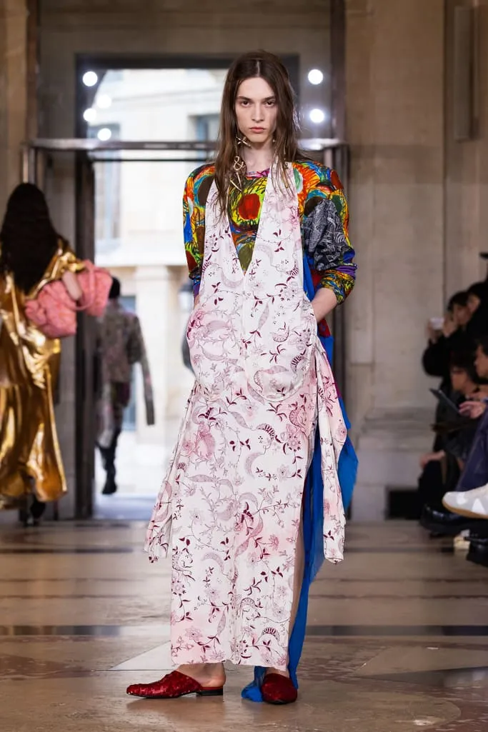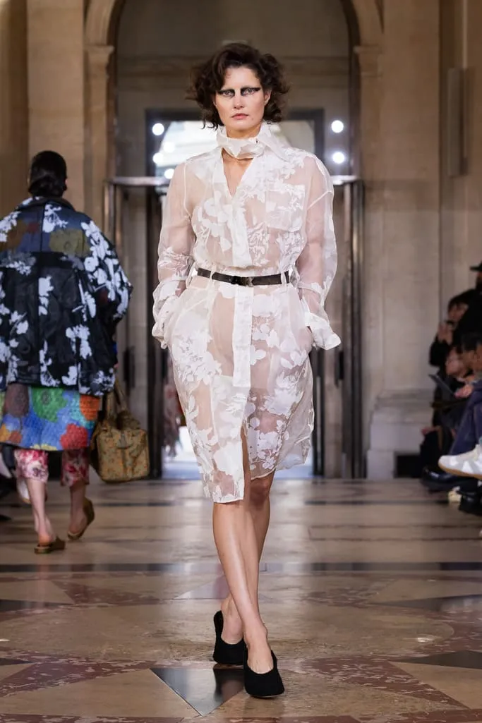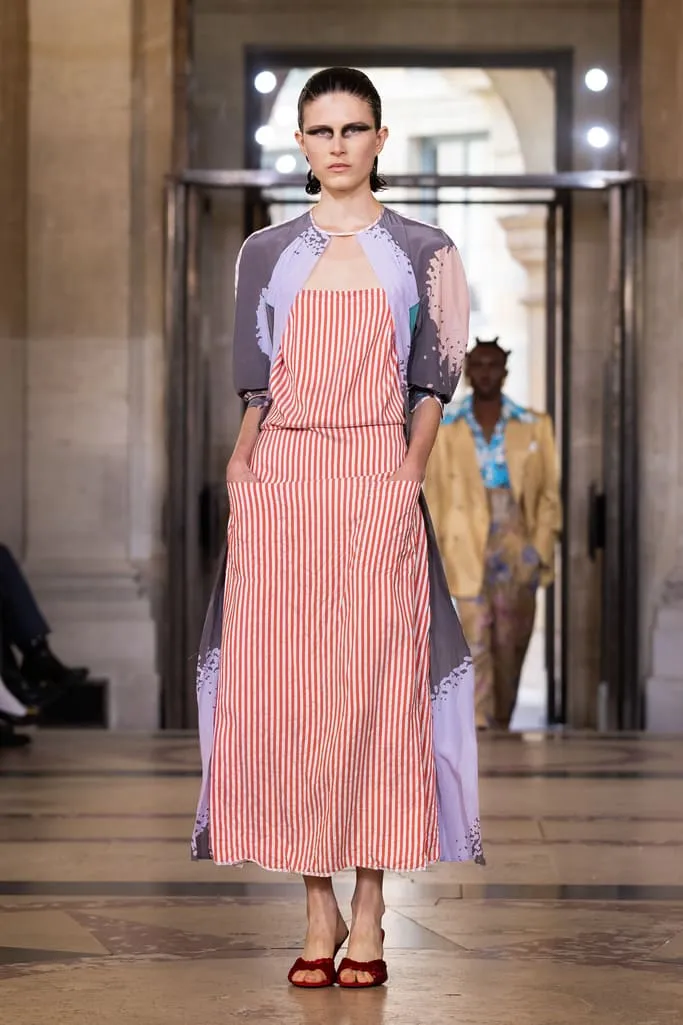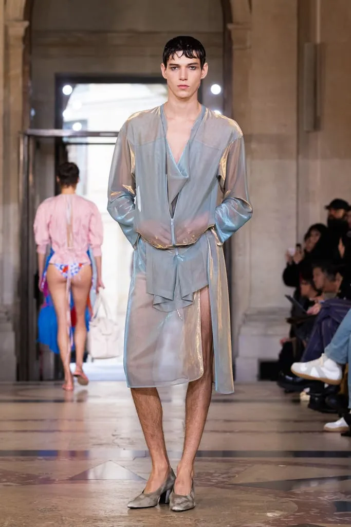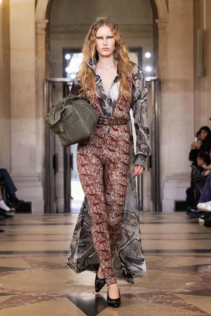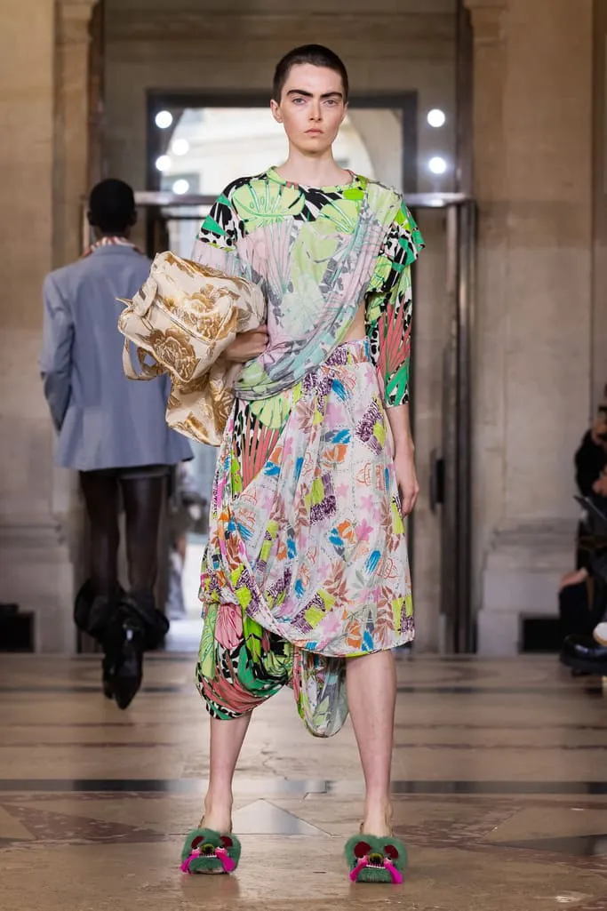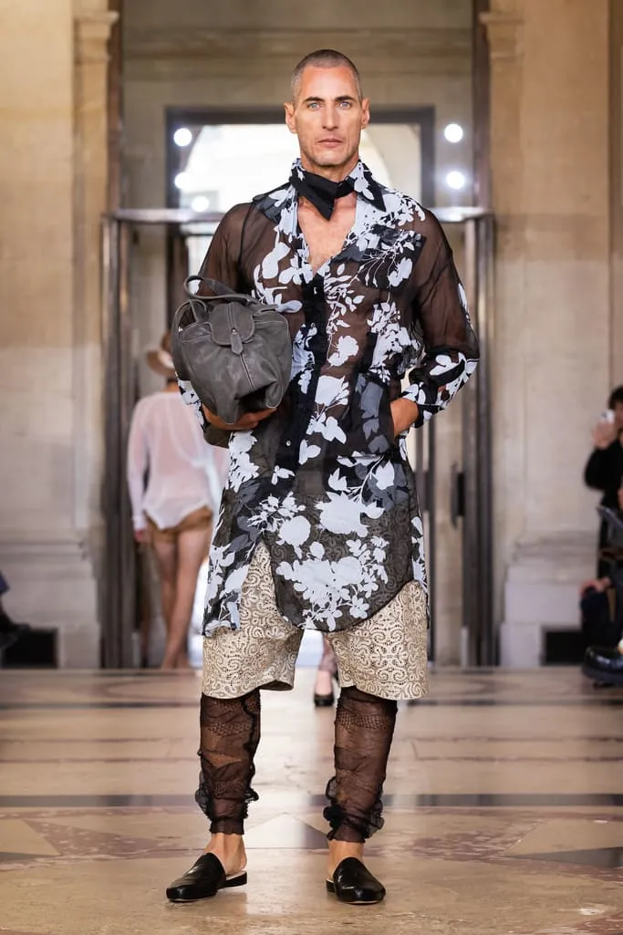 "Croit-on à la réincarnation ? Je peux raconter deux vies antérieures : d'abord en homme, soldat romain, puis en Reine de France. Vivienne et moi aimions les anciens parfums de Versailles qui ont inspiré notre nouvelle fragrance Boudoir, nom de cette collection. Boudoir évoque un espace privé, secret, sans distraction constante – là où l'on est au plus près de soi-même, où réside la vérité. La collection est née de draperies anciennes, traduites en vêtements. J'ai adoré ces tissus italiens typiques des marchés, combinés aux imprimés iconiques de la maison et à des tissus réutilisés. Vivant à Milan et ayant passé l'été en Sicile, je voulais capturer l'esprit méditerranéen : des vêtements faciles à vivre, ni vieux ni neufs, qui appartiennent à ceux qui les portent", explique Andreas Kronthaler. "Faire ce show à l'Institut de France, lieu culturel et historique majeur, est merveilleux. L'ikebana comprend des tournesols – ils illuminent notre terrasse londonienne et me font toujours sourire. Dans ce monde en mutation, j'ai choisi le dernier mouvement de Jupiter de Mozart, un son annonçant l'avenir avec espoir". Tout juste dévoilé et inspiré des parfums de l'Osmothèque de Versailles aimés par Vivienne, "Boudoir" sublime la sensualité. Élégant et contrasté, ancré dans une approche consciente mêlant tradition et innovation. Disponible dès ce 4 octobre dans les boutiques phares de Londres, Paris, Milan, New York et L.A.