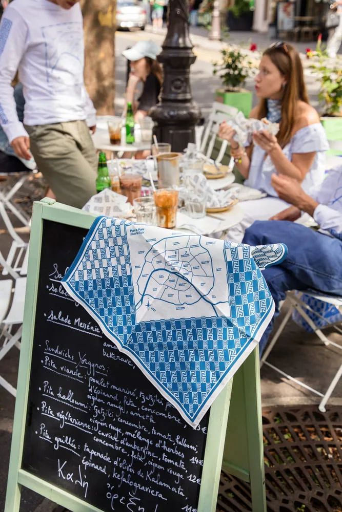 Foulards, bandanas, t-shirts… Présentée en exclusivité jusqu'au 20 octobre prochain au Bon Marché (Paris VIIe), lors de l'exposition "PARIS PARIS", la collection d’objets Yorgaki Café, pensée par le designer Yorgo Tloupas reprend, avec une pointe de satire, la carte des arrondissements parisiens.
