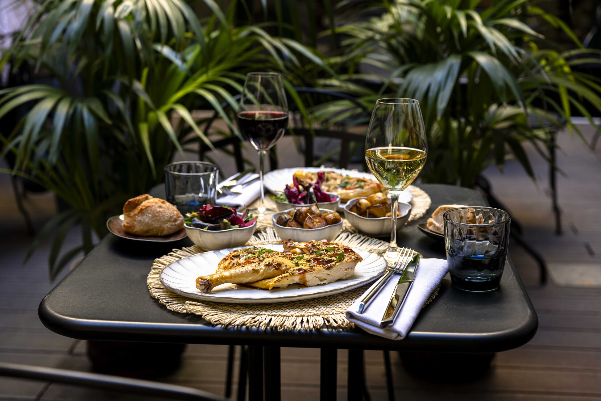 Il est 12H30 ce jeudi-là lorsque nous prenons place à l’une des tables du restaurant Blossom, terrasse chaleureuse et goûteuse du Sofitel Paris Le Faubourg (Paris VIIIe). Sous un des palmiers, autour d’un agréable verre de Condrieu, débute le défilé des saveurs. Dans ce décor estival, à l’abri des rayons solaire intrusifs, nous nous tournons vers les entrées rafraîchissantes et de saison. Au programme : une Burratina crémeuse au sésame grillé, escortée de carottes rôties au sirop d’érable, pickies de champignon et tuiles de sésame et La toute verte entrée signature aux pousses d’épinard, avocat, pistache, concombre, brocolis, chou kale, vinaigrette à la mangue, dattes, menthe, coriandre et basilic. Parfait pour les estomacs fins et timides !