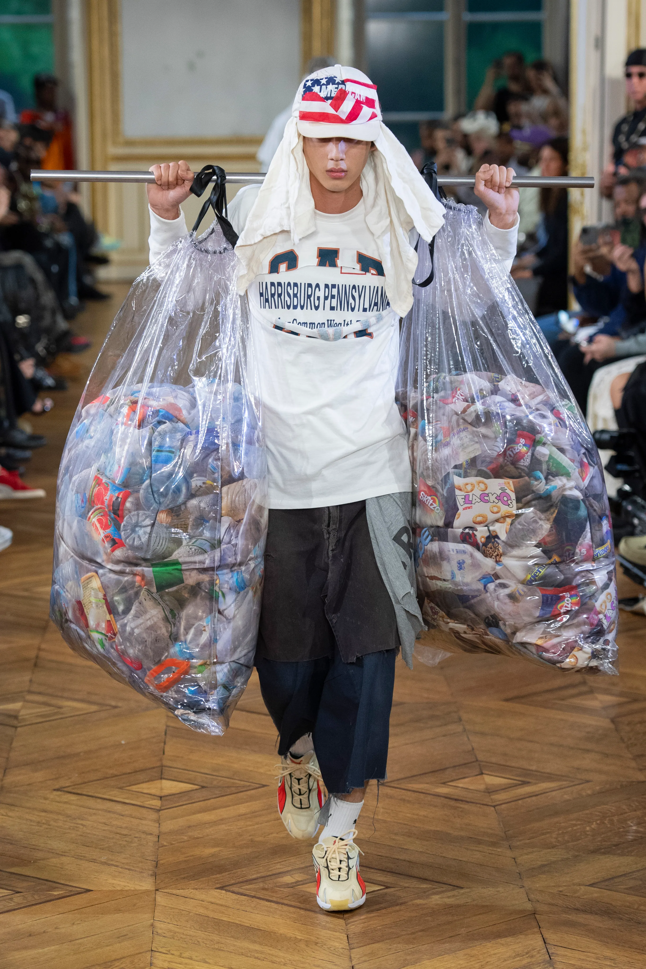 Aujourd'hui marque un nouveau chapitre audacieux dans la mode alors qu'A$AP Rocky et AWGE présentent "American Sabotage", une marque révolutionnaire qui entremêle art et activisme et présente un monde de la mode stimulant où chaque point raconte une histoire. Présenté à la l'hôtel des Maisons, à Paris, durant cette semaine de mode masculine, ce premier défilé surprise se compose de 30 looks méticuleusement conçus, par A$AP Rocky avec le soutien de Joshua Jamal, Bede Marchand et Coucou Bebe. Prenant une exploration audacieuse des problèmes urgents de notre époque à travers l'utilisation de l'expressionnisme du ghetto, American Sabotage est une étape dans l'esprit créatif d'A$AP Rocky et son style distinctif, remettant en question les définitions conventionnelles de la mode dans diverses communautés et cultures. "American Sabotage est plus qu’une simple marque, c’est un mouvement. Nous détruisons les frontières et faisons des déclarations à travers chaque pièce, reflétant l'esprit et la résilience de nos communautés. C'est une mode qui a un but, où l'art rencontre l'activisme", explique l’artiste et créateur. Les sacs poubelles transparents étaient des poufs de la marque d’ameublement d’A$AP Rocky, Hommemade, en collaboration avec Crosby Studios, sous la bande originale du défilé du prochain album d’A$AP Rocky.