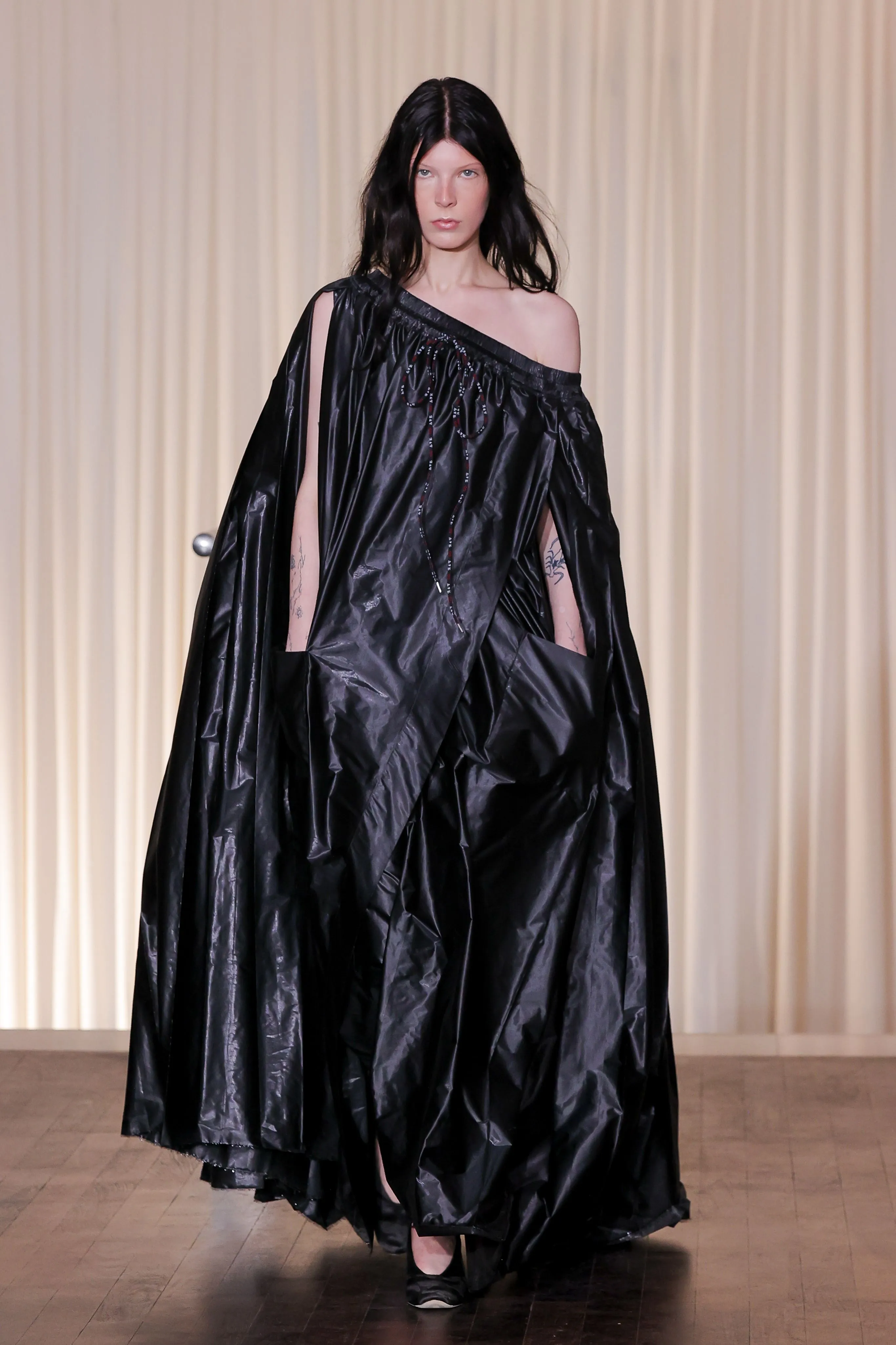 Ajuster, mesurer, évaluer... Si la mode est synonyme de beauté et de joie, elle nous relie les uns aux autres, et ceci est très important dans le monde dans lequel nous vivons. La priorité est le décolleté. Un sex-appeal cérébral ! "Sans la mode, le sexe 'tout court' pourrait mourir. Ou, pour le dire de manière moins dramatique : il y a de la mode parce qu'il n'y a pas assez de sexe", selon Philipp Ekardt. Pour la collection Vivienne Westwood printemps-été 2025, Andreas Kronthaler souligne aussi bien l’importance des pièces aérées, légères et moins colorées. Plus de liberté pour plus de vie puisque comme le soulignait la styliste britannique : "Get a life !". De la légèreté, oui. Mais pas que ! Comme le rappelle le designer autrichien quant à l’arrestation du capitaine Paul Watson, défenseur de la faune et de la flore marines et activiste environnemental. Un show spectaculaire et hors du temps, qui n’oublie pourtant pas la réalité de l’époque.