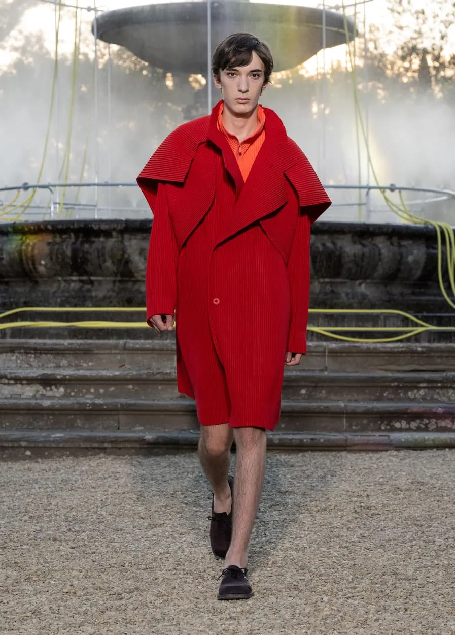C'est dans l'écrin historique de la Villa Medicea della Petraia que HOMME PLISSÉ ISSEY MIYAKE a présenté sa collection printemps-été 2026, baptisée "Amid Impasto of Horizons", le 18 juin dernier. Invité d'honneur du prestigieux Pitti Immagine Uomo 108, la maison japonaise a choisi ce lieu emblématique lié à la famille Médicis pour dévoiler sa vision créative.