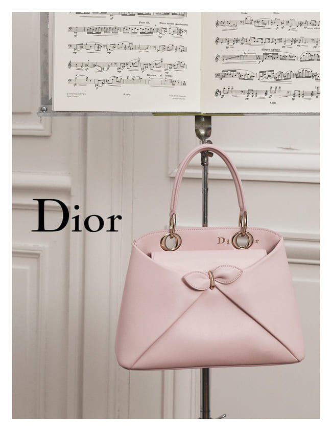 L'esprit Dior s'exprime dans une liberté assumée, un jeu constant avec les vêtements et les accessoires. Les sacs affirment leur caractère singulier : le Lady Dior se pare de pompons ludiques, l'élégant Dior Cigale arbore son nœud mini emblématique, les Dior Crunchy et Dior Bow déploient leurs formes souples et généreuses, tandis que le Diorly complète cette famille. Chaque pièce possède sa propre personnalité, soulignant la complexité des personnages qui les portent.