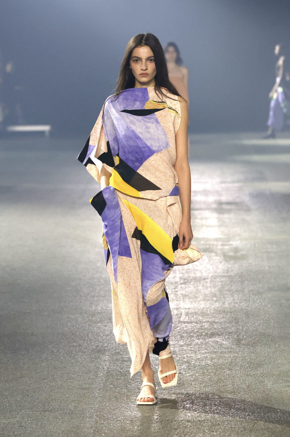 Présentée hier, à Paris, la collection Issey Miyake printemps-été 2023, A Form That Breathes, puise son inspiration dans l’exploration de la conception de sculptures. En évoquant le processus de création et la liberté de former et de façonner une forme avec ses propres mains, la collection intègre des idées, des éléments et des textures propres à cet art, afin de développer des formes de vêtement uniques. Chaque pièce devient sculpture. Pouvant sembler rigide au départ, fluide en mouvement, elle prend vie, prête à respirer. La série TORSO, caractérisée par ses formes sculpturales, incarne l’inspiration de cette collection. L’équipe de design a réalisé à la main une sculpture en forme de torse, et l’a ensuite exprimée grâce à une seule pièce de tissu. La matière utilisée est ferme et souple à la fois. La silhouette tridimensionnelle et le drapé de ces pièces sont révélés lorsque le vêtement est porté, comme une sculpture sur le corps. La série TORSO JUXTAPOSE, réalisée dans le même tissu, présente des imprimés audacieux, créés à partir de formes en argile réalisées par l’équipe de design. Très intéressante la série NUDE présente une gamme de mailles inspirée par la représentation graphique et abstraite du corps. La partie centrale des pièces est réalisée à partir de fils transparents, cette forme apporte à la silhouette droite un effet drapé et tridimensionnel. Ces pièces peuvent également être portés devant-derrière, ce qui permet de les apprécier sous différents angles, comme si l’on contemplait une statue.