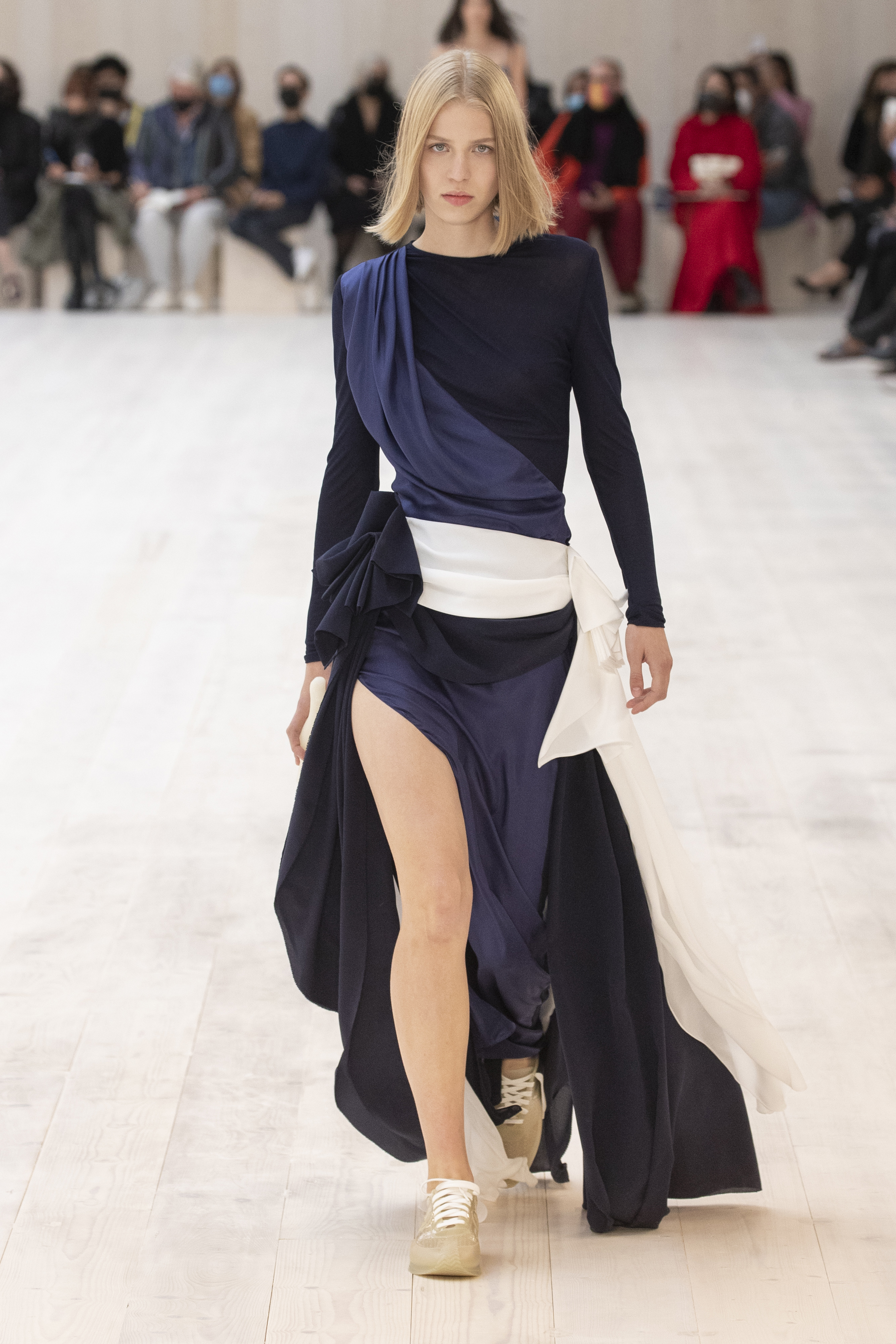 Sensualité, provocation et mouvement ont gouverné, aujourd'hui, lors du défilé Loewe printemps-été 2022. Tout en conservant une vision stylistique enracinée dans son époque, le directeur artistique du label espagnol, Jonathan Anderson, s'est inspiré du mouvement maniériste dans la peinture du XVIe siècle incarné par l'artiste italien Pontormo, en explorant les notions de drapage, de sculpture et différentes tonalités par le biais des détournements, des diversions et des distortions.