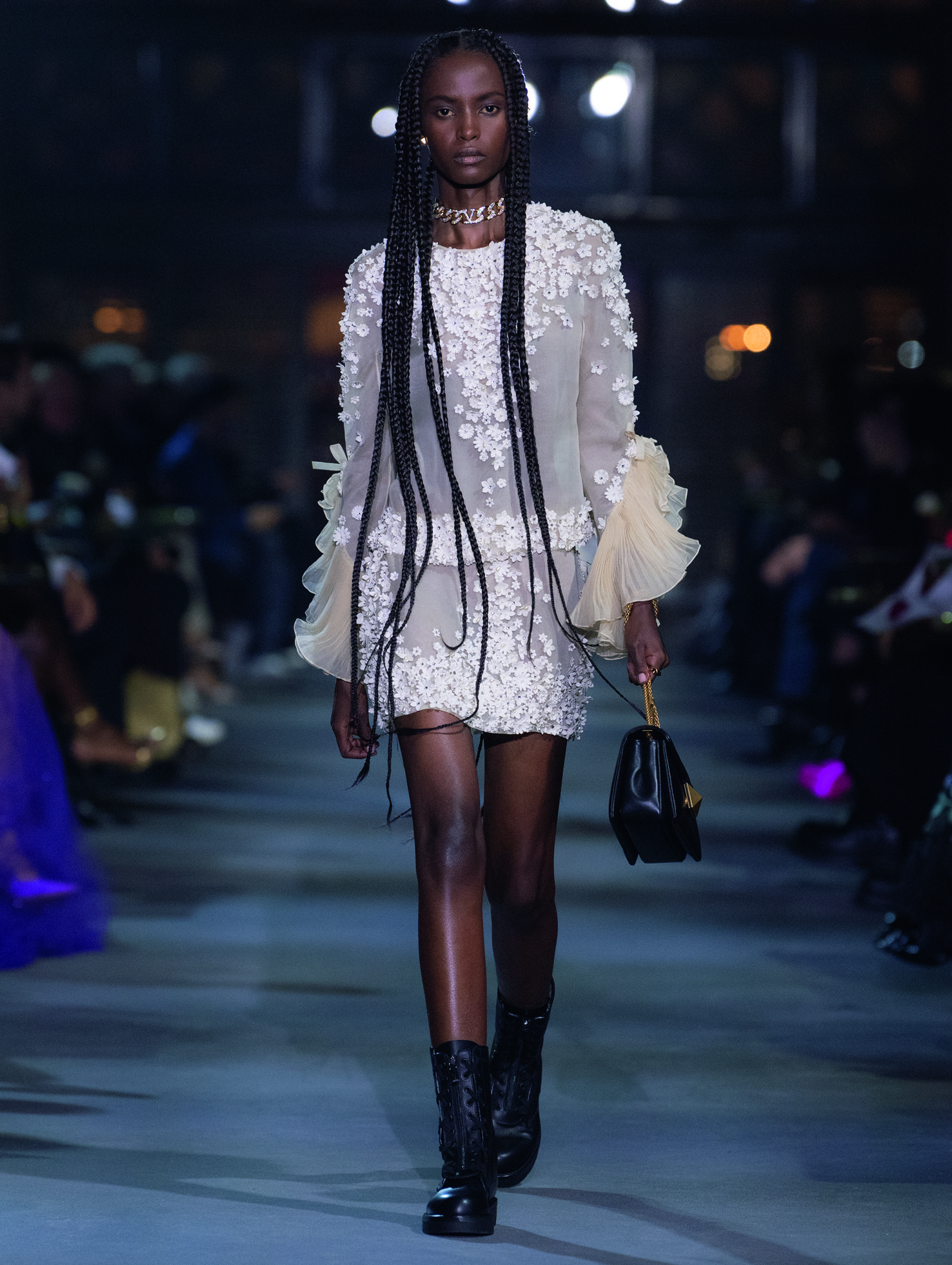 C'est dans une atmosphère typiquement parisienne "café/crème", au Carreau du Temple (Paris IIIe), que le directeur artistique de la maison Valentino, Pierpaolo Piccioli, a choisi de présenter hier soir la collection printemps-été 2022. Le fameux "Rendez-vous" s'est prolongé puisque, contrairement à la plupart des shows, les mannequins ont défilé entre les tables de ce bistrot monumental, sans retour dans les backstages, préférant plutôt prolonger cette sublime parade dans la rue Depetit-Thouars à la vue des spectateurs venus appréciés le spectacle. Pour cette occasion, la maison Valentino a présenté cinq répliques de Valentino Garavani dans le cadre du projet Valentino Archives. Très contemporaine, cette nouvelle collection, qui se joue du contexte et du temps, a proposé un vêtement non sexué avec des coupes adaptées aux formes masculines et féminines. Sensible aux connexions et aux émotions, le directeur artistique a tenu à donner un souffle nouveau à cette maison romaine après ces deux années de pandémie autour d'une garde-robe sexy et parfois brûlante.