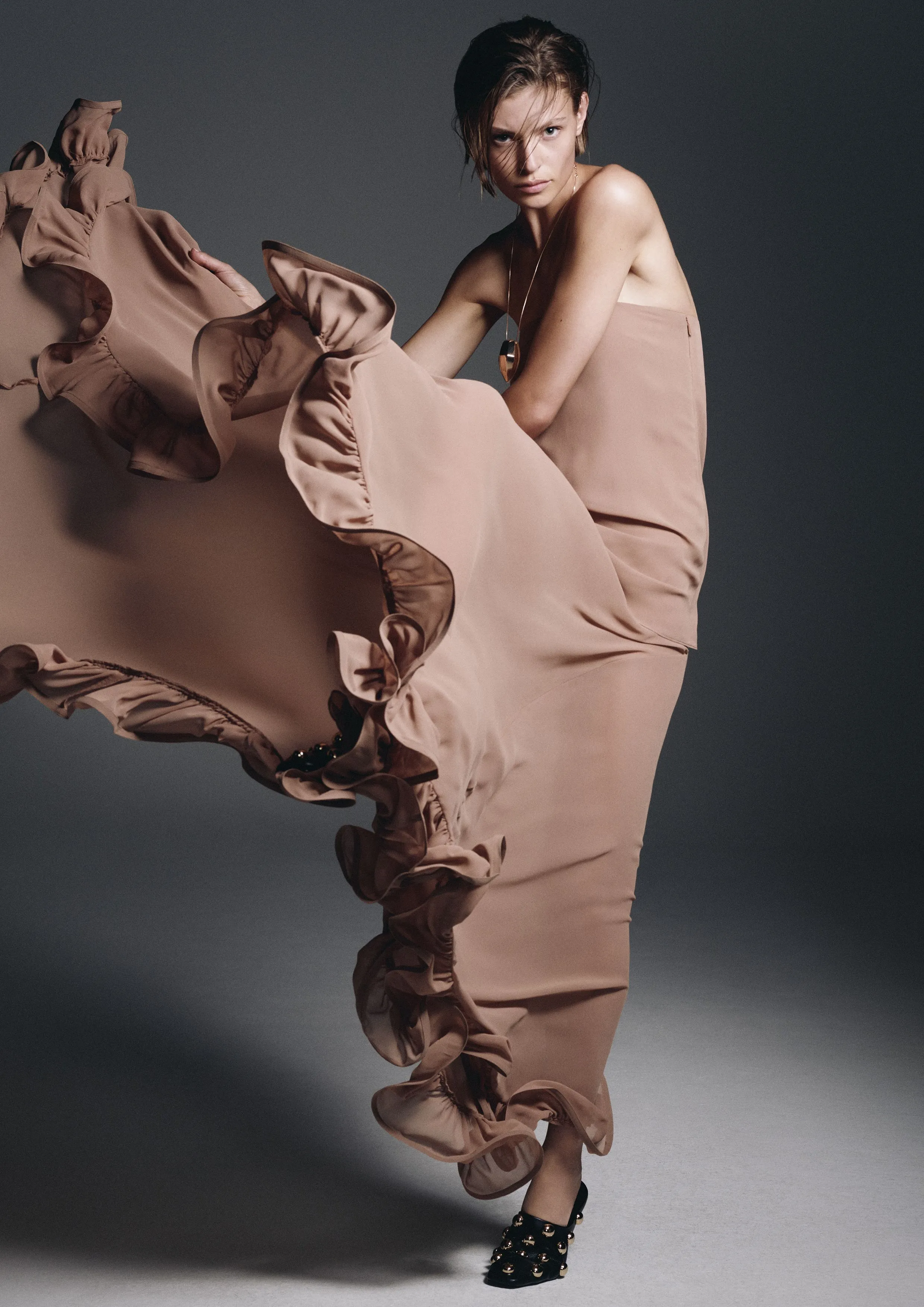 Pleine de tons riches, de détails intrigants et de silhouettes axées sur le design, cette collection apporte une saison très spéciale pour H&M. Elle rassemble diverses histoires et inspirations : le glamour éternel et la polyvalence du design du milieu du siècle ; les teintes profondes et sophistiquées du bois et des intérieurs rétro. "Cette collection regorge de nombreuses inspirations particulières et de matériaux de qualité. Le cuir, les mailles, les pièces scintillantes – ensemble, les pièces mettent en valeur la force du savoir-faire mode de H&M. Il s’agit de vêtements vraiment superbes : de véritables icônes de garde-robe. La campagne fait briller la mode", explique la directrice du design féminin de la marque, Eliana Masgalos.