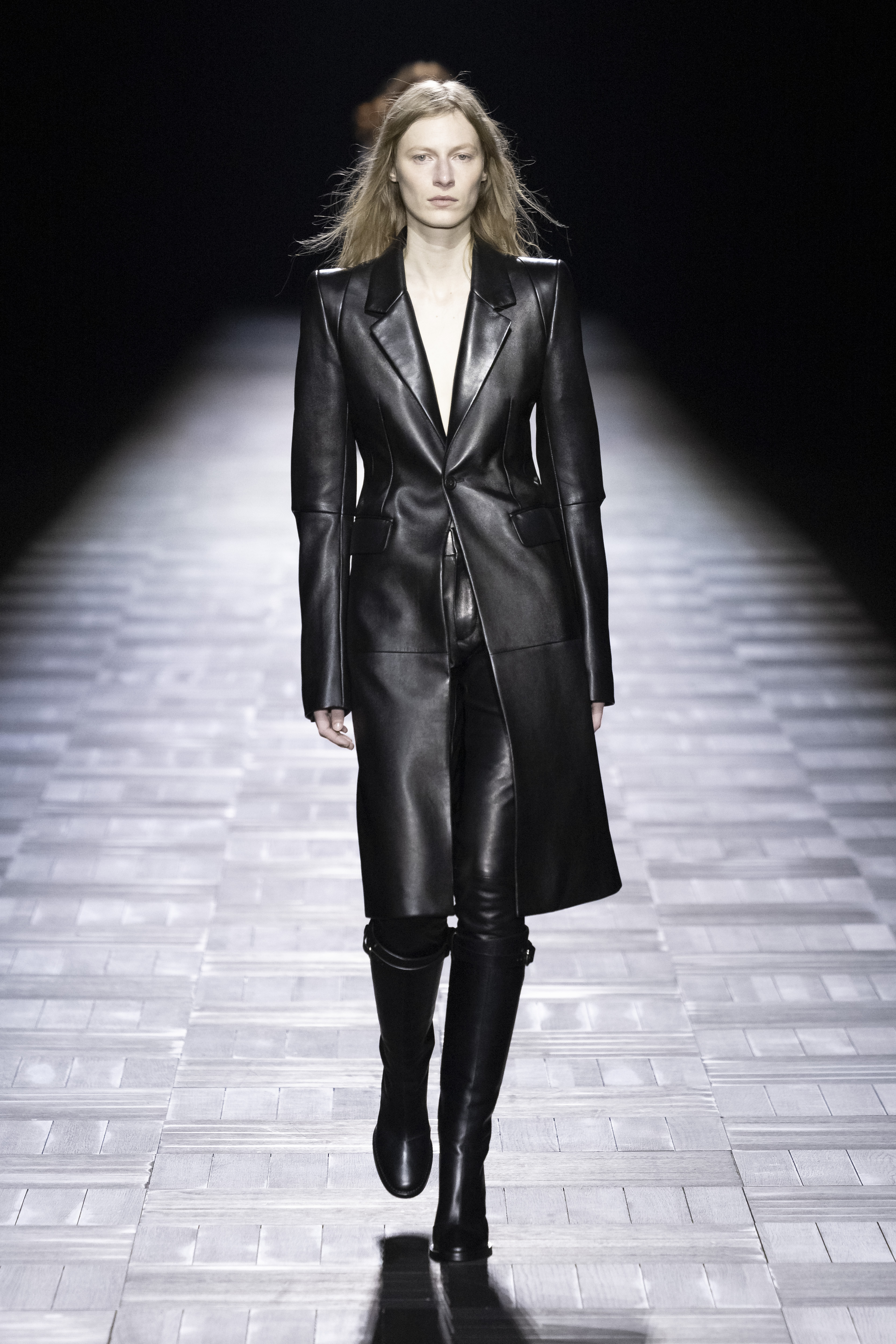 Telle une lettre d’amour à la créatrice originelle du label éponyme Ann Demeulemeester, Ludovic de Saint Sernin dévoile une collection automne-hiver 2023-2024 intime et emprunte de l’héritage de la maison belge. Des mots écrits avec une plume, soulignée dès la première silhouette du show. Sensualité, ambiguïté et sauvagerie rythment l’évènement avec des détails de sellerie entrecoupés entre graphisme et flou. Les ongles deviennent des anneaux, les talons sont pointus et les tricots façonnés en forme de liquides. Dans cet échange écrit, le nouveau visage créatif se retrouve dans l’univers de la styliste minimaliste. Un préambule excitant, une introduction vibrante pour annoncer la suite.