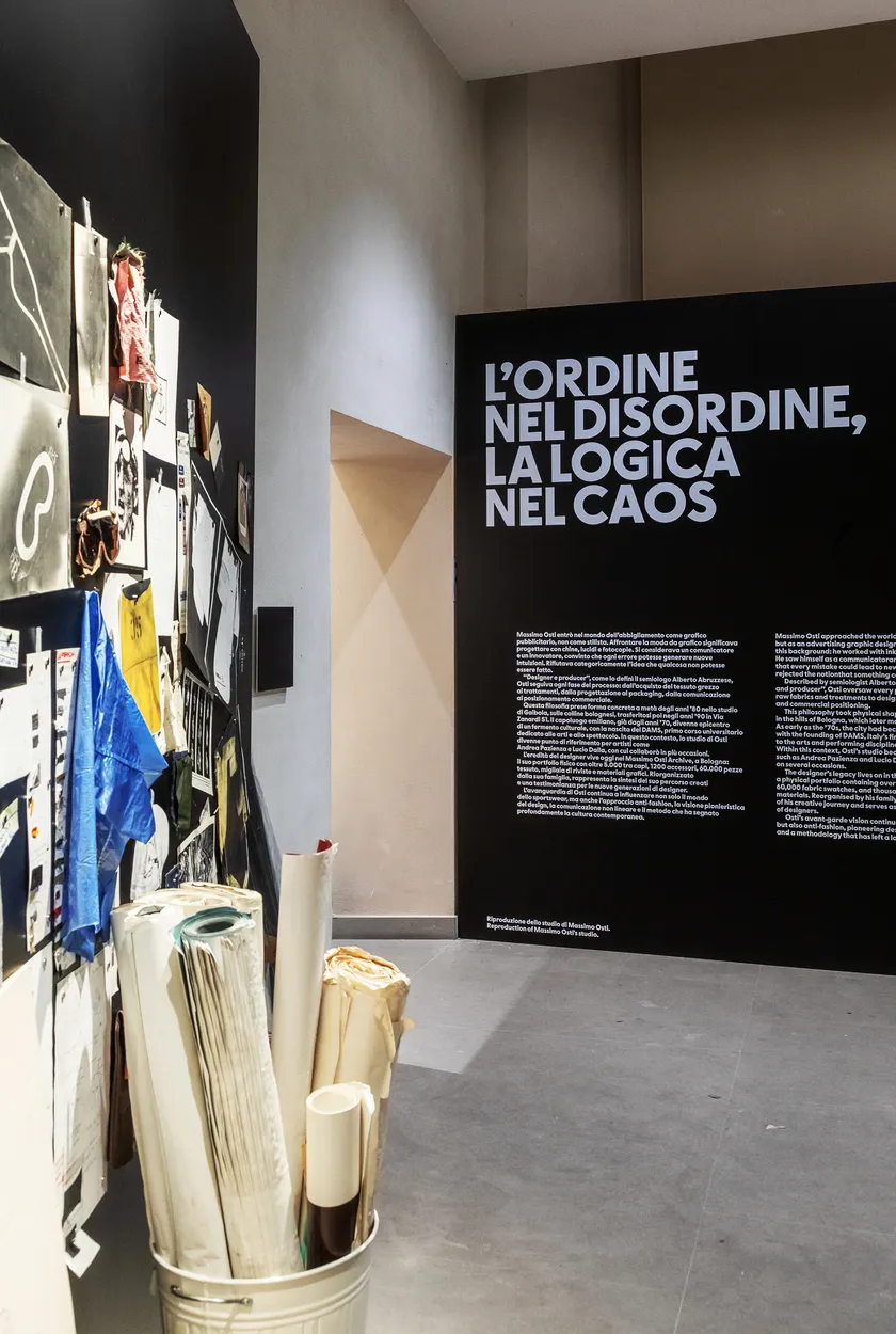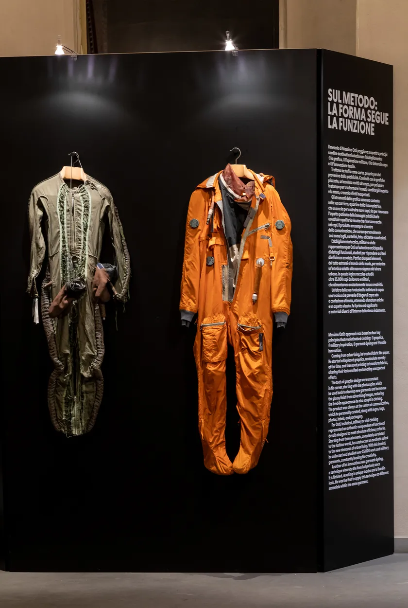 La suite de l'exposition dévoile un espace immersif consacré aux principes fondamentaux du design selon Osti. Prototypes, livres militaires, carnets personnels, échantillons graphiques, tissus et objets originaux témoignent de la richesse de son processus créatif. Une sélection minutieuse de vêtements iconiques, issus des Archives Massimo Osti de Bologne, illustre l'ampleur révolutionnaire de son travail et démontre pourquoi son influence perdure aujourd'hui comme source d'inspiration inépuisable.