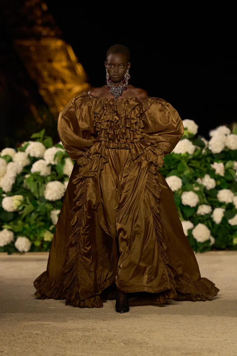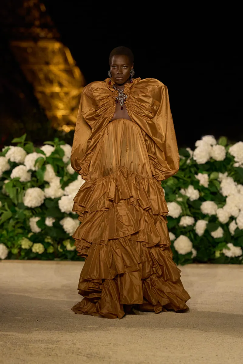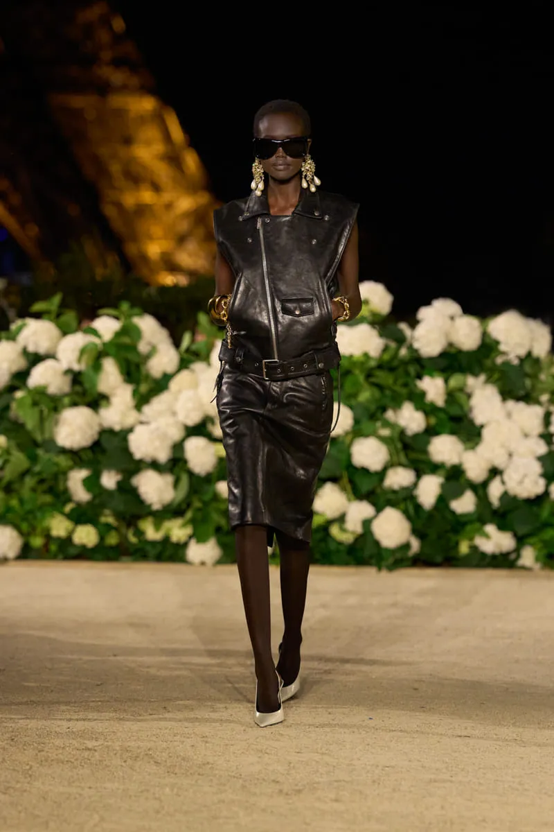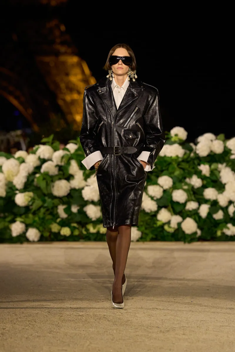 Pour ce premier jour de fashion week parisienne, Anthony Vaccarello dévoile une collection Saint Laurent printemps-été 2026 riche d’audace. Présentée hier soir, devant la tour Eiffel, les silhouettes arborent des looks exaltés très 1980, des vestes en cuir et des chemises oversize aux épaules XXL, véritable signature du directeur artistique, ou encore de somptueuses et flamboyantes robes victoriennes. Pour l’occasion, un parterre de stars et d’amis de la Maison ont habillé le front row de ce lieu magique et délicatement fleuri, à l’instar de Charli XCX, Carla Bruni, Hailey Bieber, Virginie Efira, Madonna et sa fille Lourdes, Renée Zellweger ou Amber Valletta.