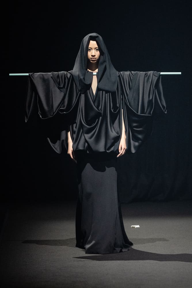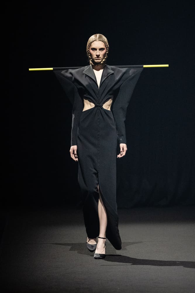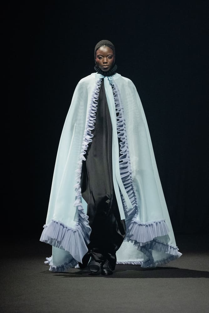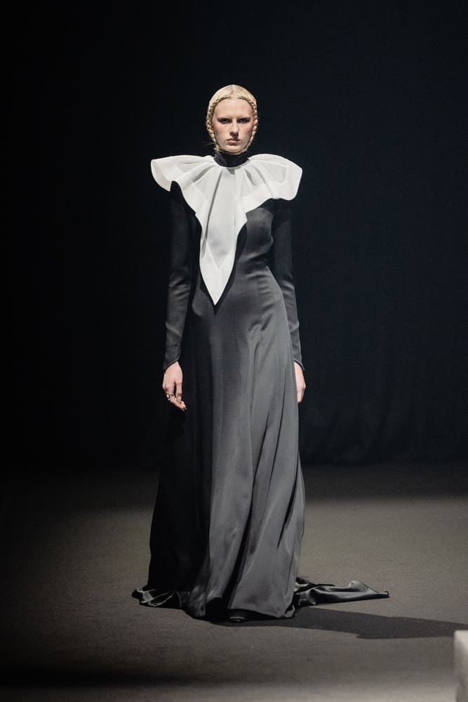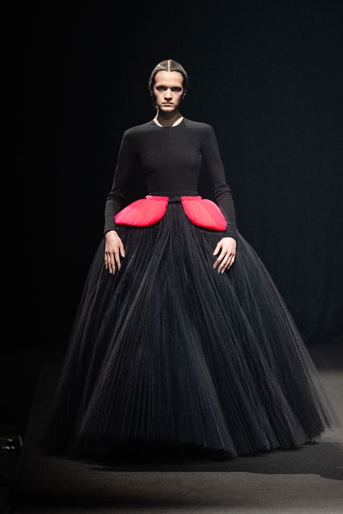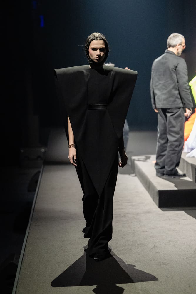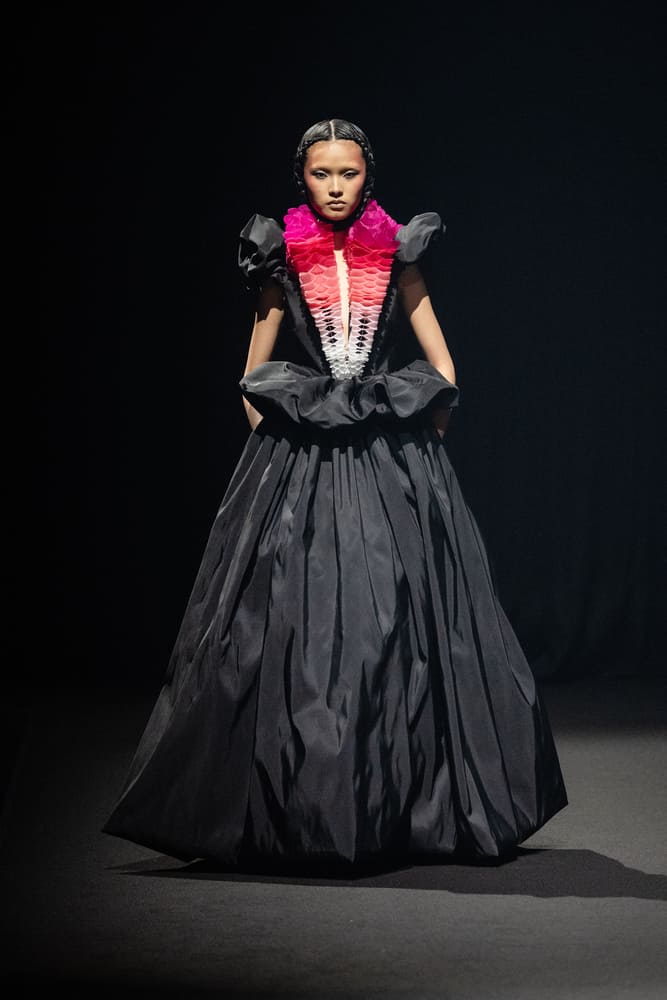 Pour la saison printemps-été 2026, Viktor&Rolf prennent leur envol avec Diamond Kite, une collection qui réinvente la liberté à travers l'émerveillement de l'enfance et le pouvoir transformateur de l'élévation. Au cœur de cette vision : le cerf-volant, symbole intemporel d'évasion et de transcendance, qui devient à la fois motif structurel et spirituel. La collection joue sur la dualité entre des silhouettes noires austères et monumentales et des volutes de tulle colorées, éphémères et délicates. Le noir constitue la toile graphique de chaque look, tandis que des touches de couleur surgissent comme des esquisses au crayon – enfantines mais sophistiquées, spontanées mais calculées. L'apothéose finale rend hommage à l'iconique pochette d'album de Kate Bush, avec une robe suspendue entre terre et ciel. Diamond Kite célèbre le paradoxe : ludique mais sincère, naïf mais complexe, éphémère mais ancré. Une couture-évasion où la mode devient elle-même un vecteur d'envol, complétée par les souliers de Christian Louboutin et les bijoux d'Elie Top.